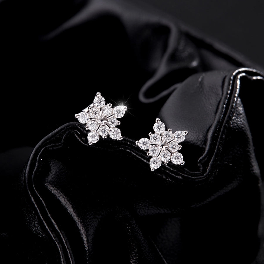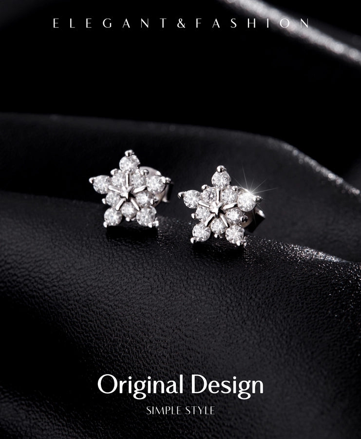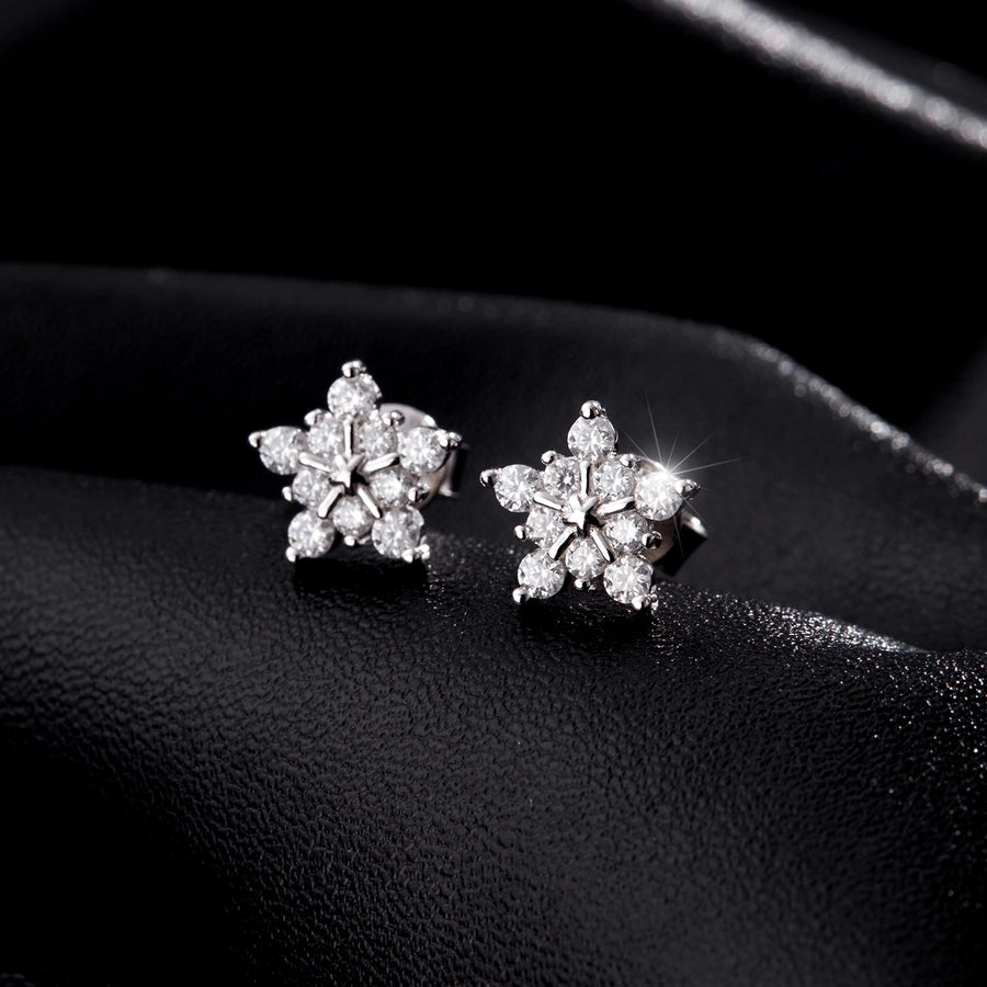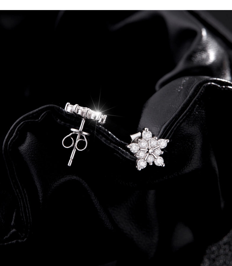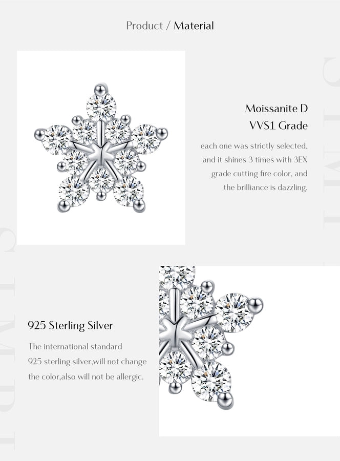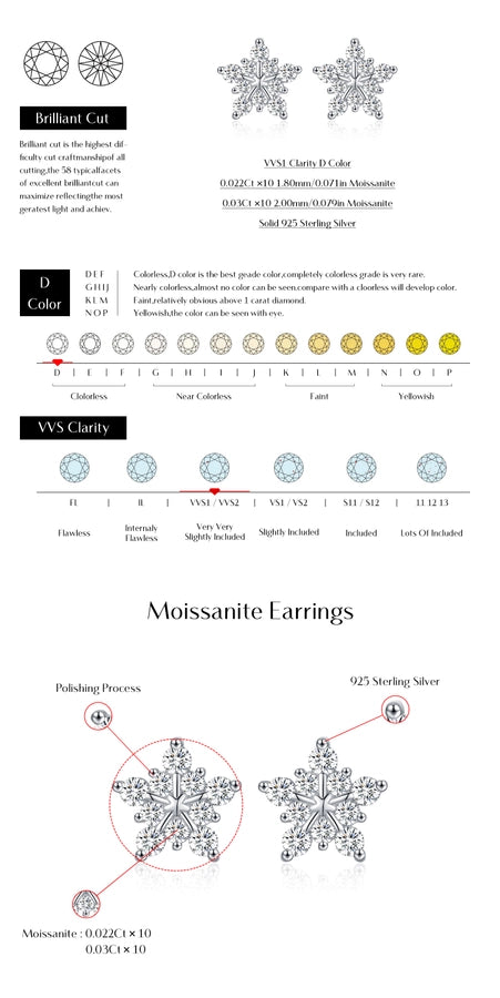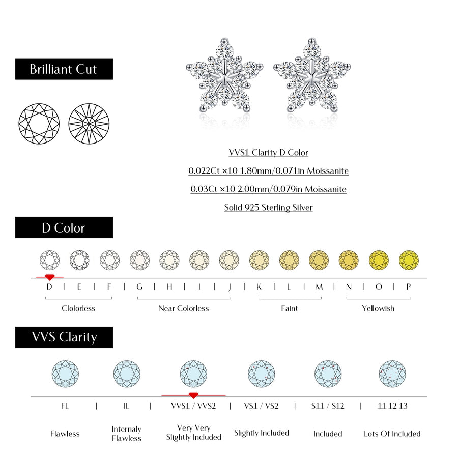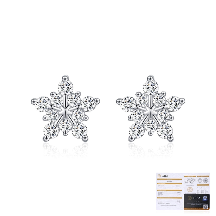 1 Pair 0.6 Karat Round Brilliant Cut Rhodium Plated 925 Sterling Silver 925 Sterling Silver Moissanite VVS1-VVS2 Moissanite GRA Certificate 925 Sterling Silver Earrings Snowflake Ear Studs Colorless(DEF)