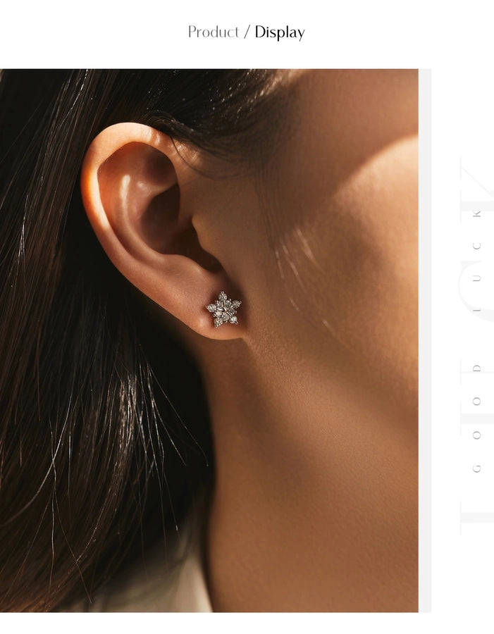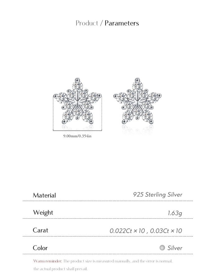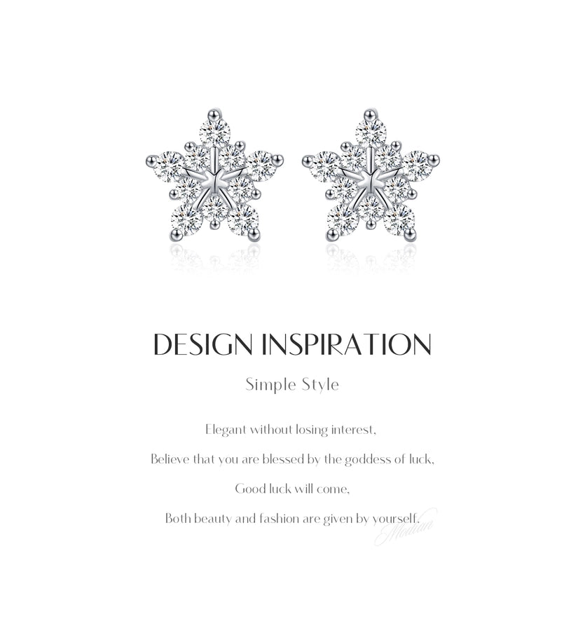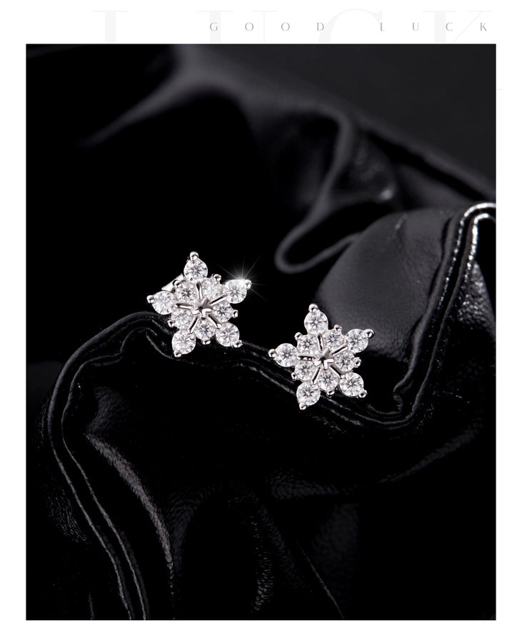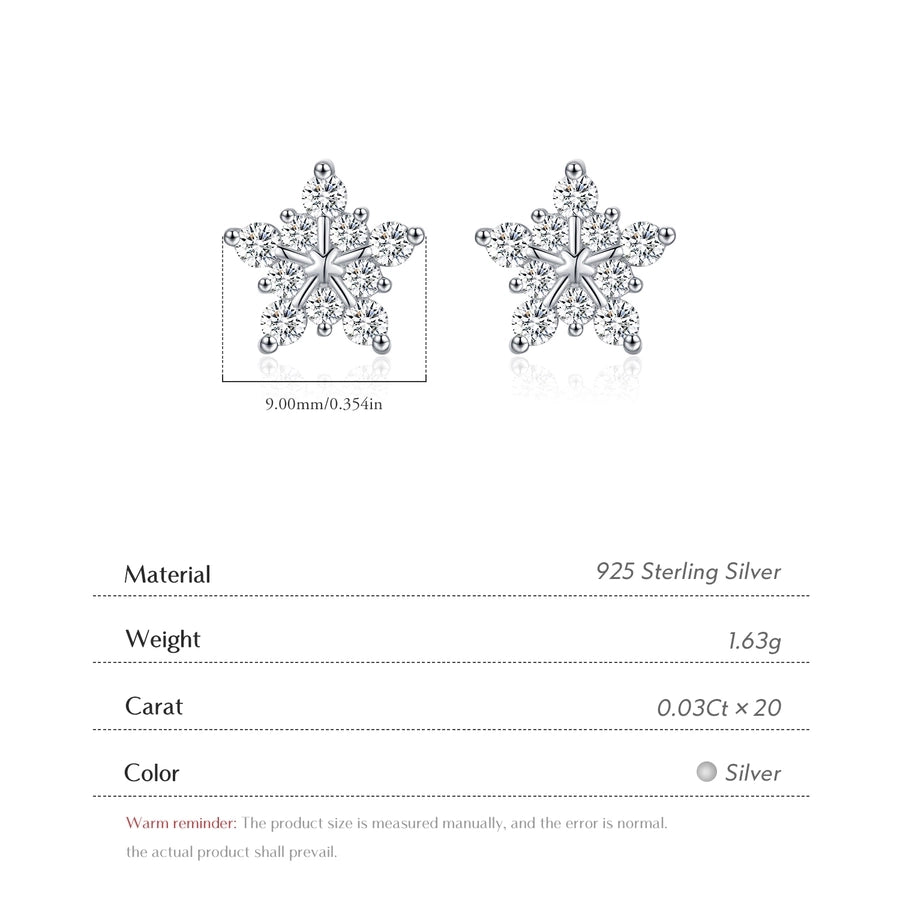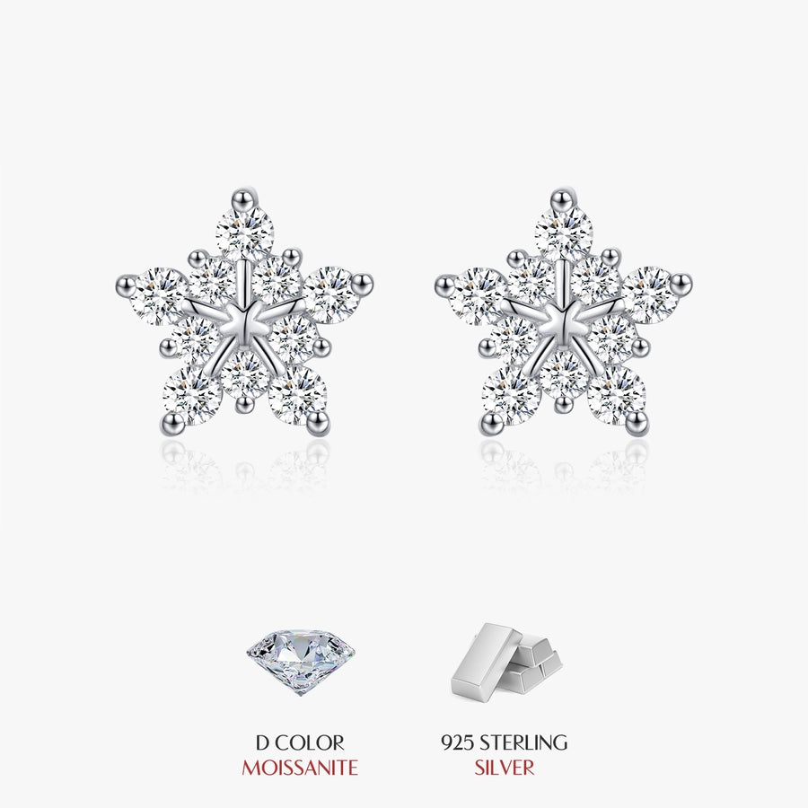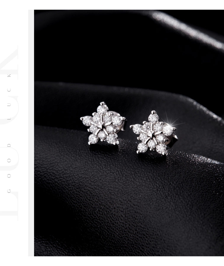 1 Pair 0.6 Karat Round Brilliant Cut Rhodium Plated 925 Sterling Silver 925 Sterling Silver Moissanite VVS1-VVS2 Moissanite GRA Certificate 925 Sterling Silver Earrings Snowflake Ear Studs Colorless(DEF)