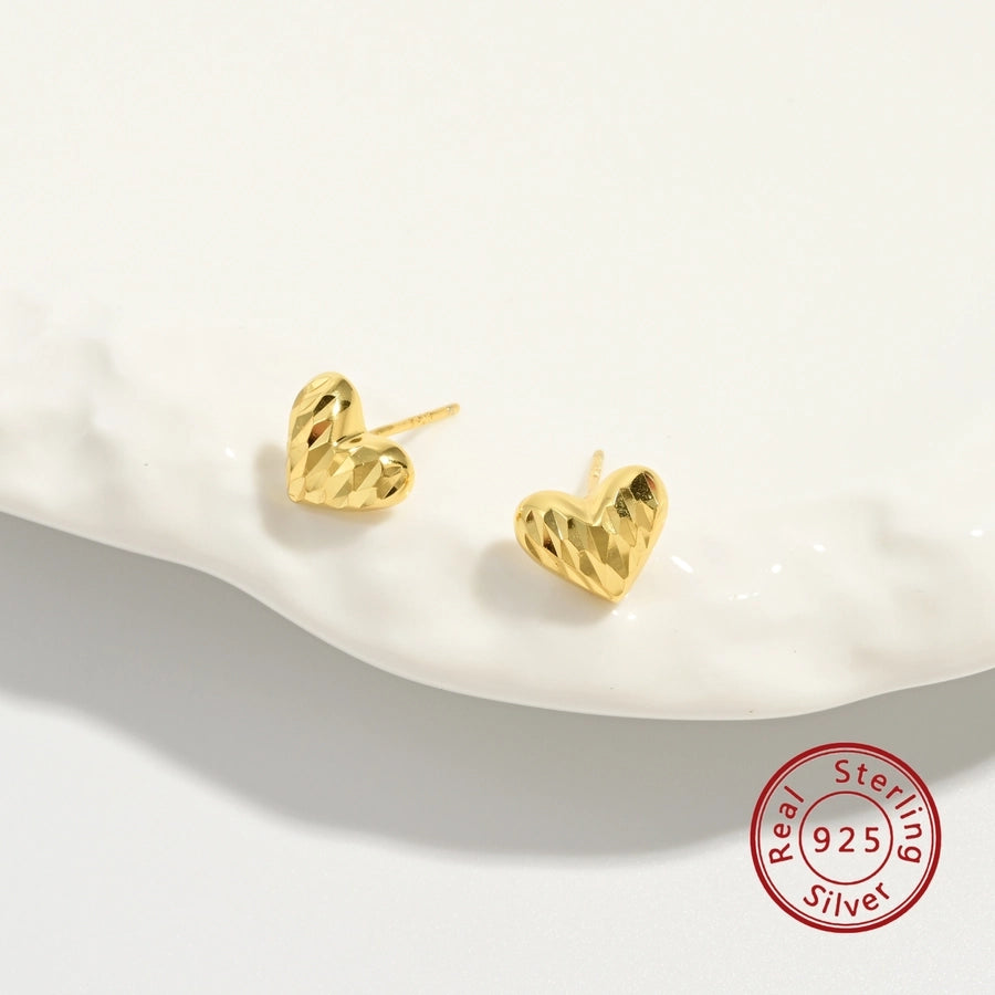 1 Pair 14K Gold Plated 925 Sterling Silver 925 Sterling Silver Earrings Heart Shape Ear Studs