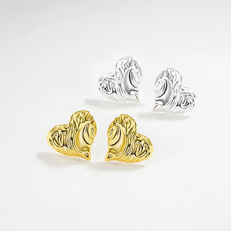1 Pair 14K Gold Plated Silver Plated 925 Sterling Silver 925 Sterling Silver Earrings Heart Shape Ear Studs
