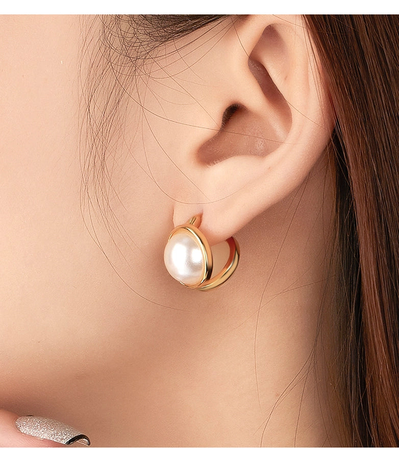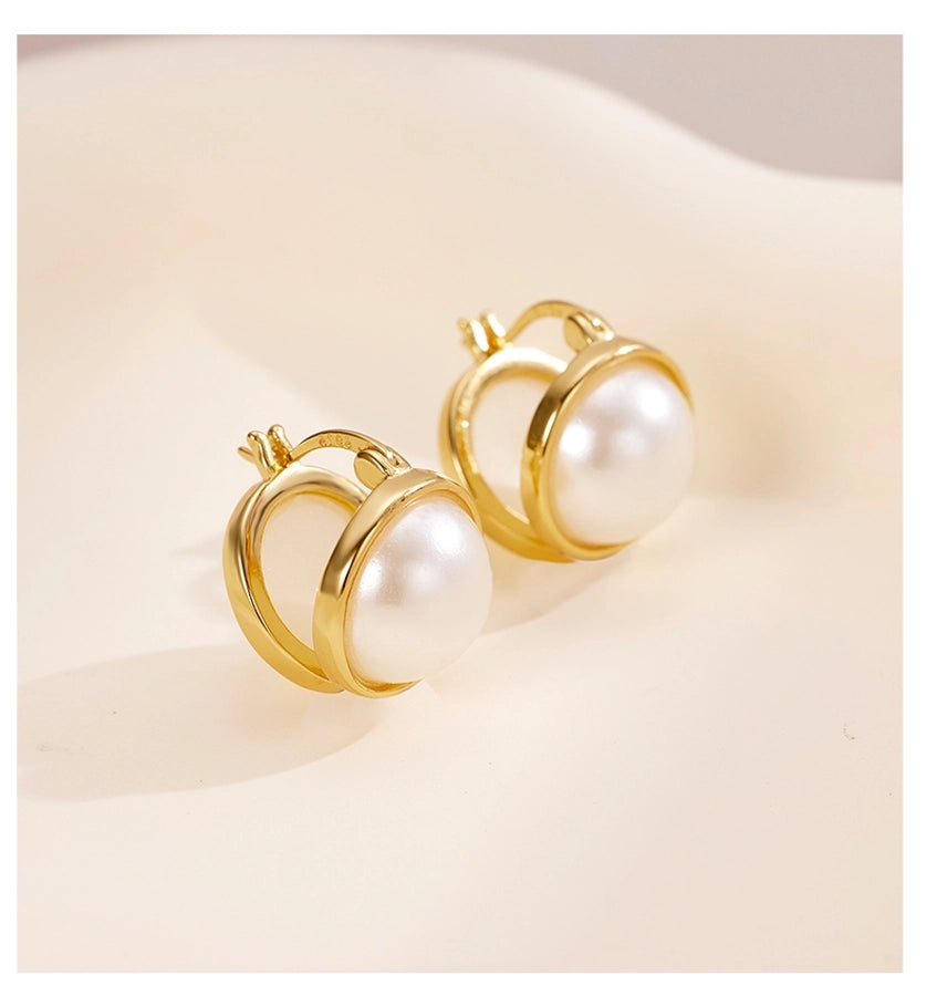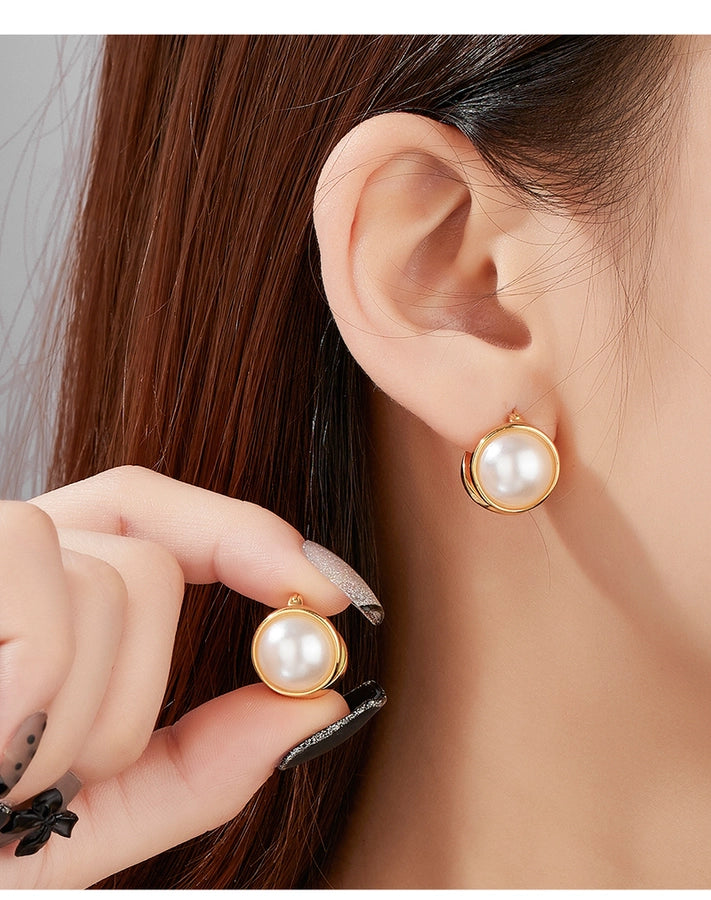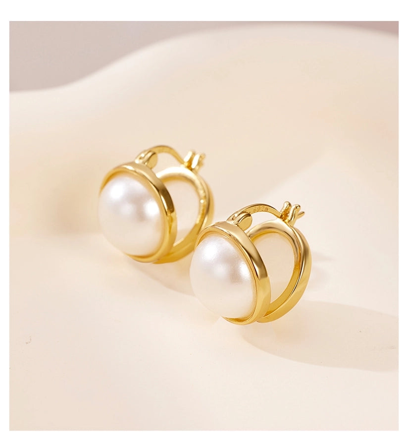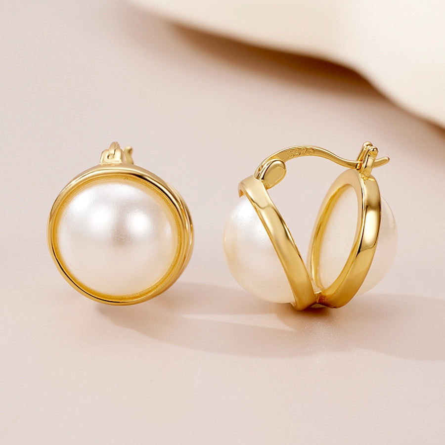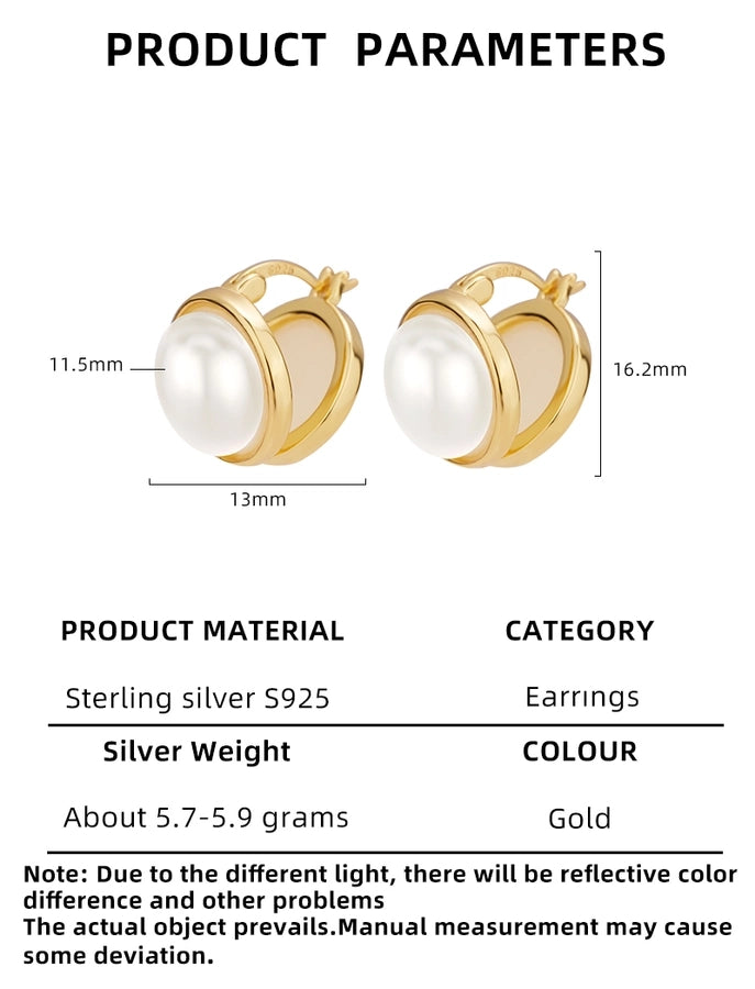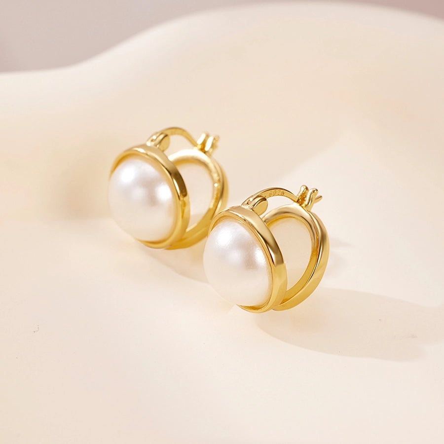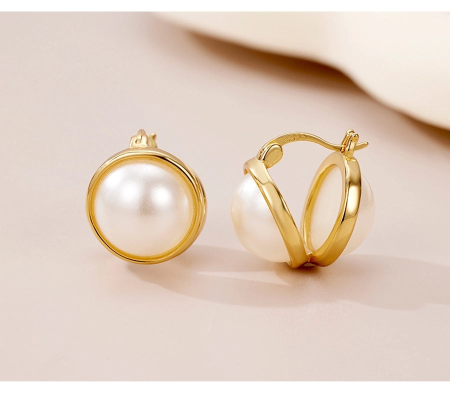 1 Pair 18K Gold Plated 925 Sterling Silver Pearl 925 Sterling Silver Earrings Geometric Ear clip