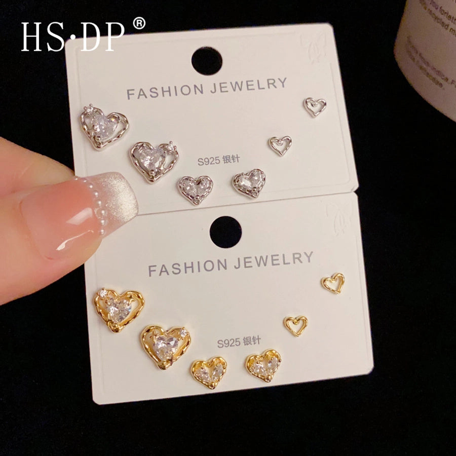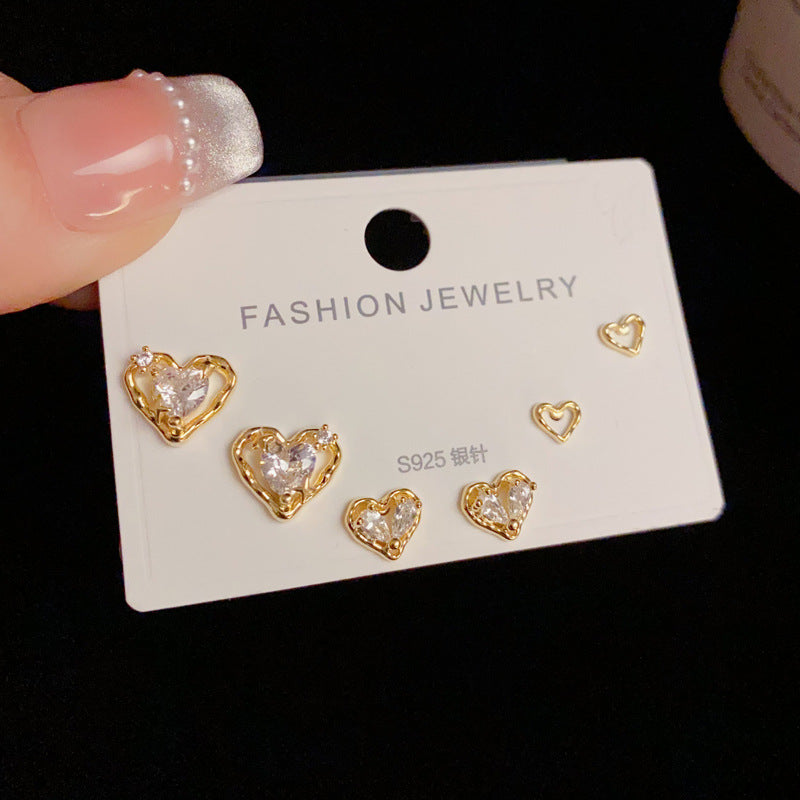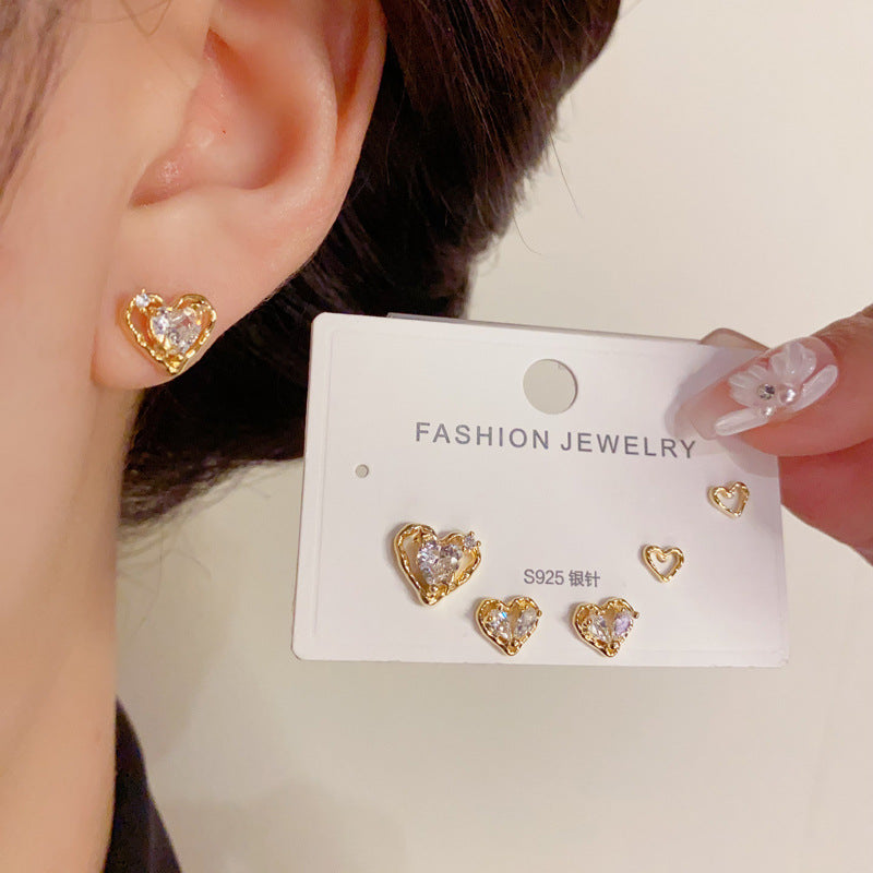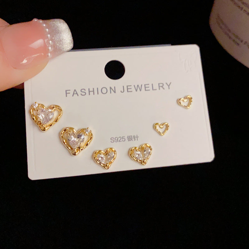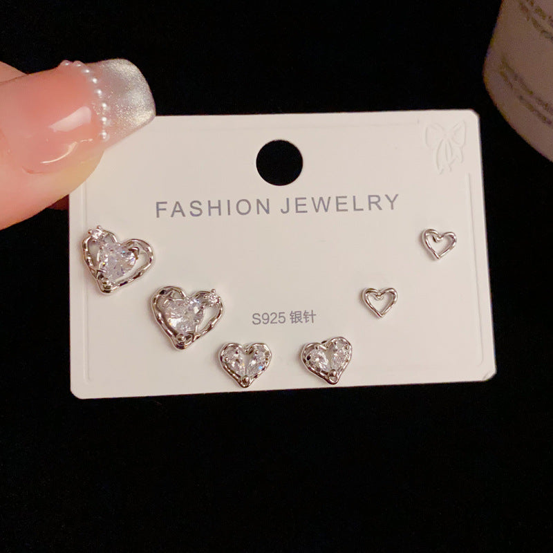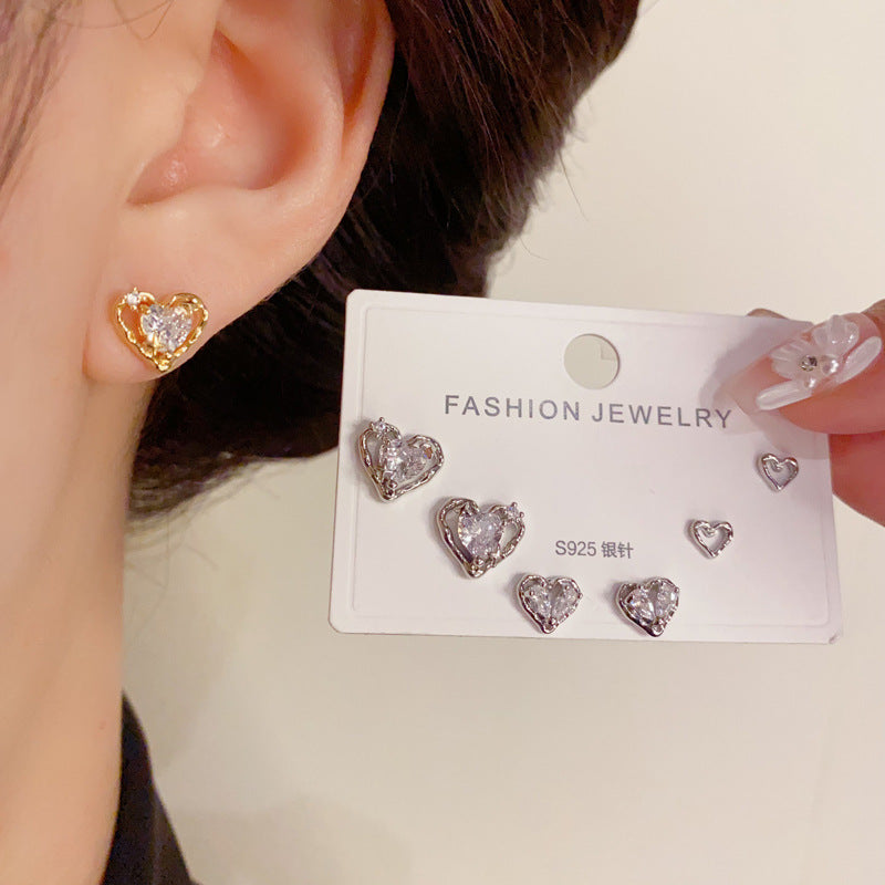 1 Set Copper 925 Sterling Silver Earrings Heart Shape Ear Studs