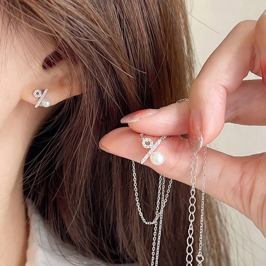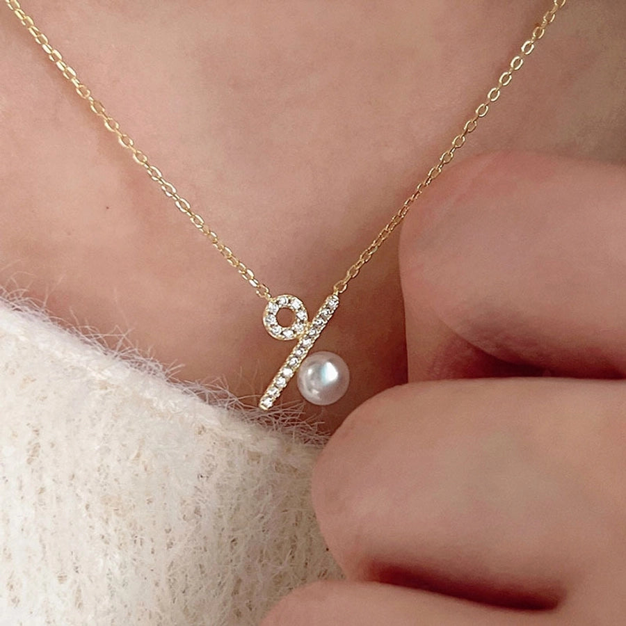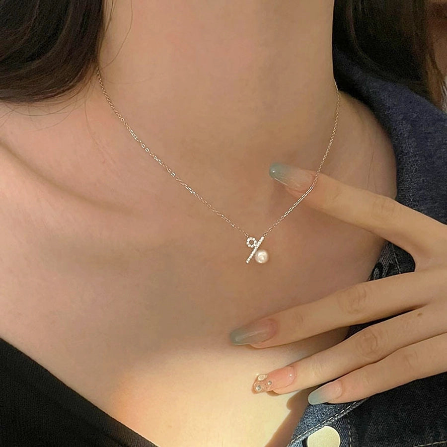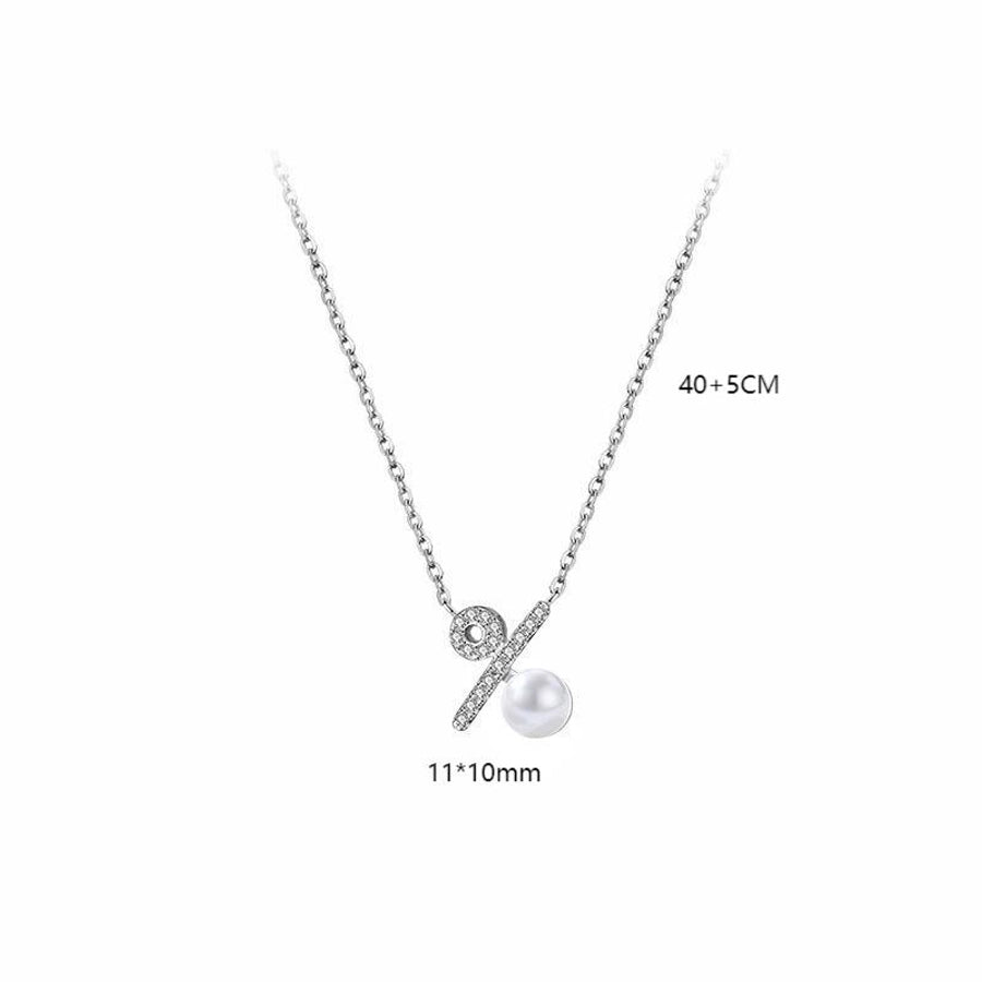 925 Sterling Silver Silver Pearl Zircon cable chain Inlay Symbol Necklace
