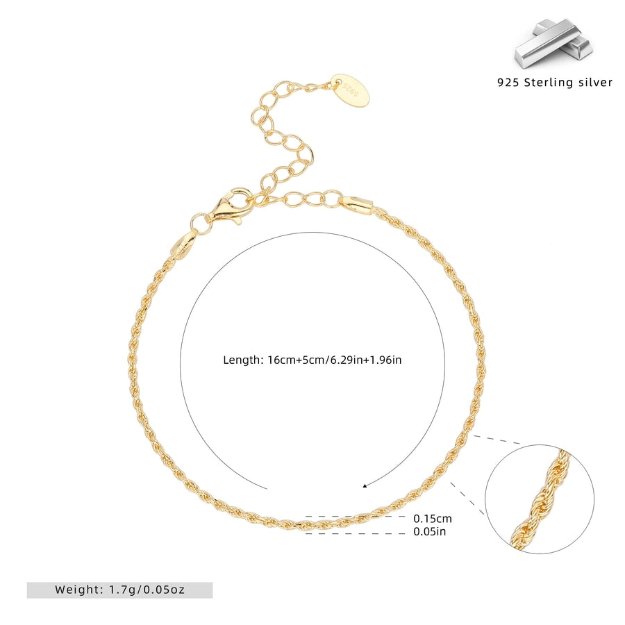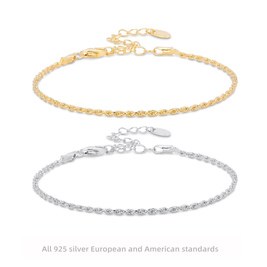 925 Sterling Silver Twisted Rope Chain Bracelets Simple Style