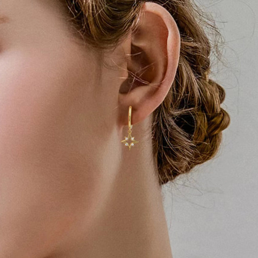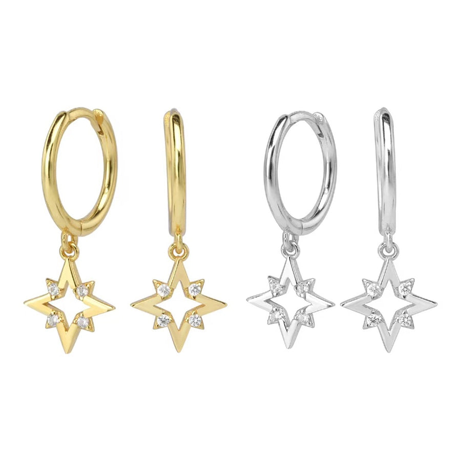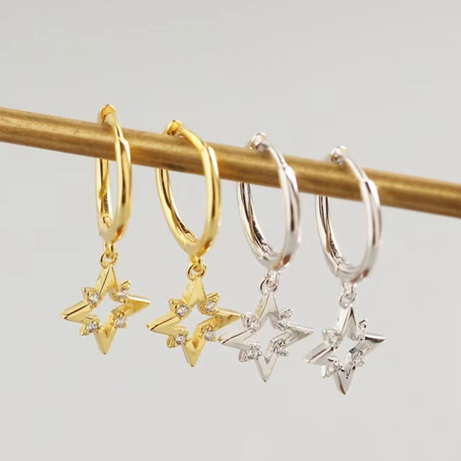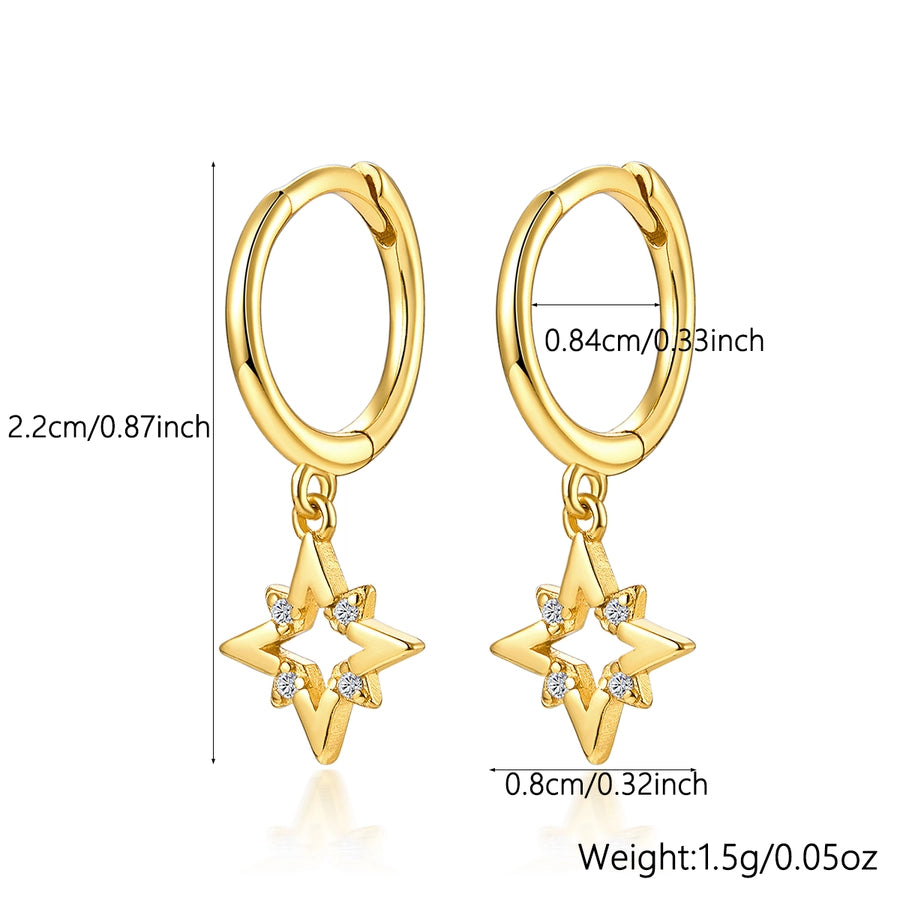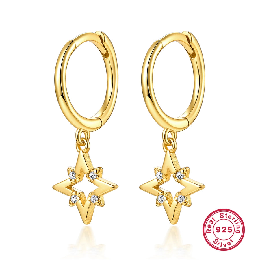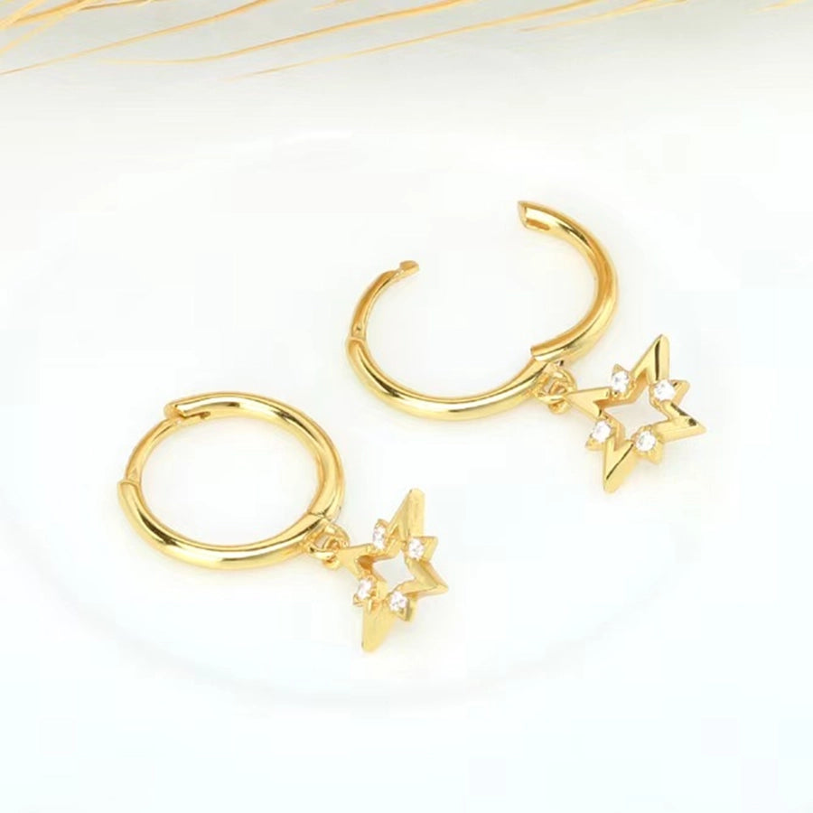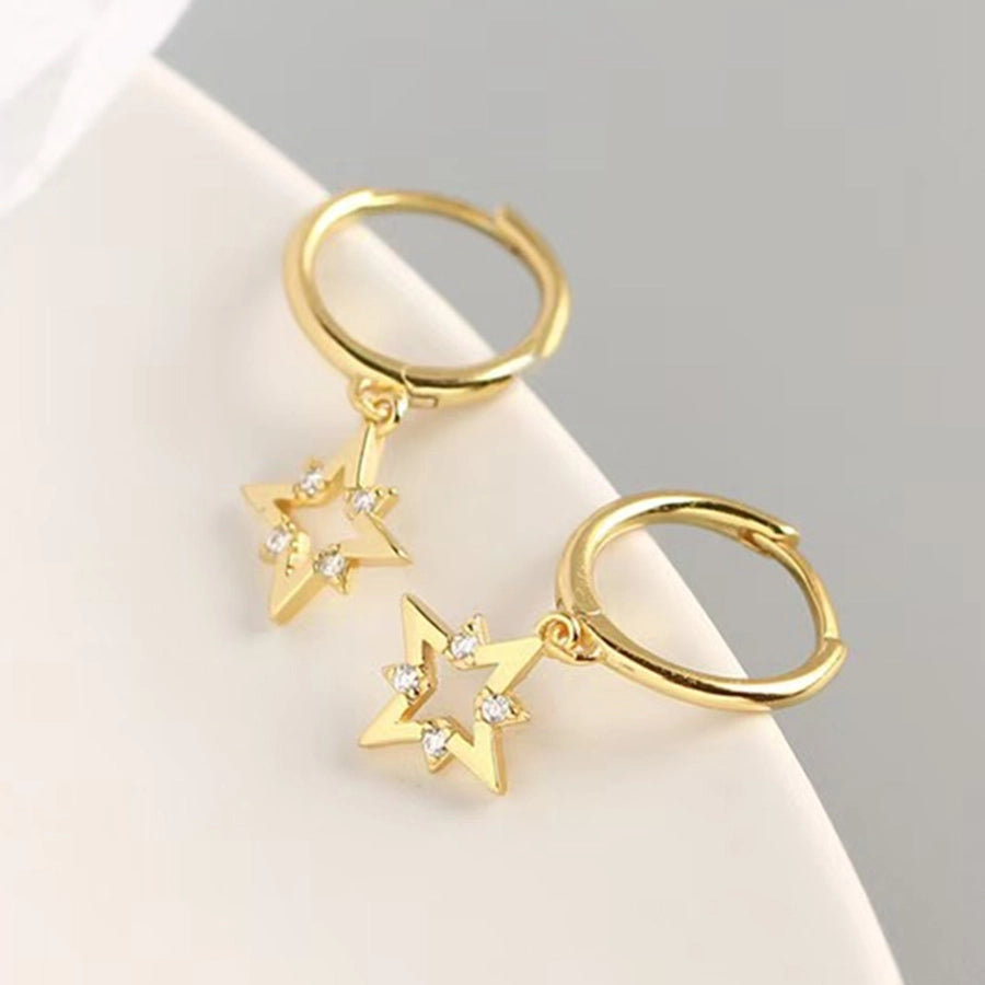 K Gold Plated White Gold Plated 925 Sterling Silver Zircon 925 Sterling Silver Earrings Star Drop Earrings
