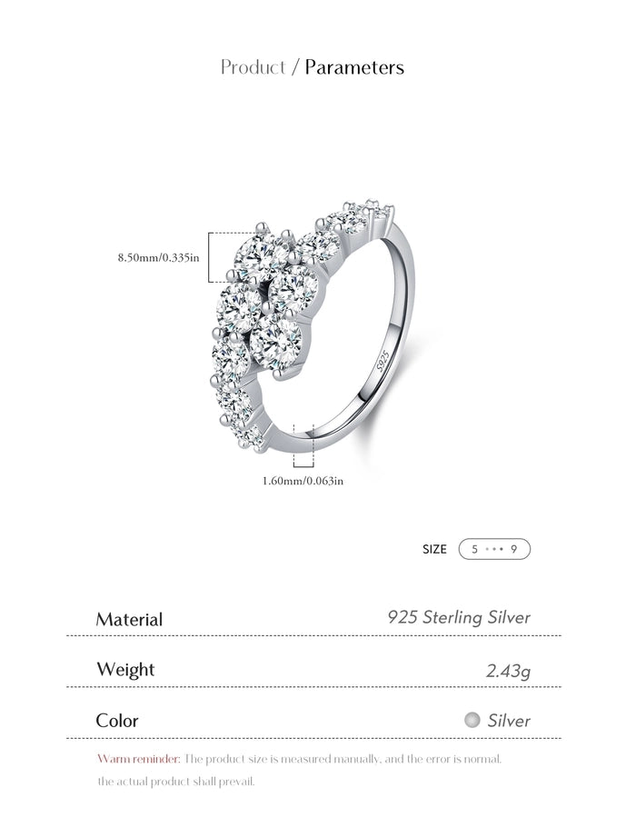 Rhodium Plated 925 Sterling Silver Zircon Geometric Rings 925 Sterling Silver Rings