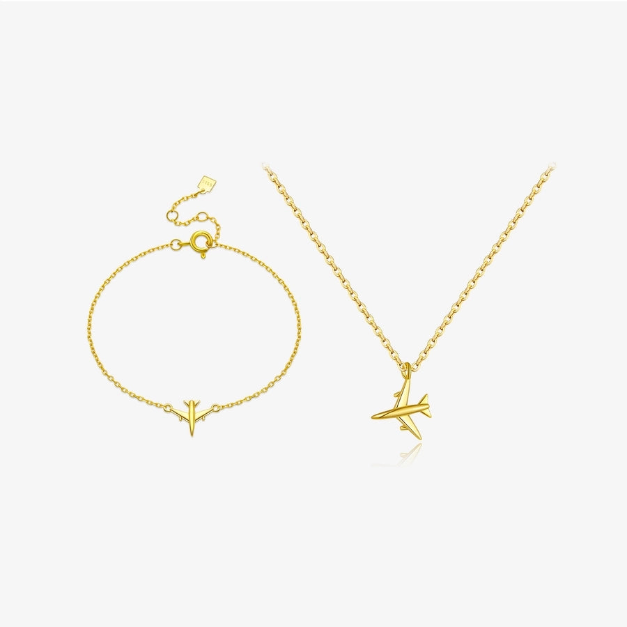S925 Sterling Silver Necklace Bracelet Aircraft Design Pendant Retro Simplicity Clavicle Chain Jewelry