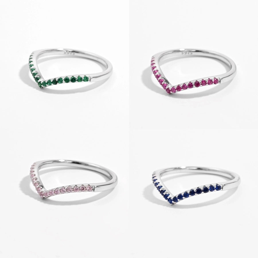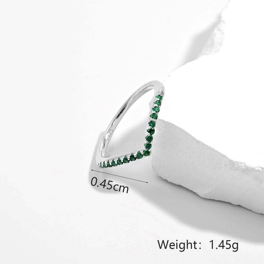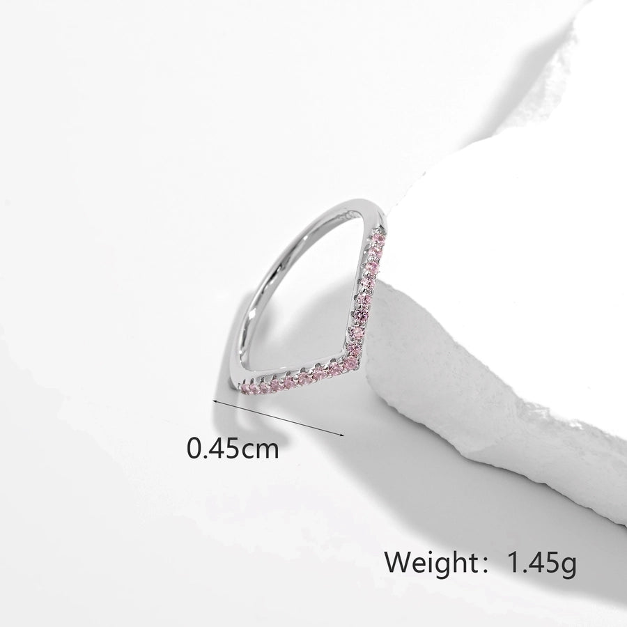 White Gold Plated 925 Sterling Silver Zircon V Shape Rings 925 Sterling Silver Rings