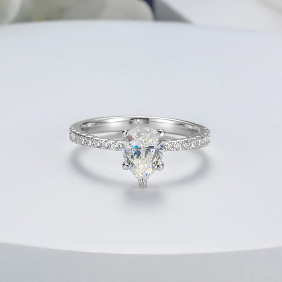 White Gold Plated Platinum Plated Rhodium Plated Sterling Silver Zircon Water Droplets Rings 925 Sterling Silver Rings