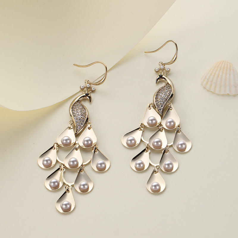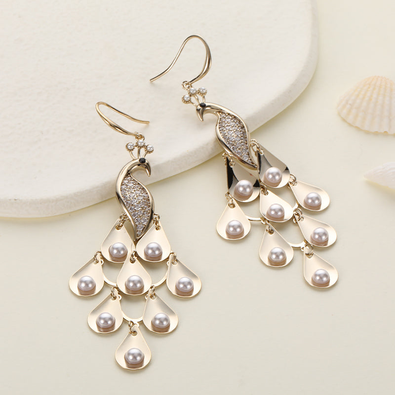 These imitation pearl peacock earrings are the perfect way to add a little bit of magic to your day. Whether you're wearing them to work or out on a date, these stunning earrings will make you feel like royalty.