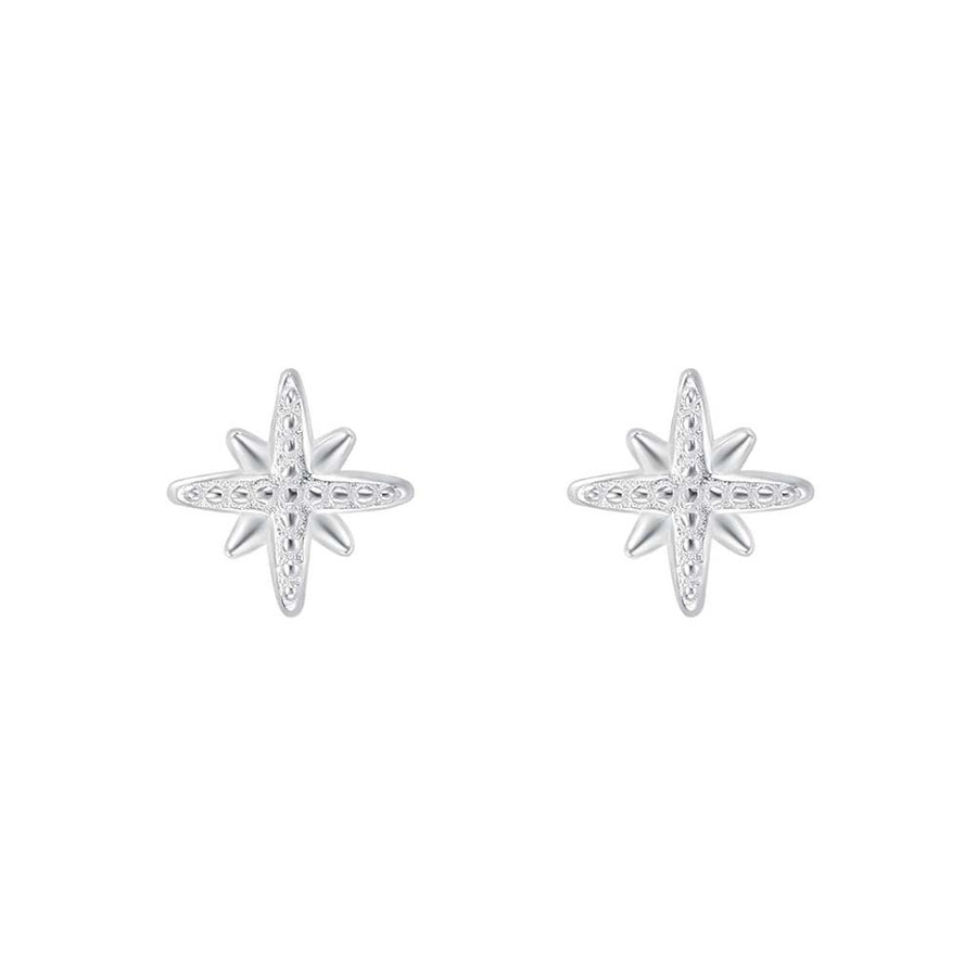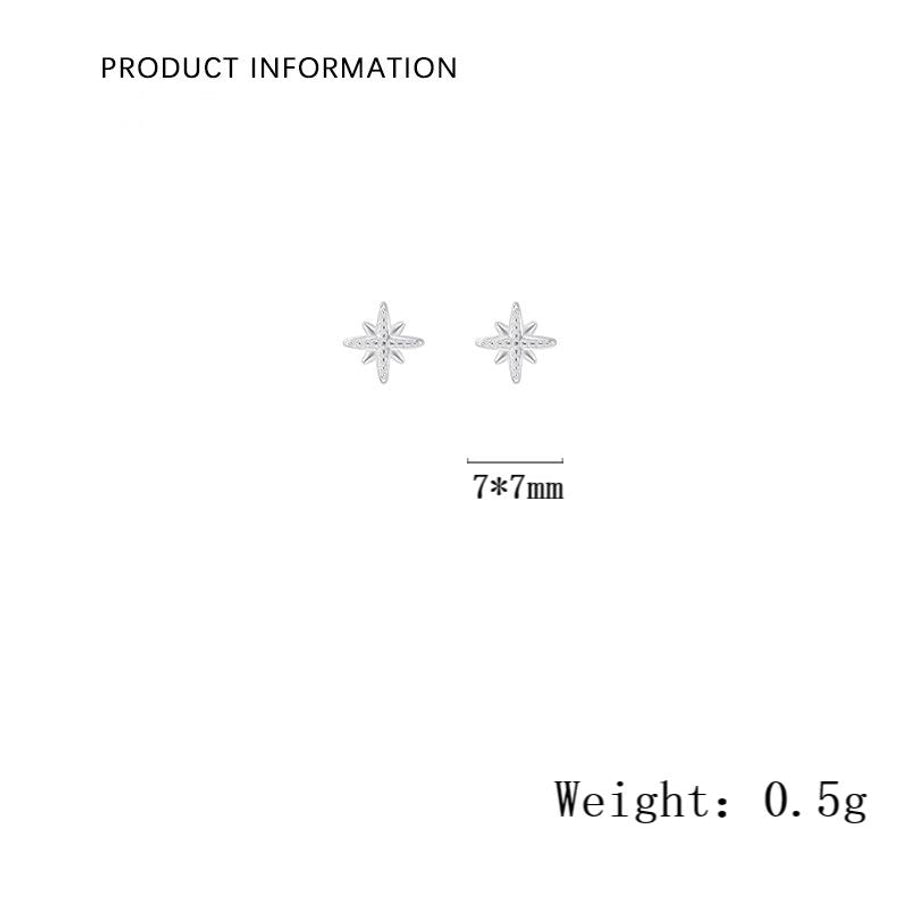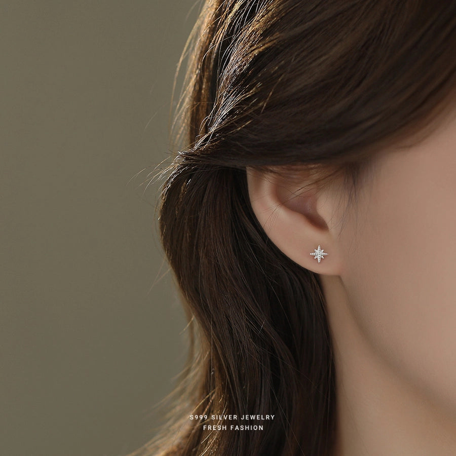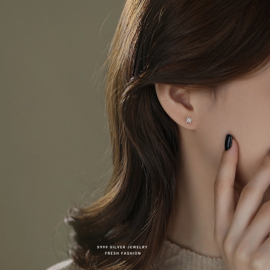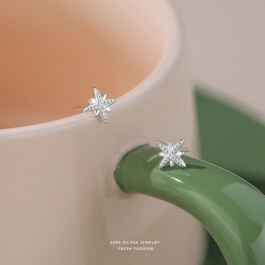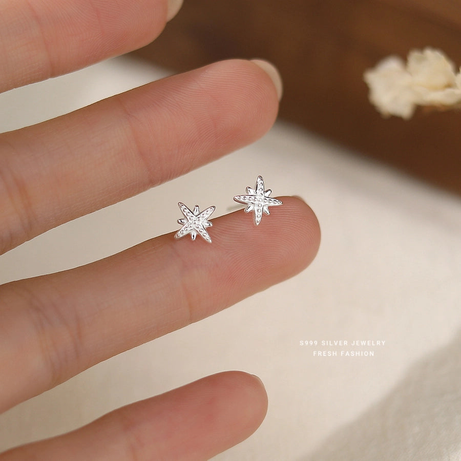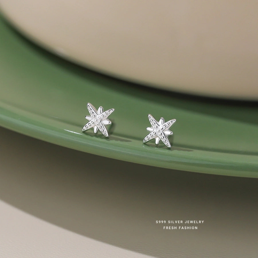 1 Pair S999 Silver 925 Sterling Silver Earrings Eight awn star Star Ear Studs
