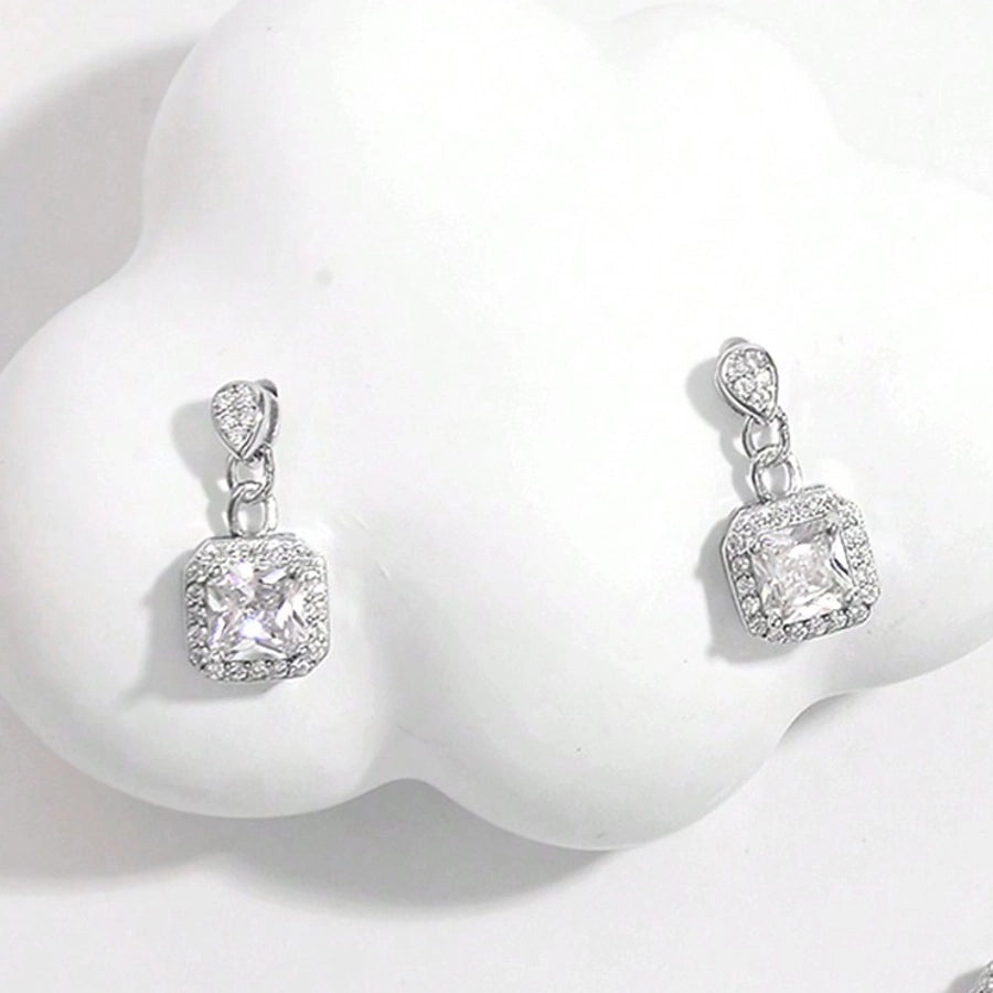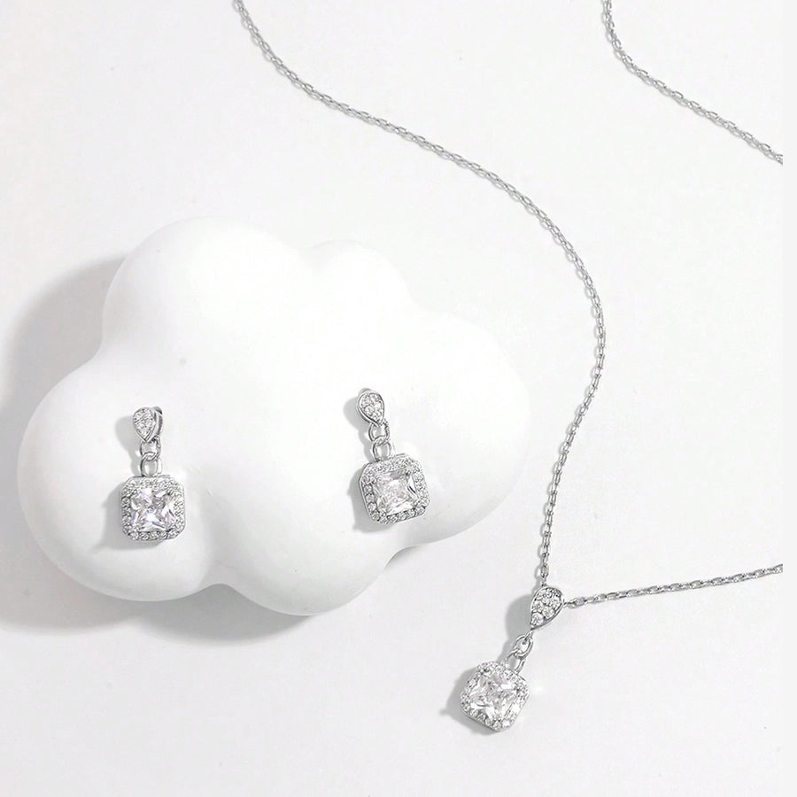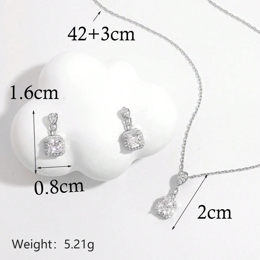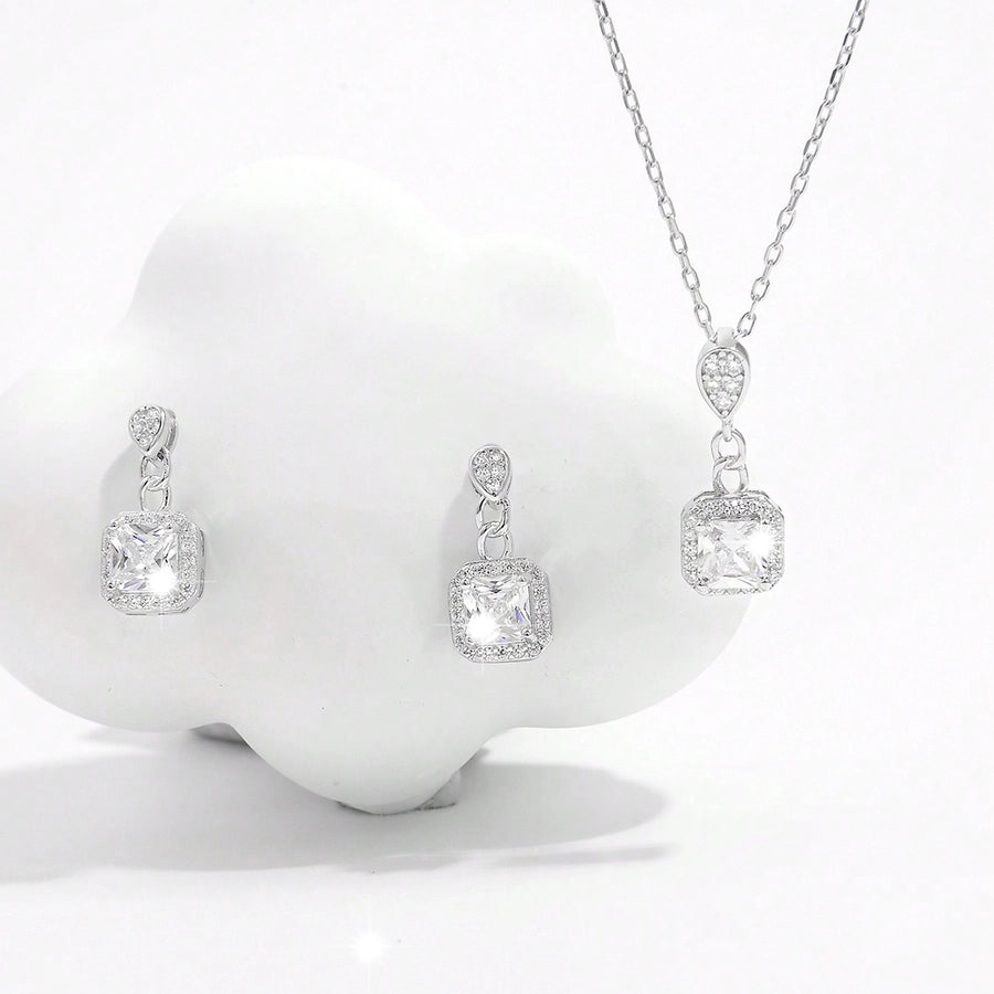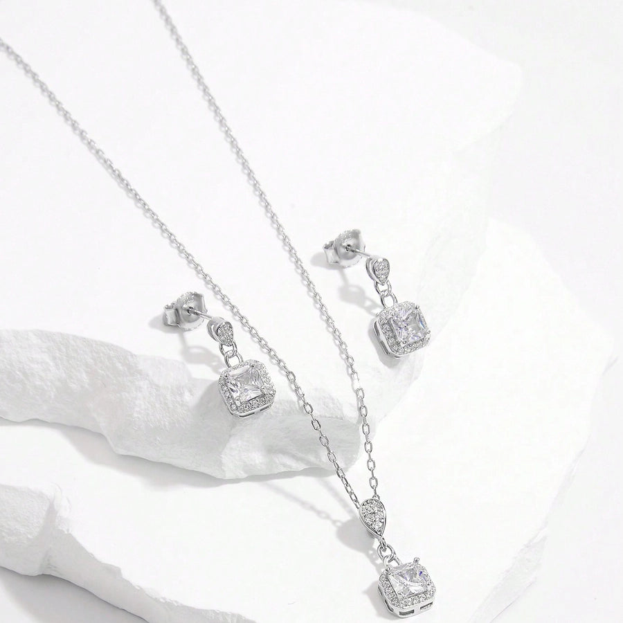 925 Sterling Silver Plated Platinum Earrings and Necklace Set