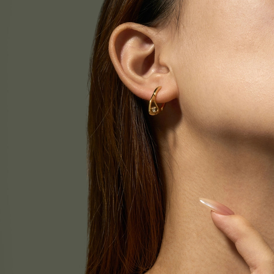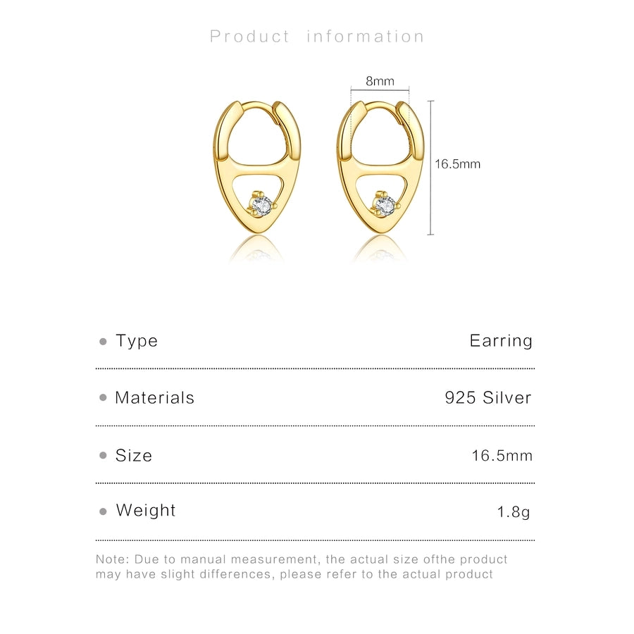 1 Pair 18K Gold Plated White Gold Plated 925 Sterling Silver Zircon 925 Sterling Silver Earrings Geometric Earrings