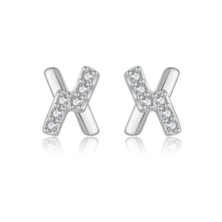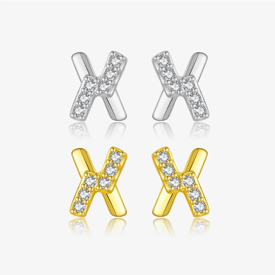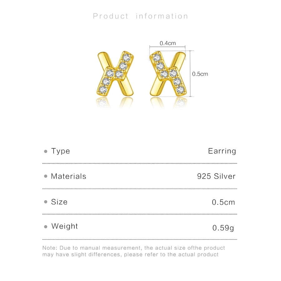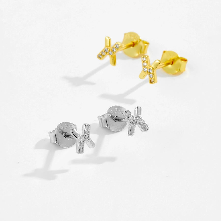 1 Pair 18K Gold Plated White Gold Plated 925 Sterling Silver Zircon 925 Sterling Silver Earrings Letter Ear Studs