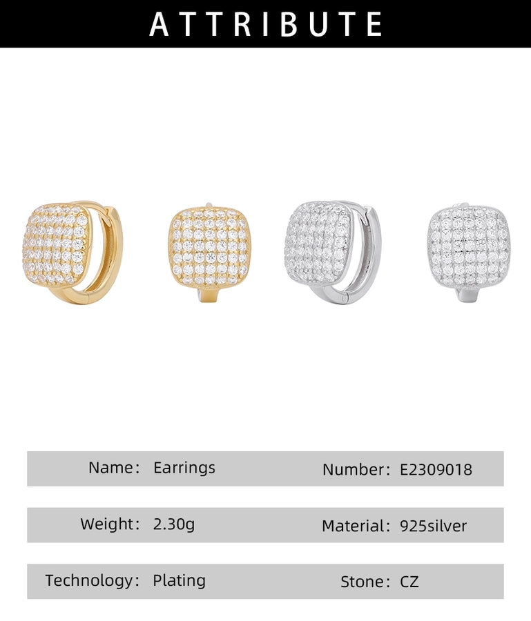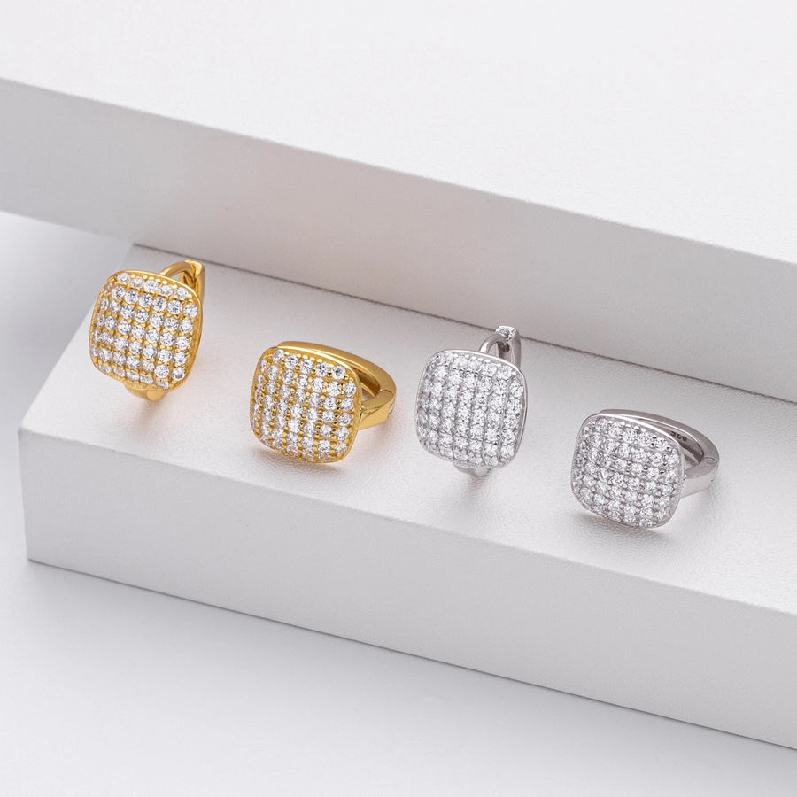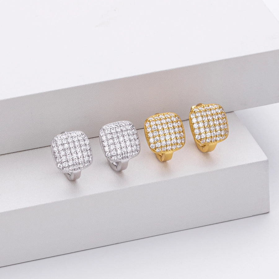 1 Pair 18K Gold Plated White Gold Plated Rhodium Plated 925 Sterling Silver 925 Sterling Silver Diamond 925 Sterling Silver Earrings Geometric Earrings