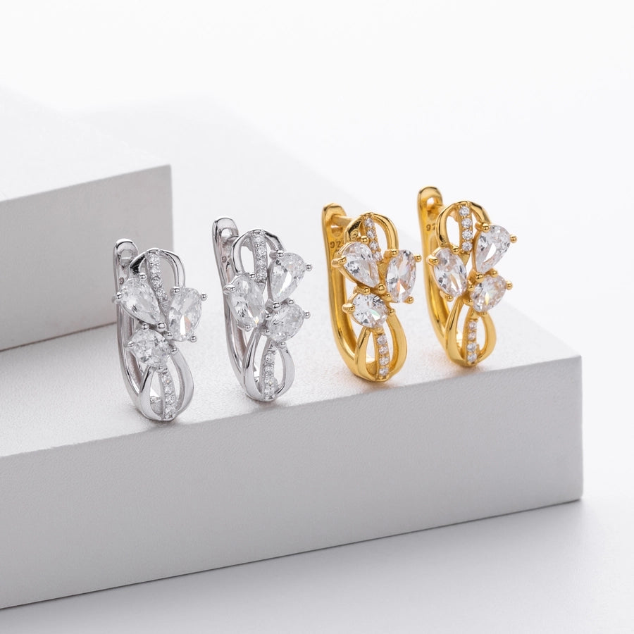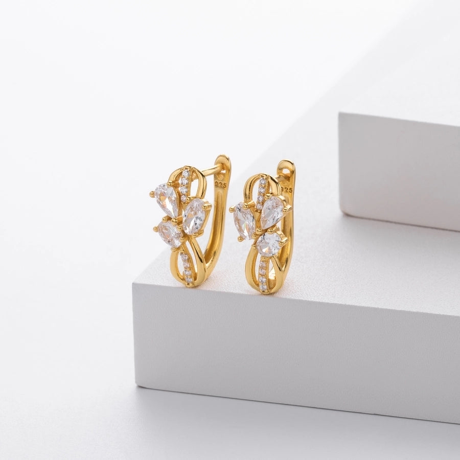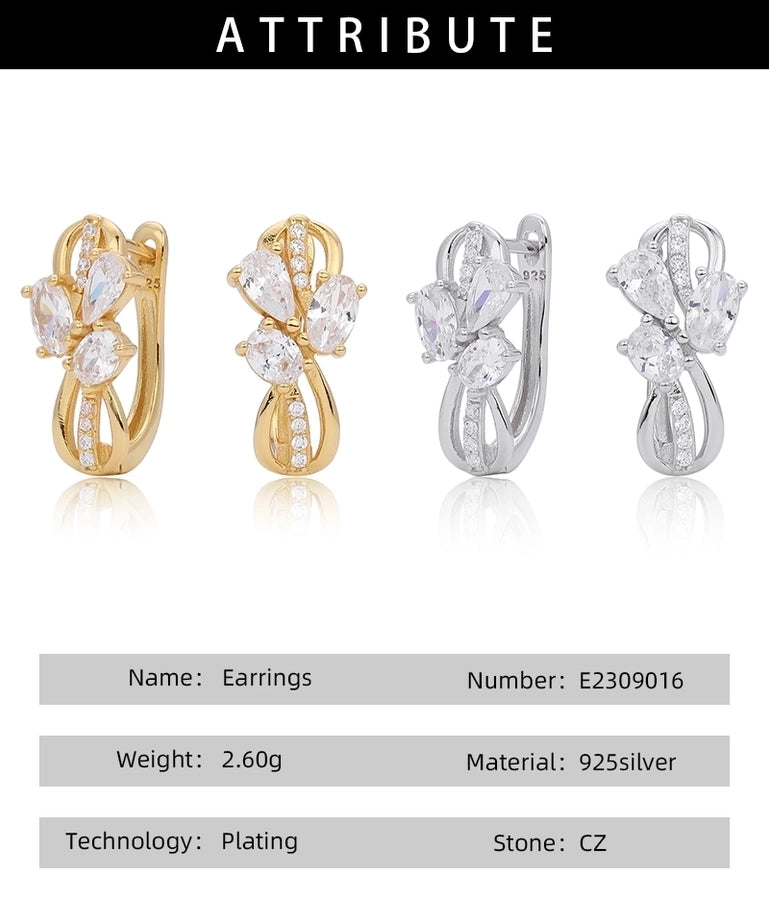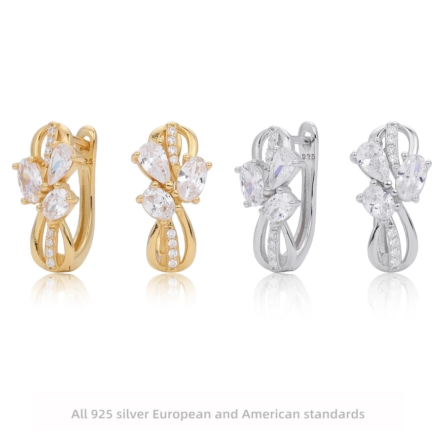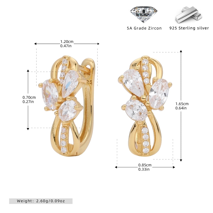 1 Pair 18K Gold Plated White Gold Plated Rhodium Plated 925 Sterling Silver Zircon 925 Sterling Silver Earrings U Shape Geometric Earrings