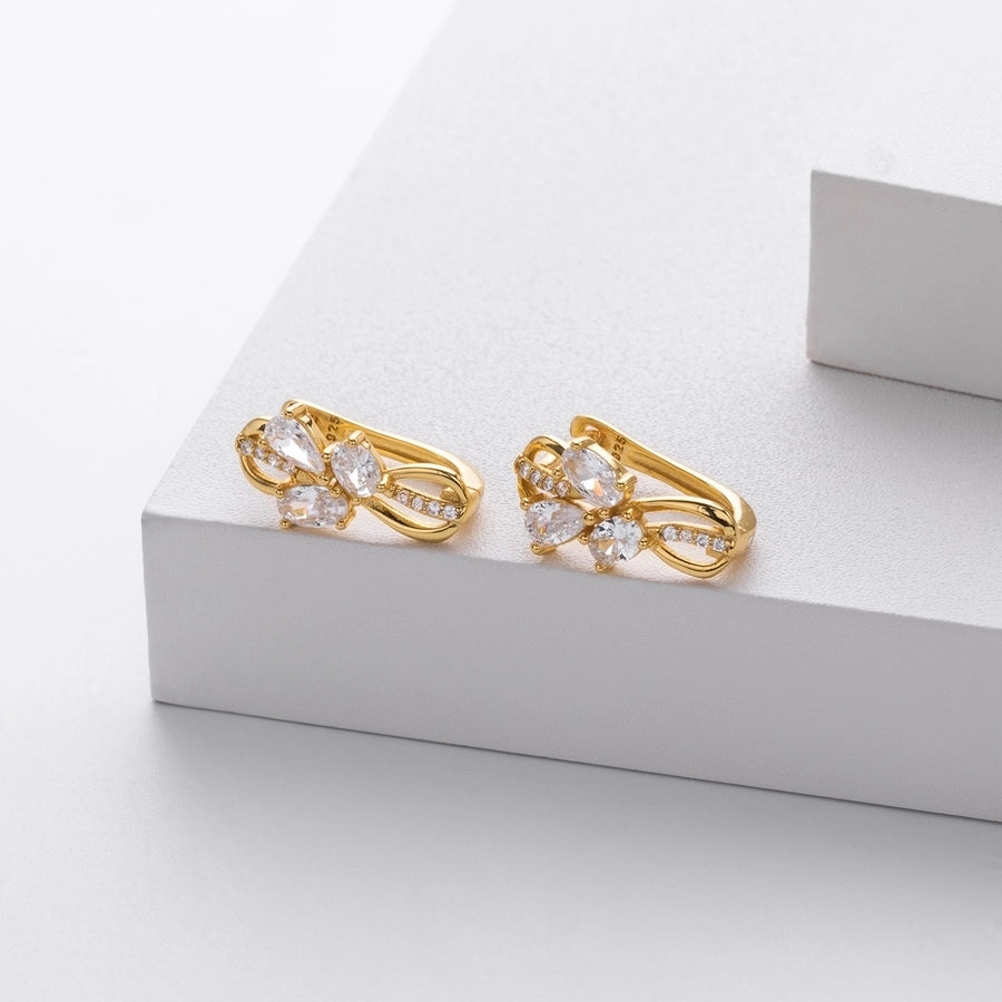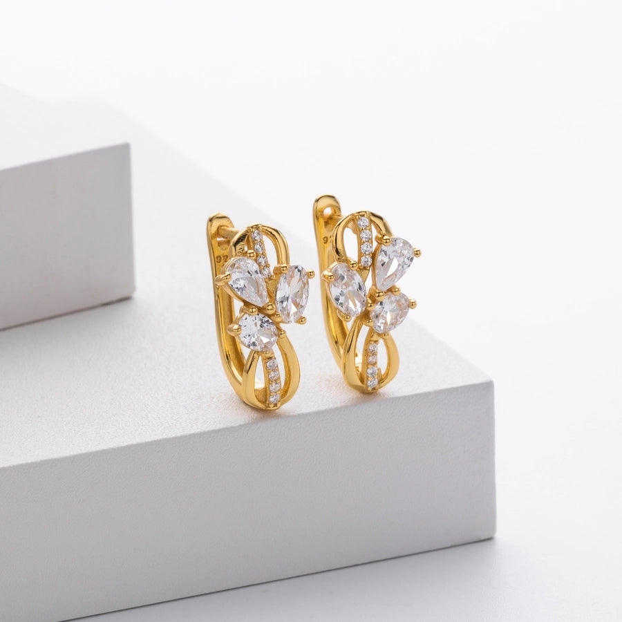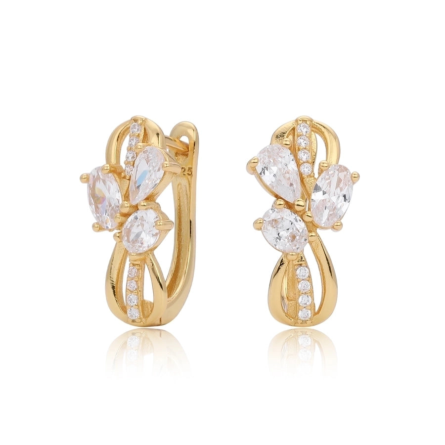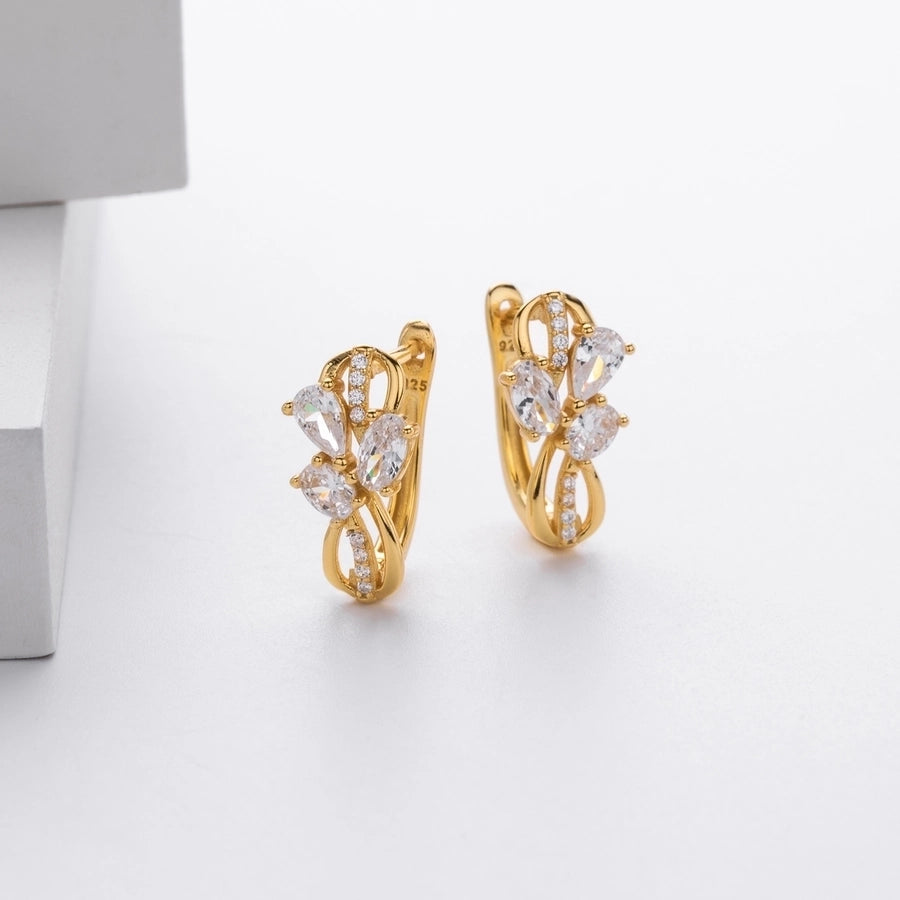1 Pair 18K Gold Plated White Gold Plated Rhodium Plated 925 Sterling Silver Zircon 925 Sterling Silver Earrings U Shape Geometric Earrings