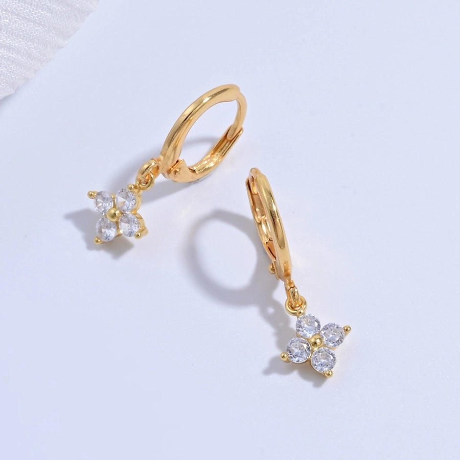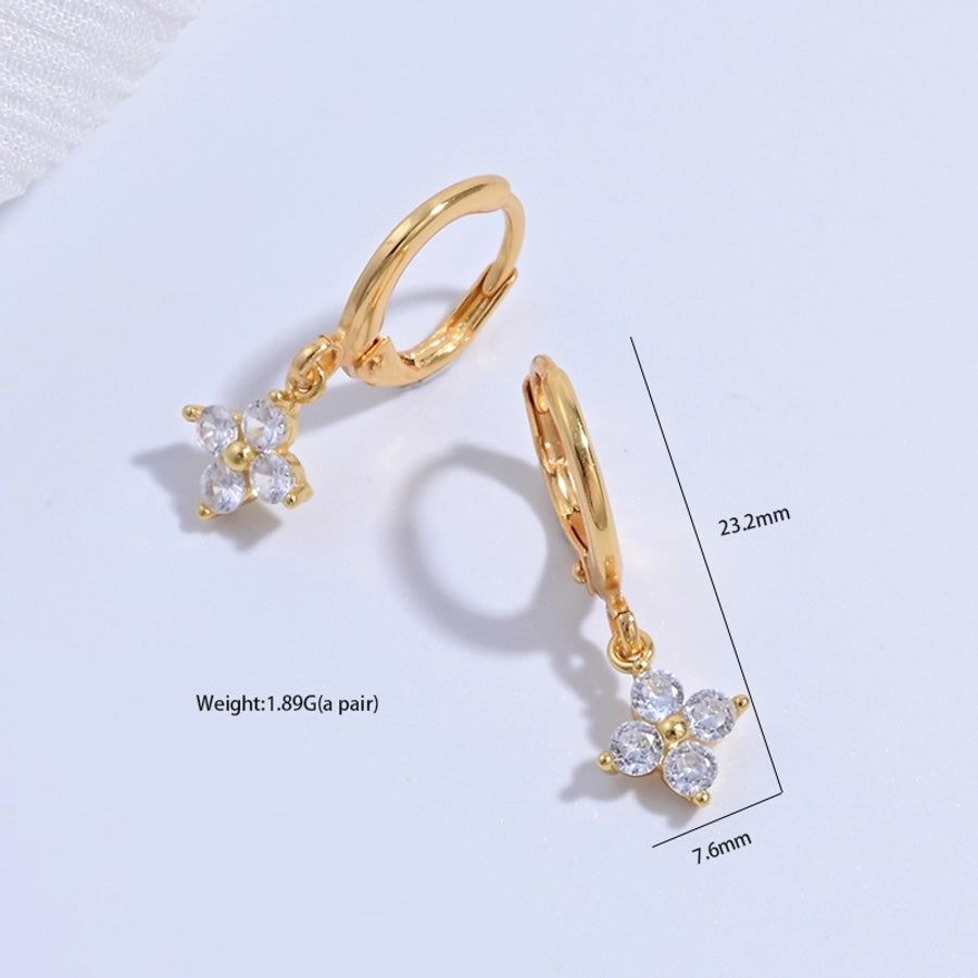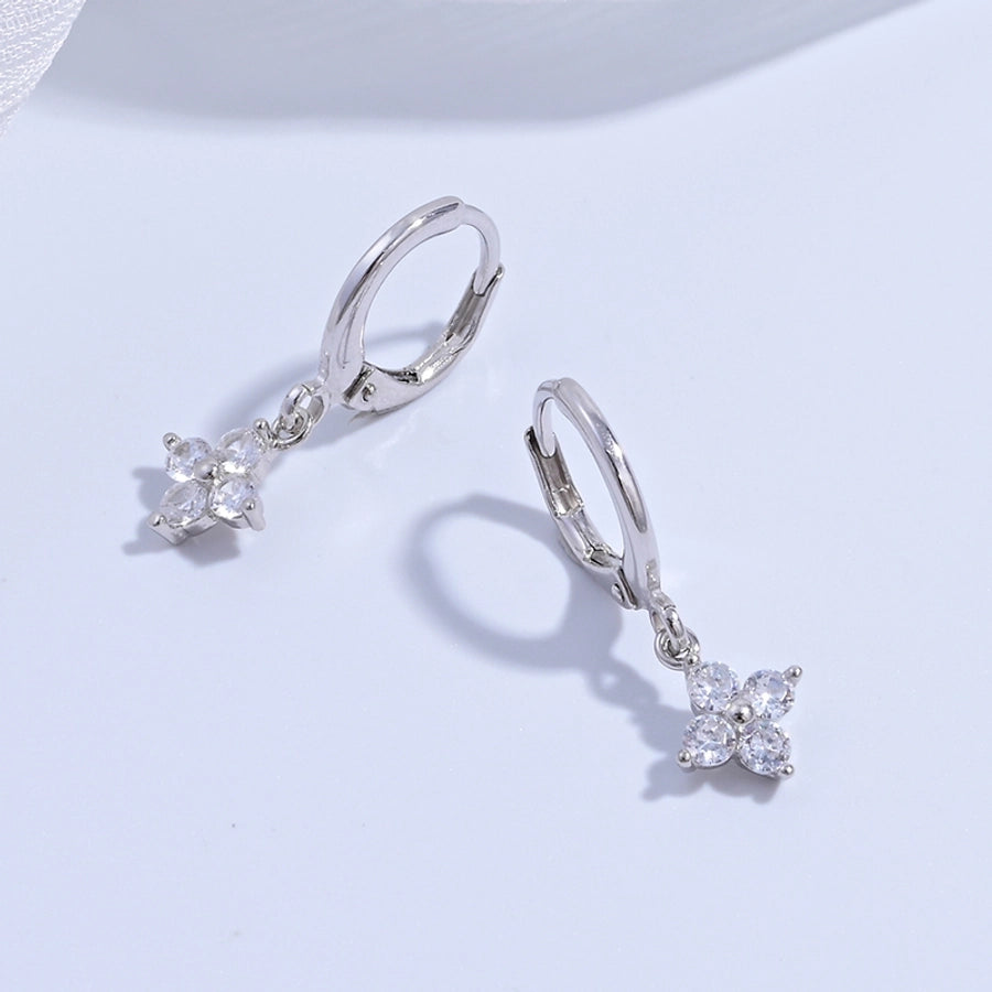 1 Pair 22K Gold Plated Rhodium Plated 925 Sterling Silver Zircon 925 Sterling Silver Earrings Four Leaf Clover Drop Earrings