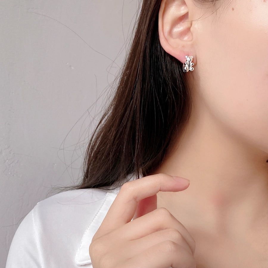 1 Pair 925 Sterling Silver 925 Sterling Silver Earrings Bear Earrings