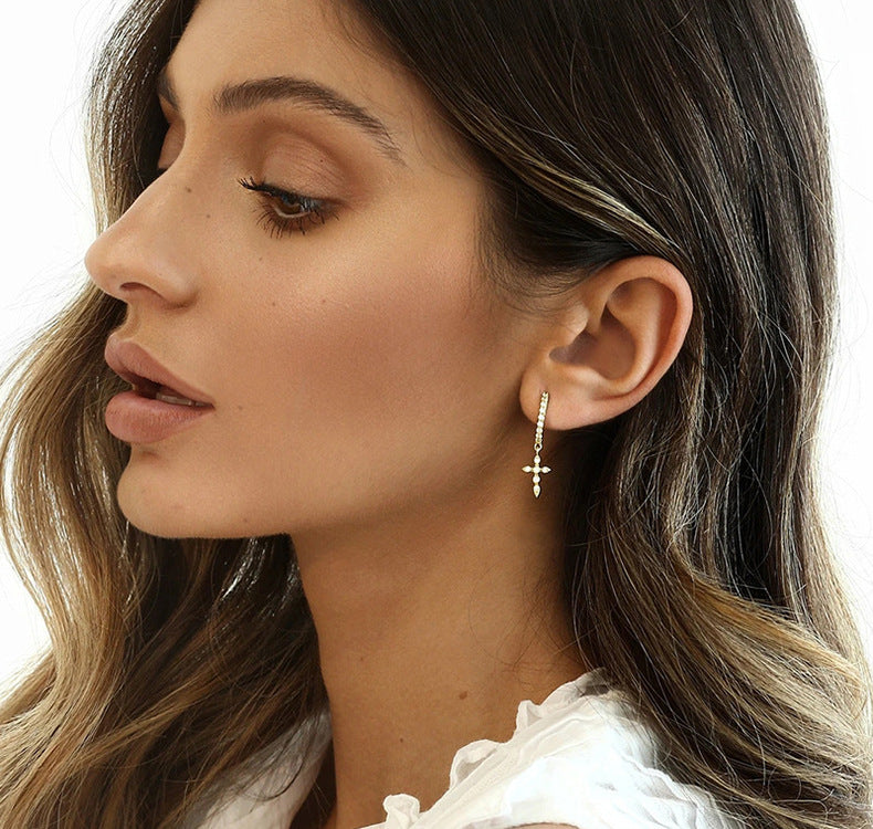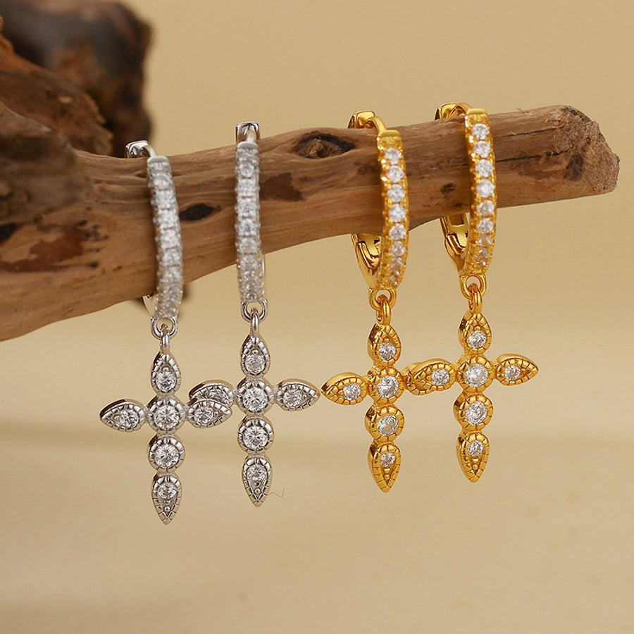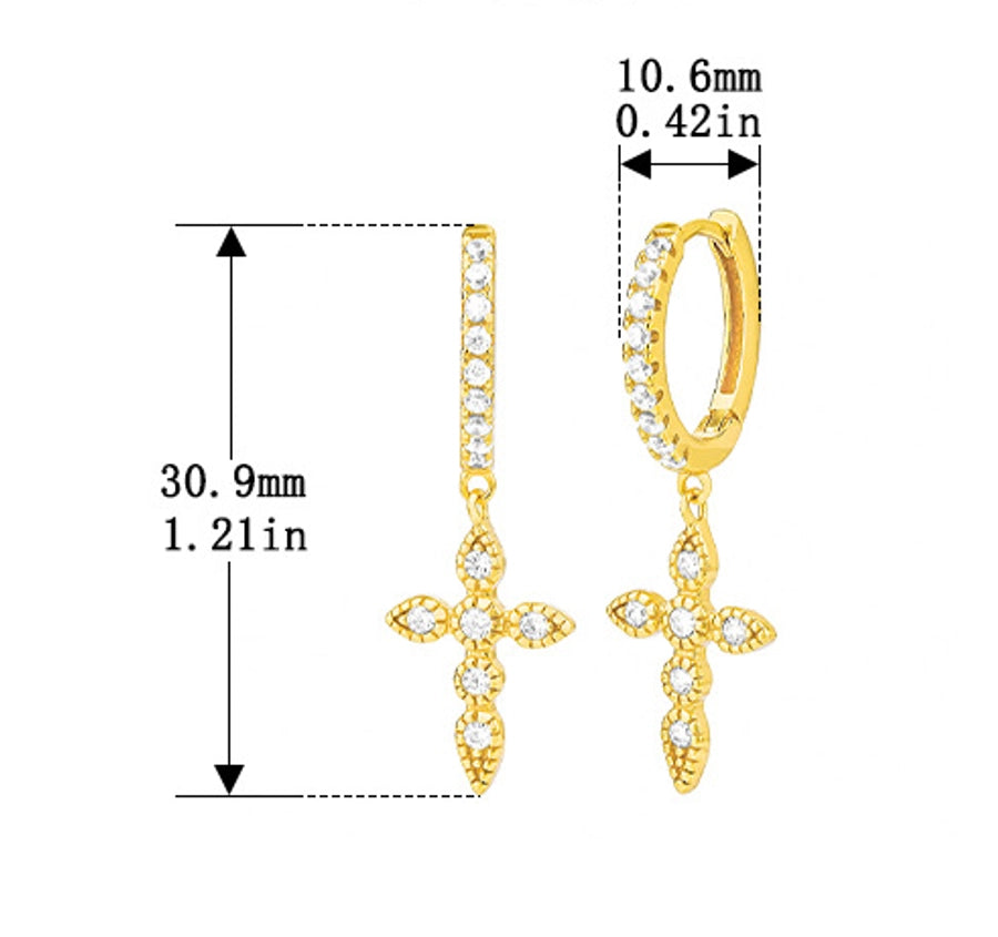 1 Pair 925 Sterling Silver 925 Sterling Silver Earrings Cross Drop Earrings