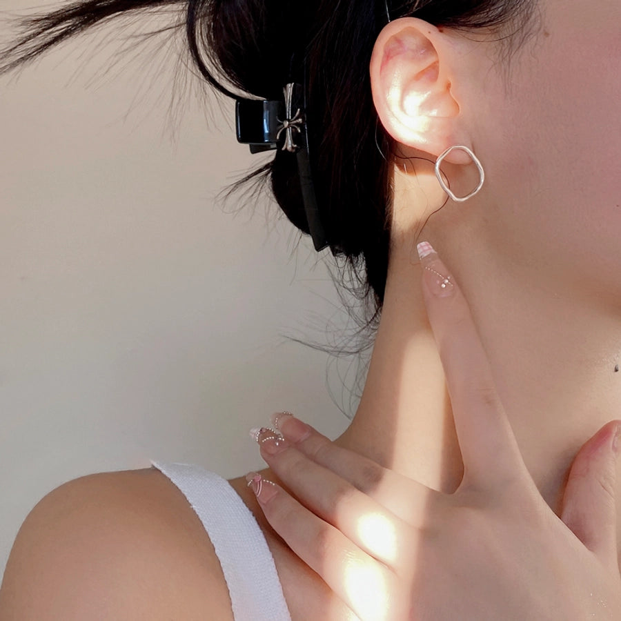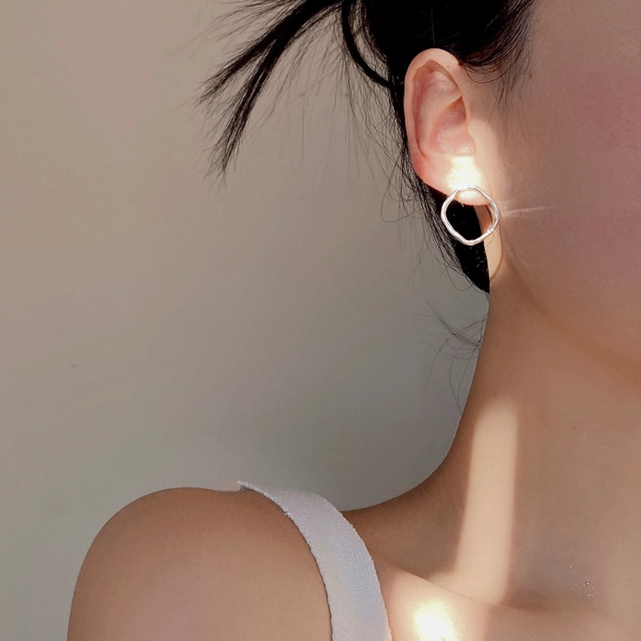 1 Pair 925 Sterling Silver 925 Sterling Silver Earrings Geometric Ear Studs