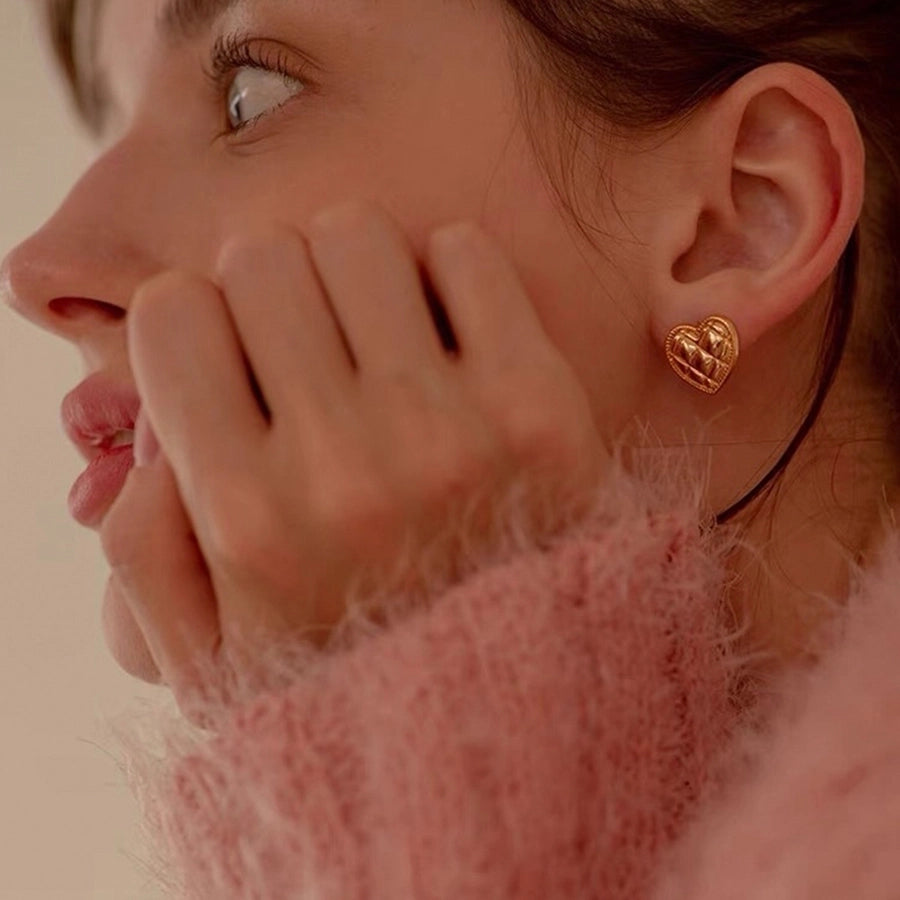 1 Pair 925 Sterling Silver 925 Sterling Silver Earrings Heart Shape Ear Studs