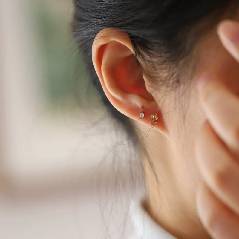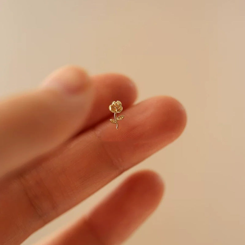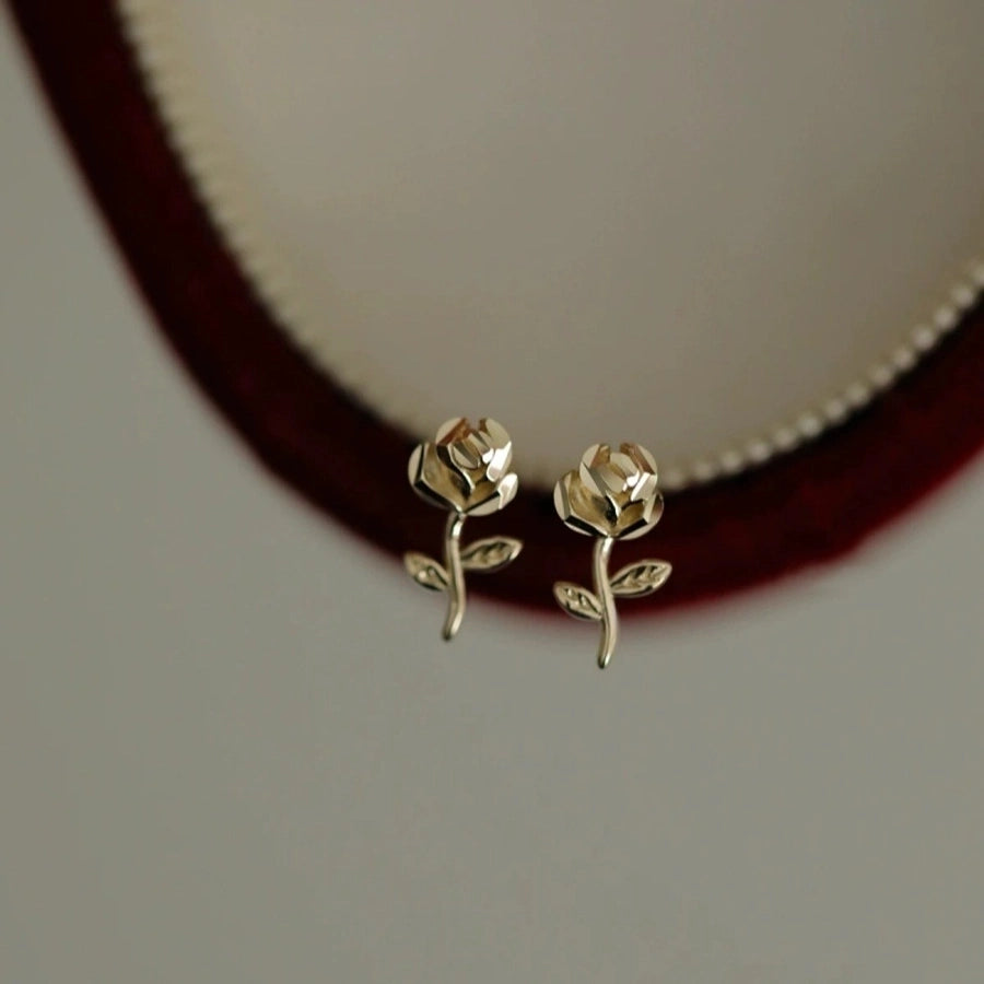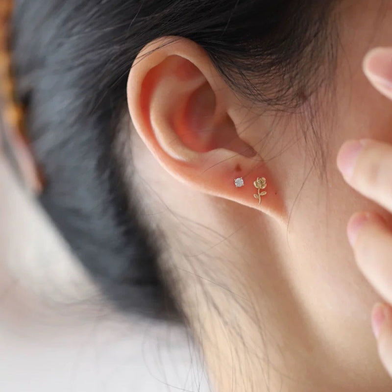 1 Pair 925 Sterling Silver 925 Sterling Silver Earrings Rose Ear Studs