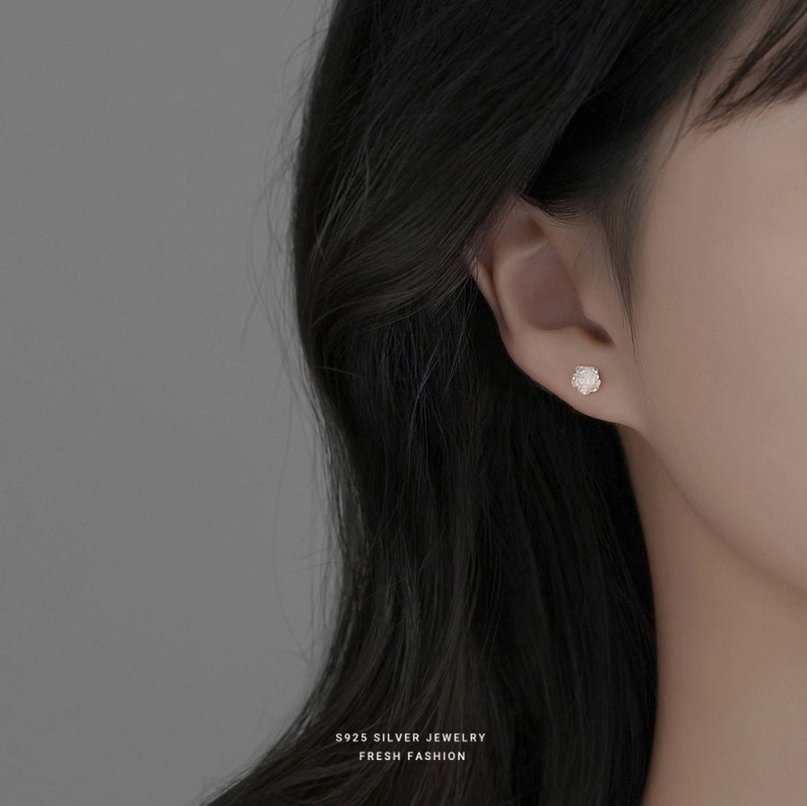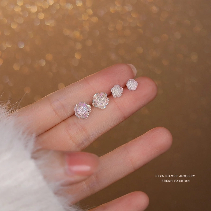 1 Pair 925 Sterling Silver 925 Sterling Silver Earrings Rose Ear Studs