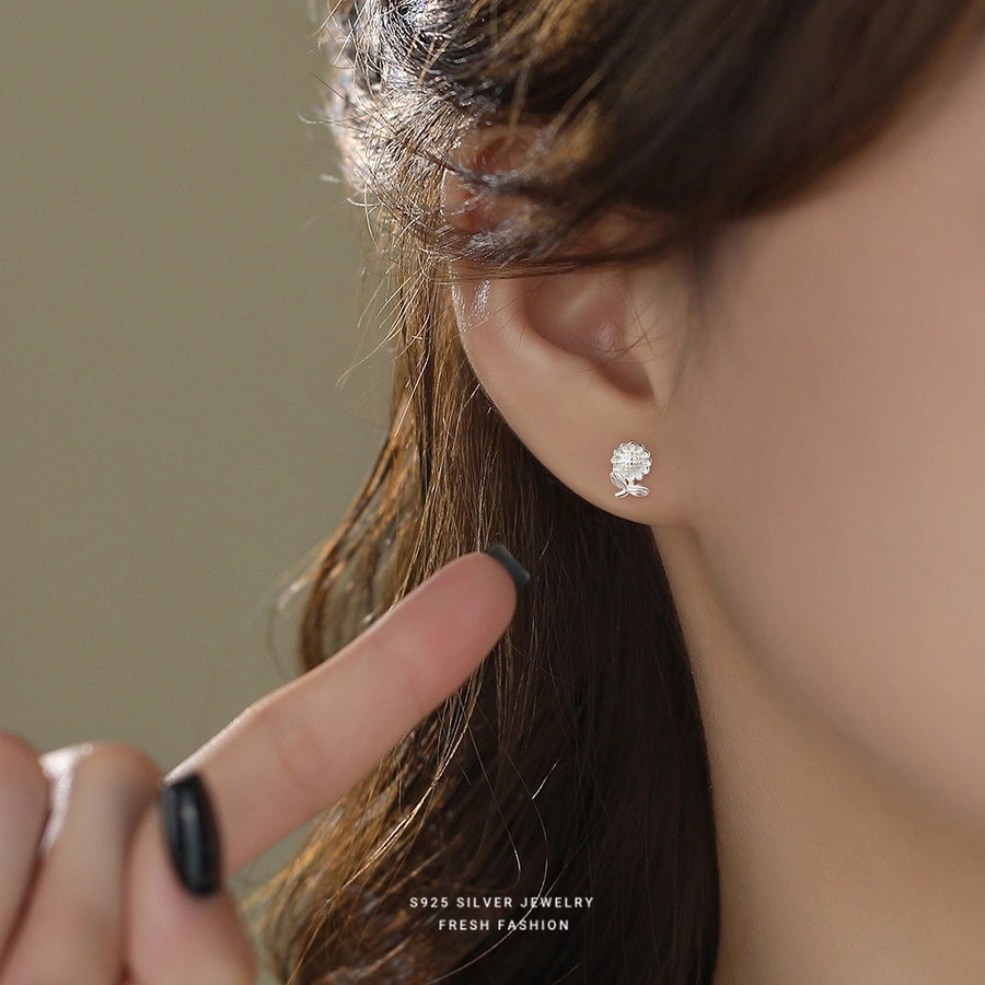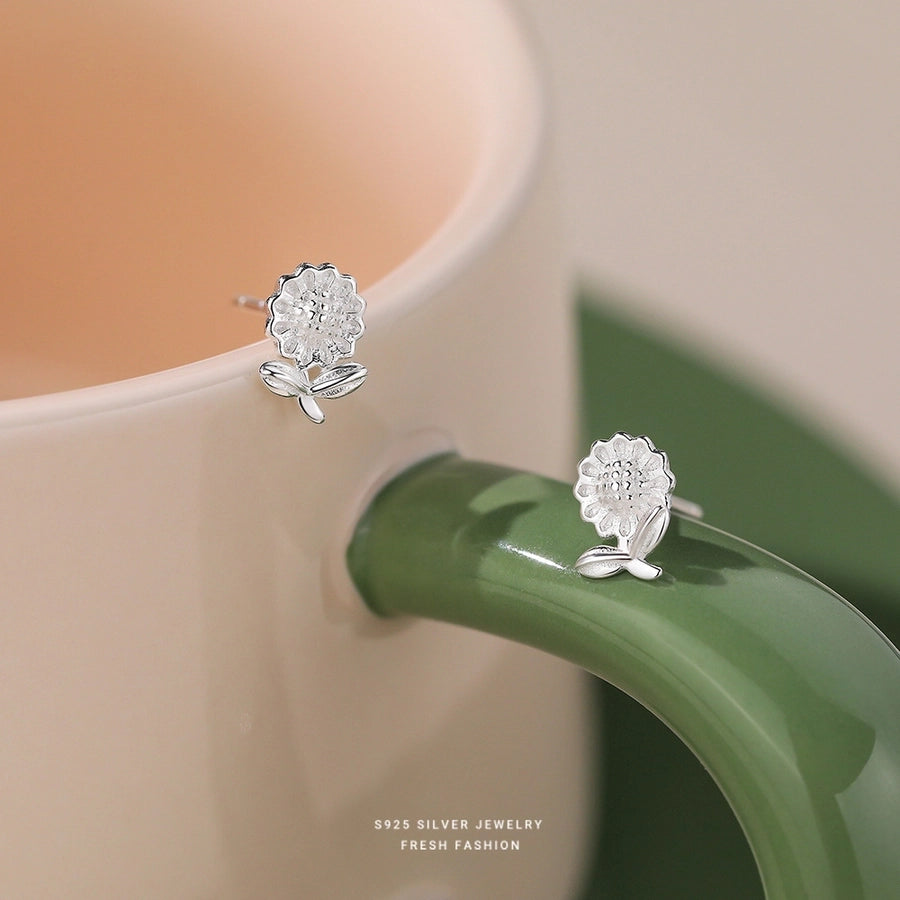1 Pair 925 Sterling Silver 925 Sterling Silver Earrings Sunflower Ear Studs