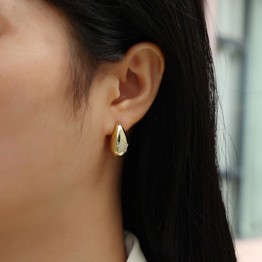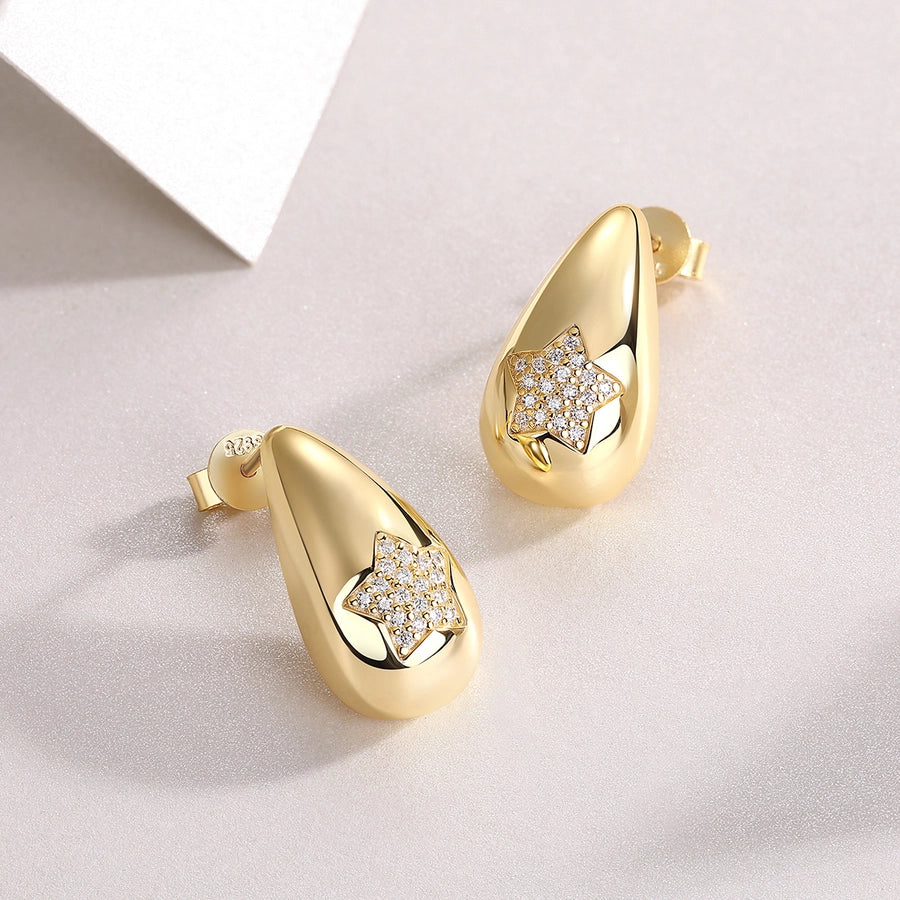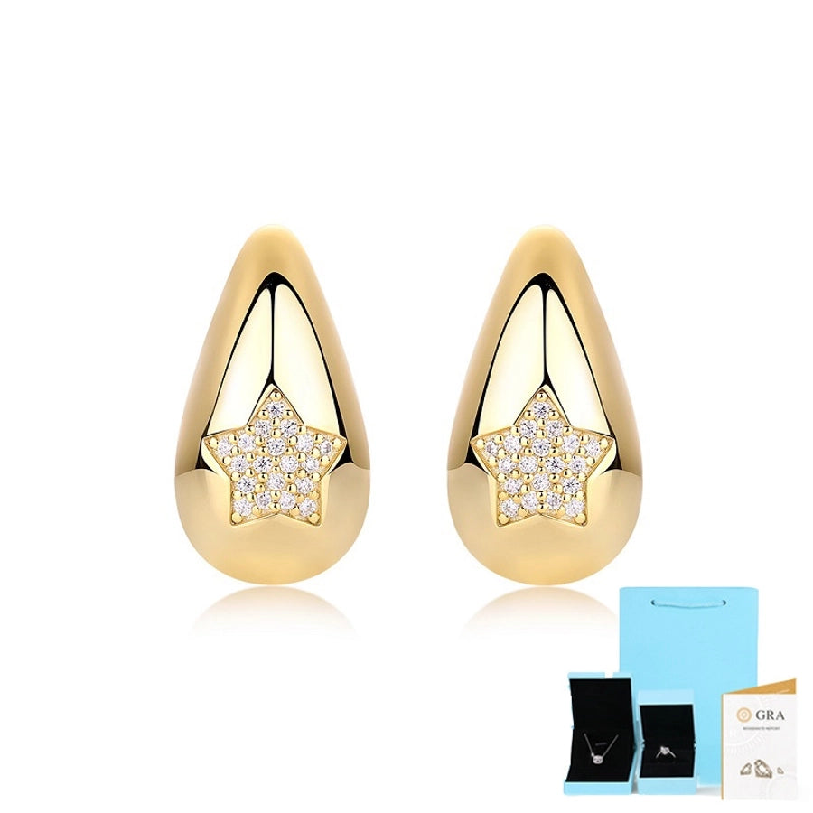 1 Pair 925 Sterling Silver Moissanite GRA Certificate 925 Sterling Silver Earrings Star Water Droplets Ear Studs