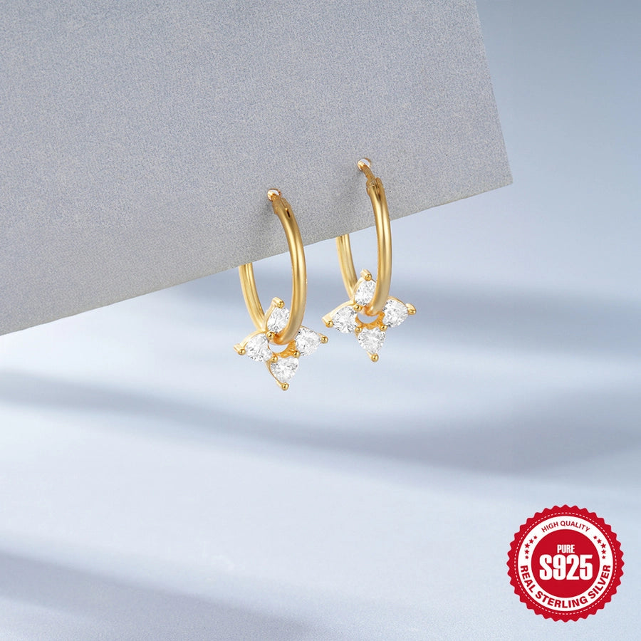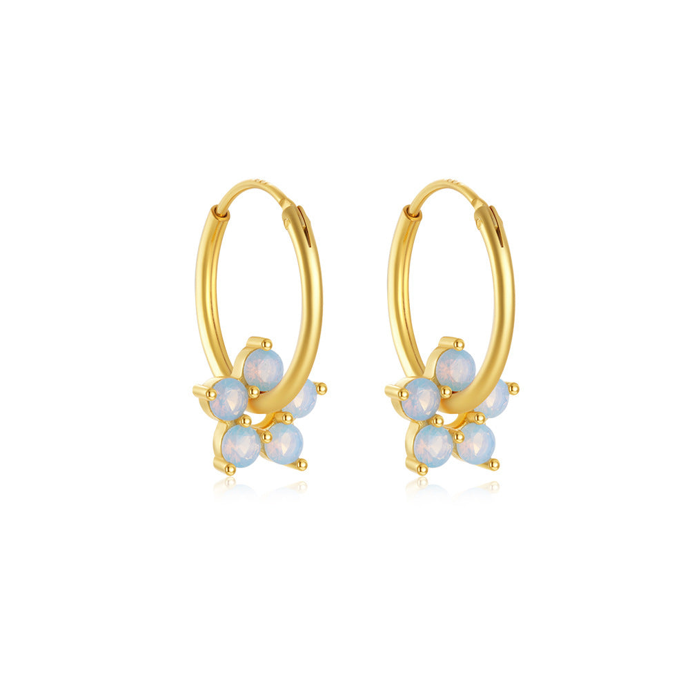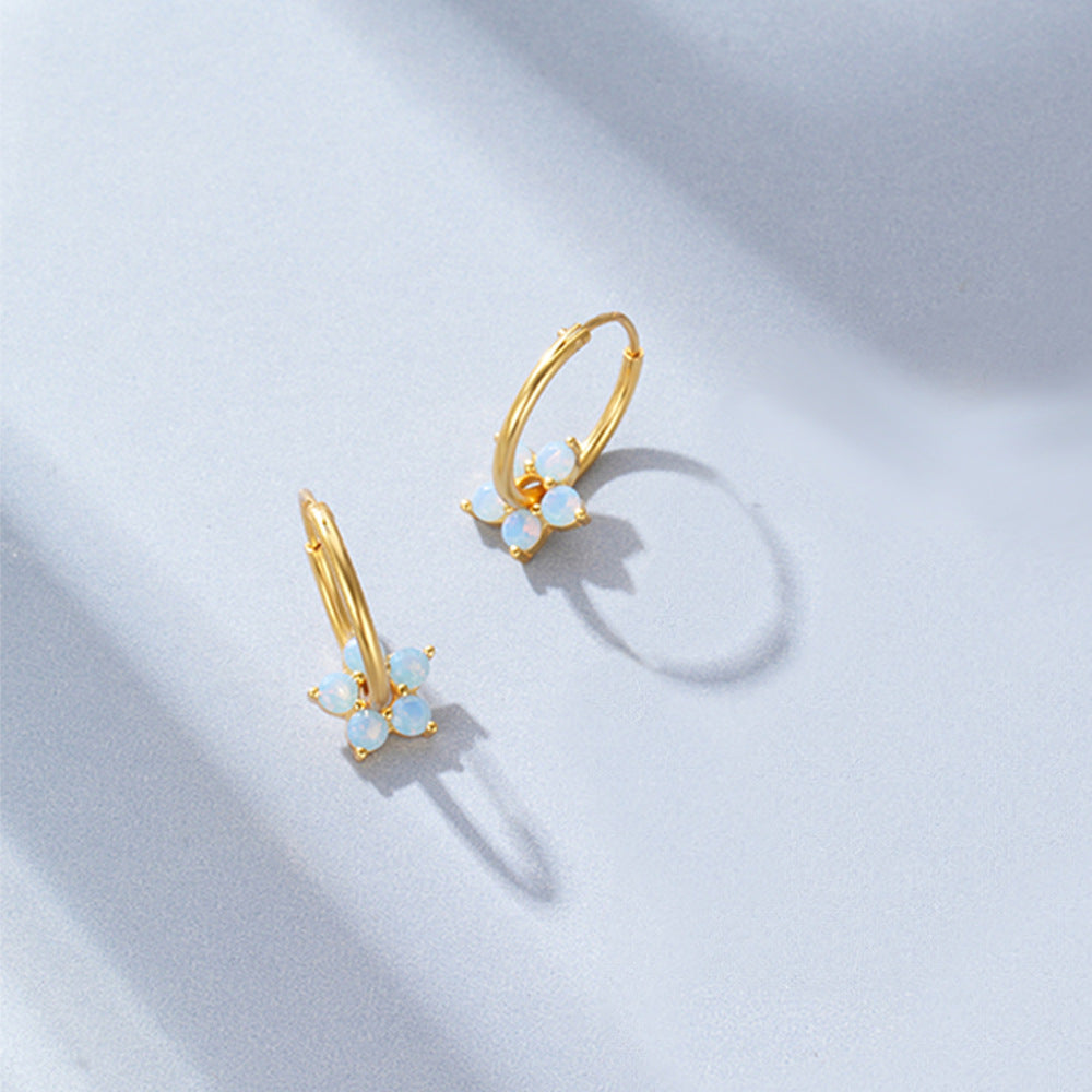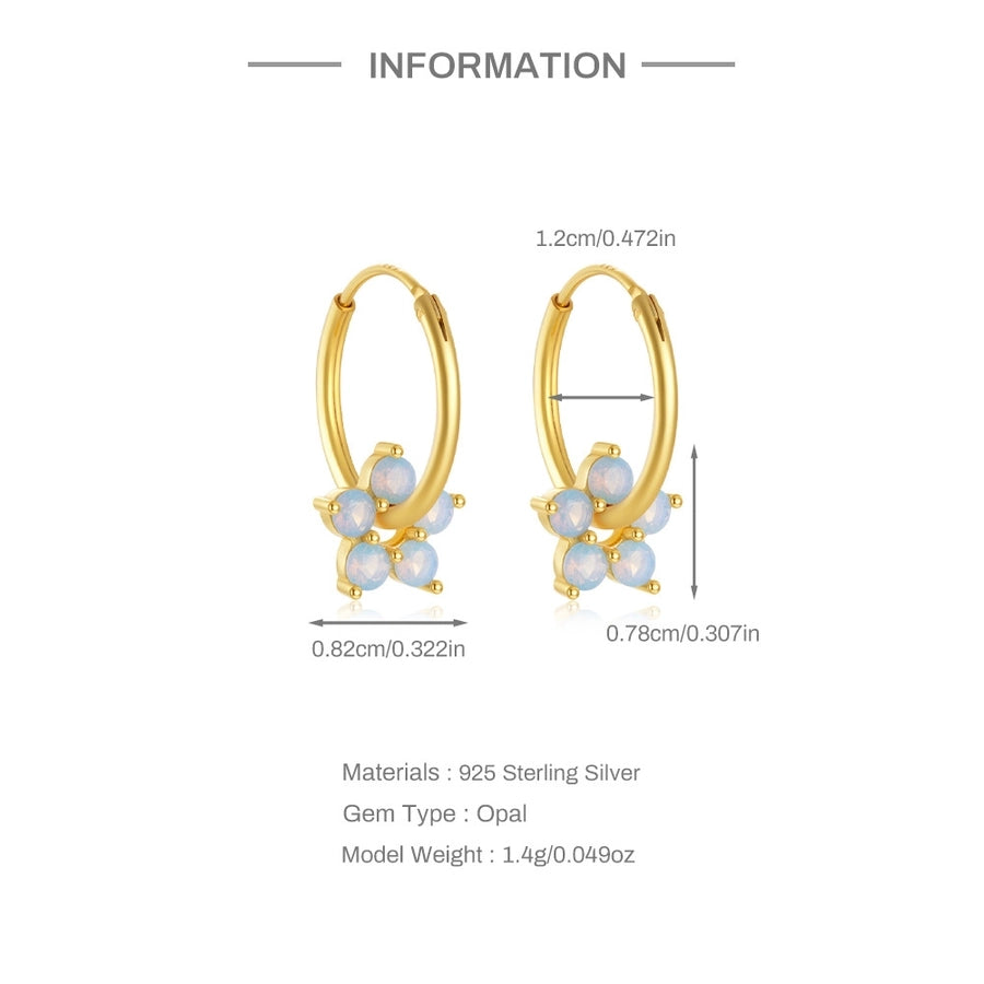 1 Pair 925 Sterling Silver Opal Zircon 925 Sterling Silver Earrings Geometric Flower Earrings
