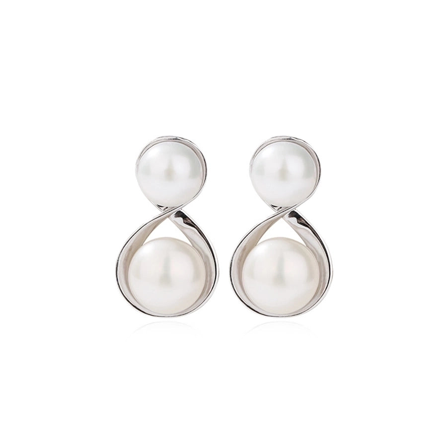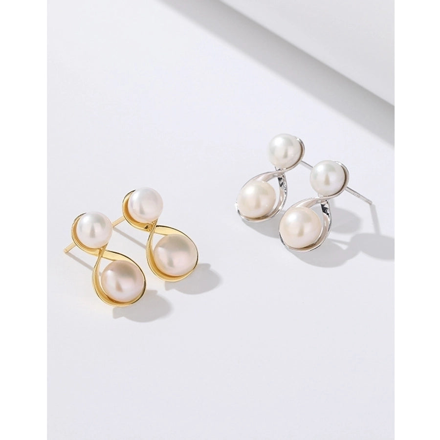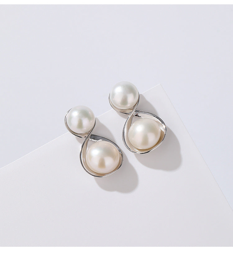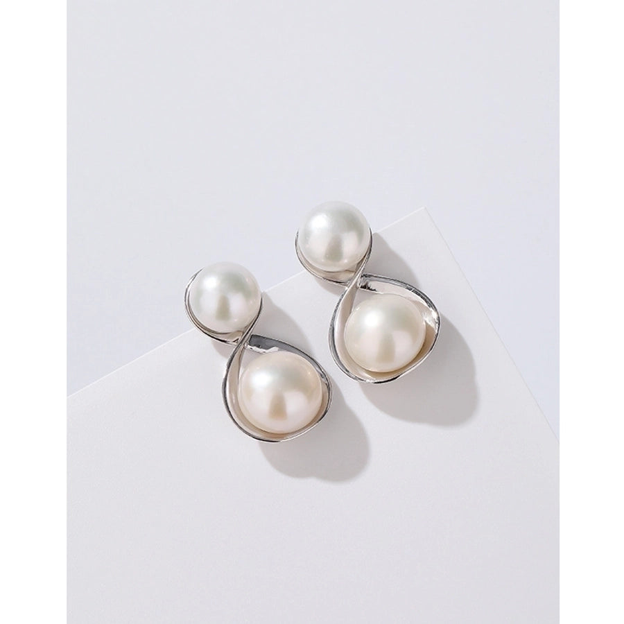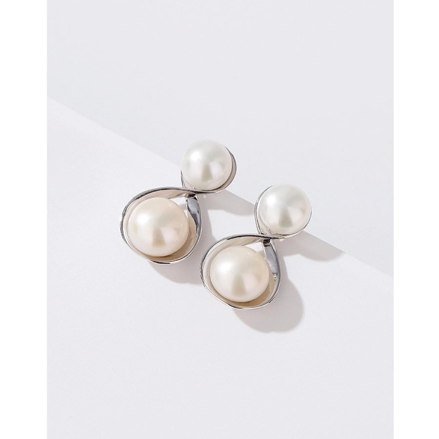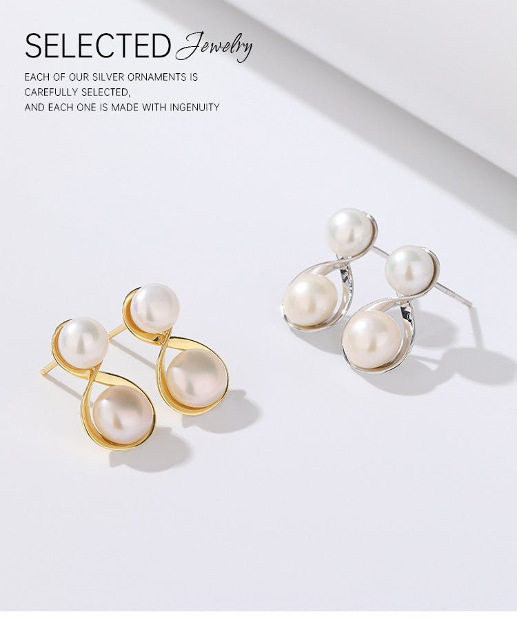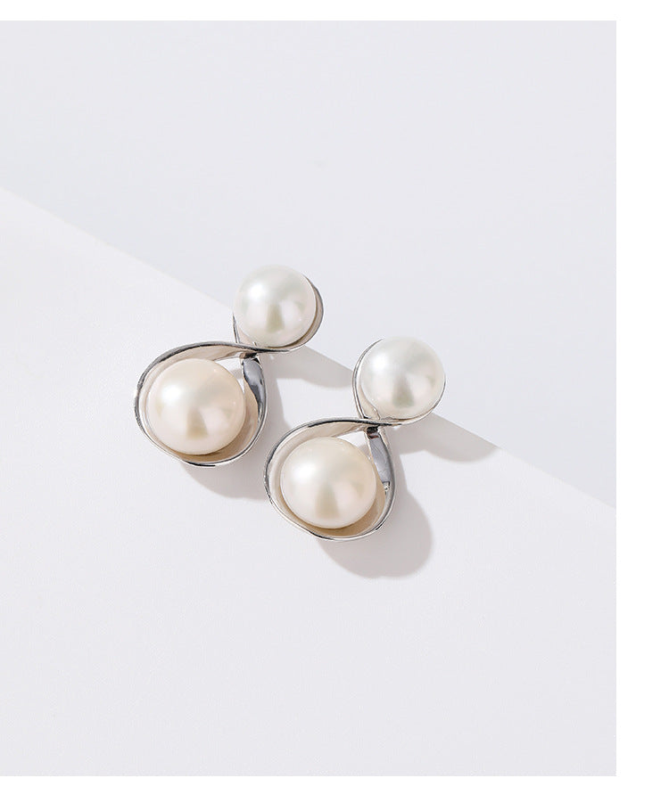 1 Pair 925 Sterling Silver Pearl 925 Sterling Silver Earrings Geometric Ear Studs