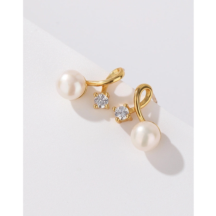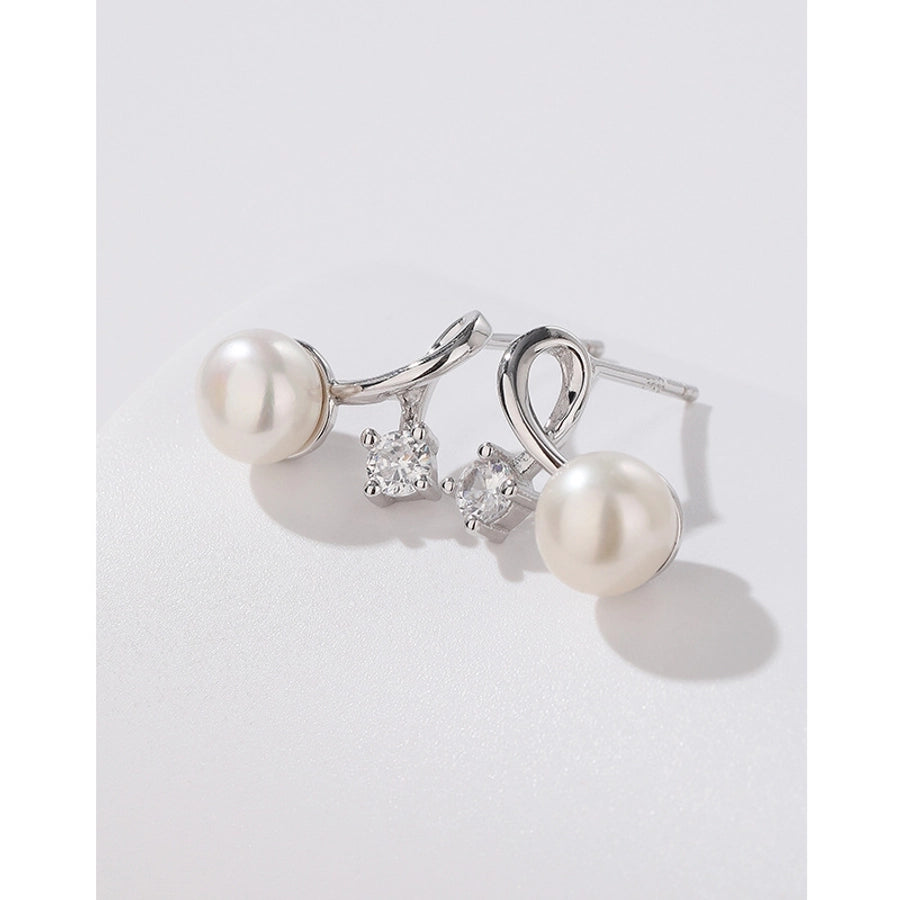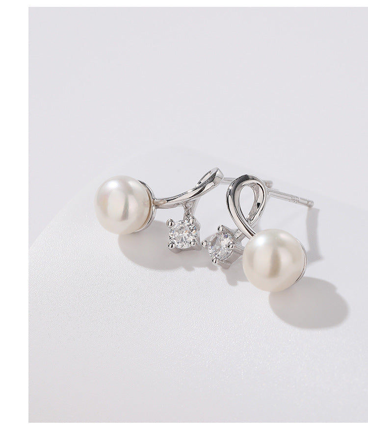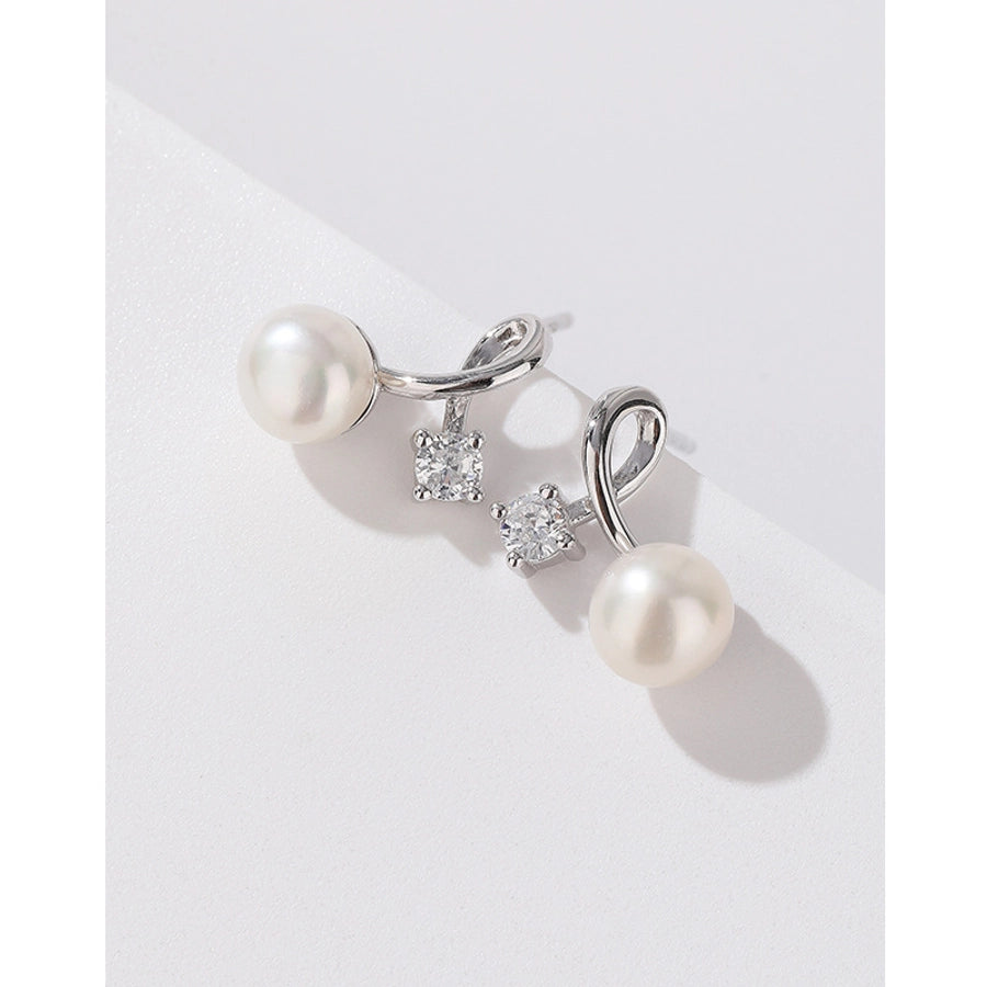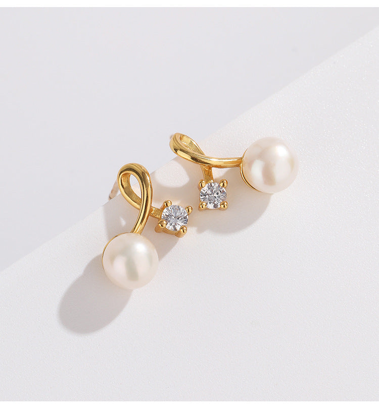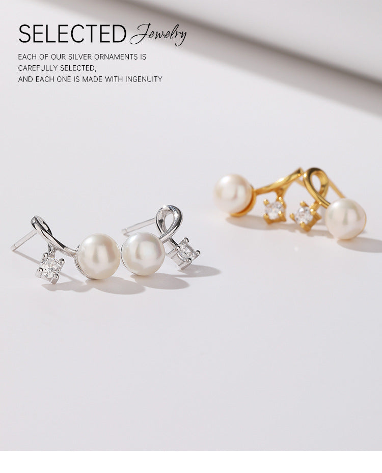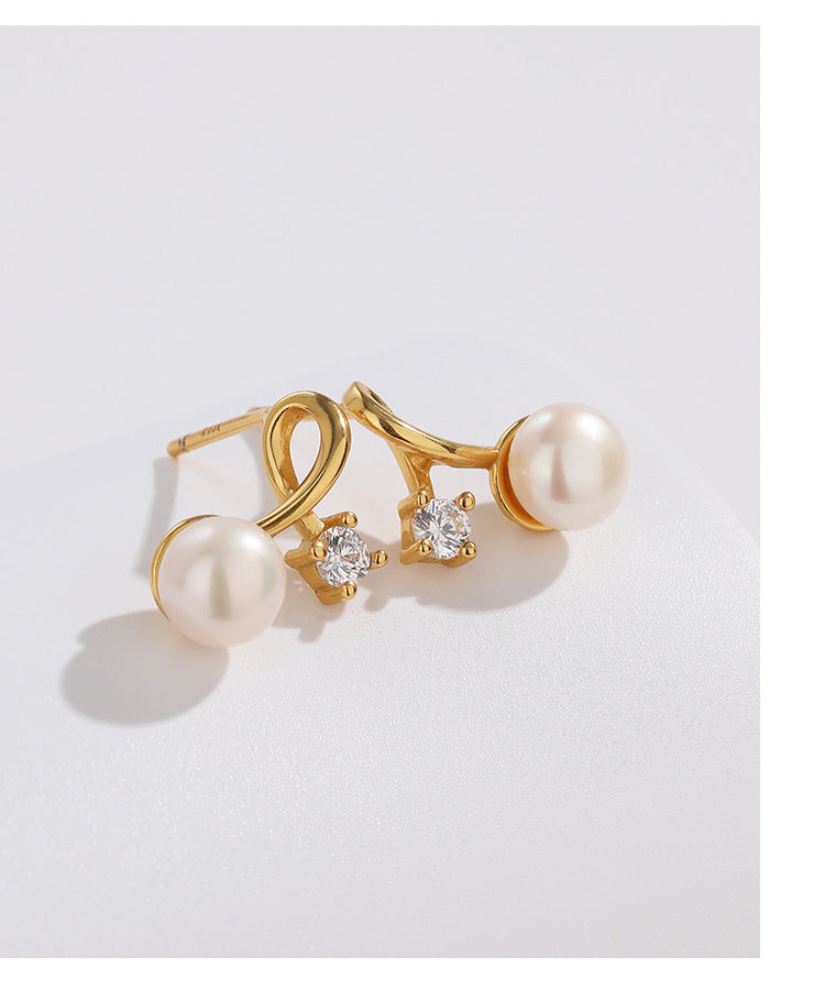 1 Pair 925 Sterling Silver Pearl Zircon 925 Sterling Silver Earrings Geometric Ear Studs