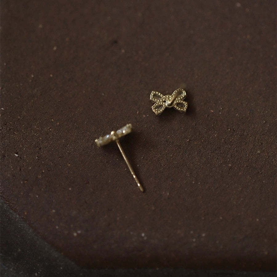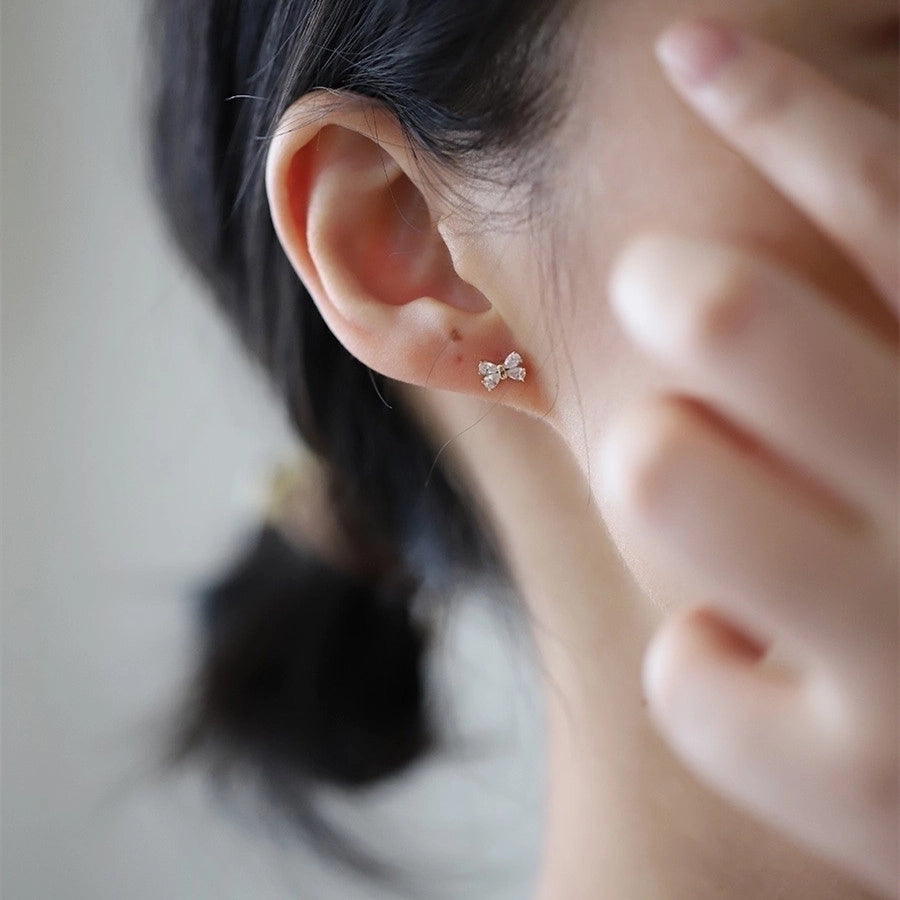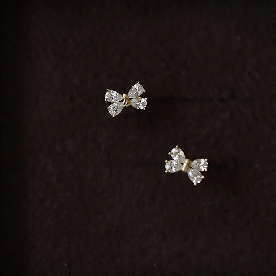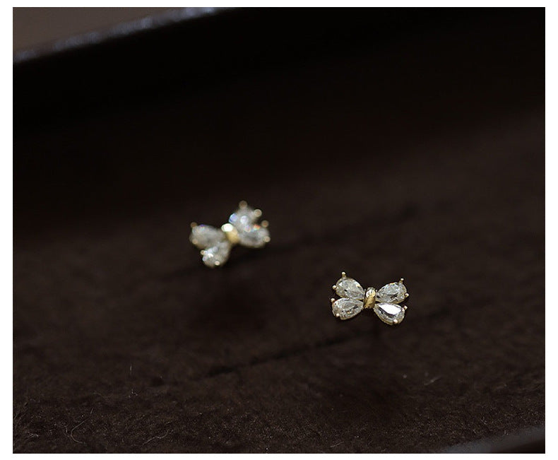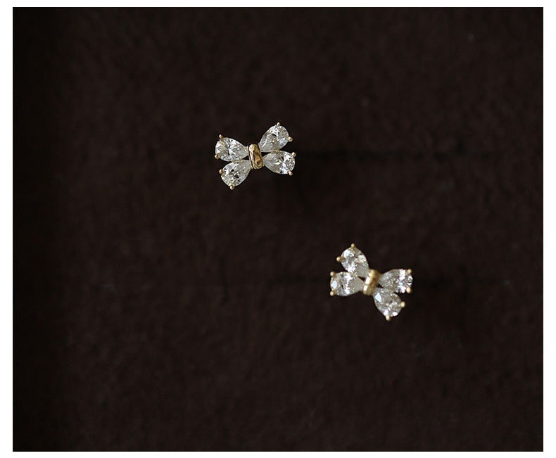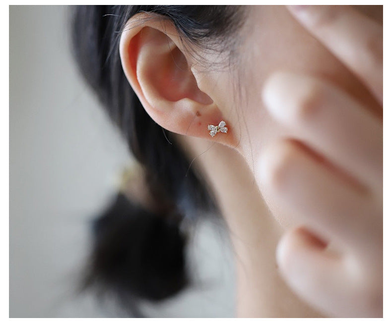 1 Pair 925 Sterling Silver Zircon 925 Sterling Silver Earrings Bow Knot Earrings