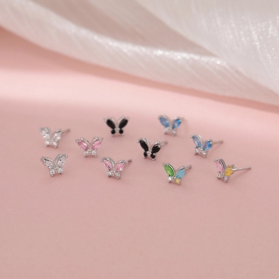 1 Pair 925 Sterling Silver Zircon 925 Sterling Silver Earrings Butterfly Earrings