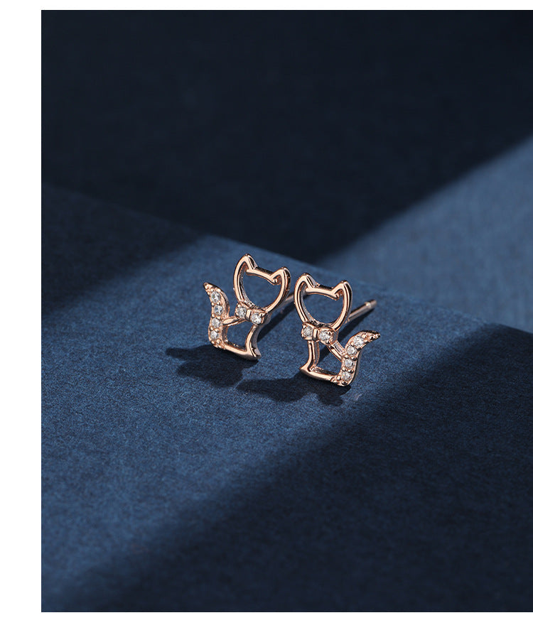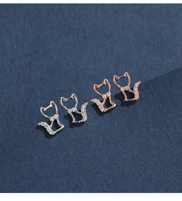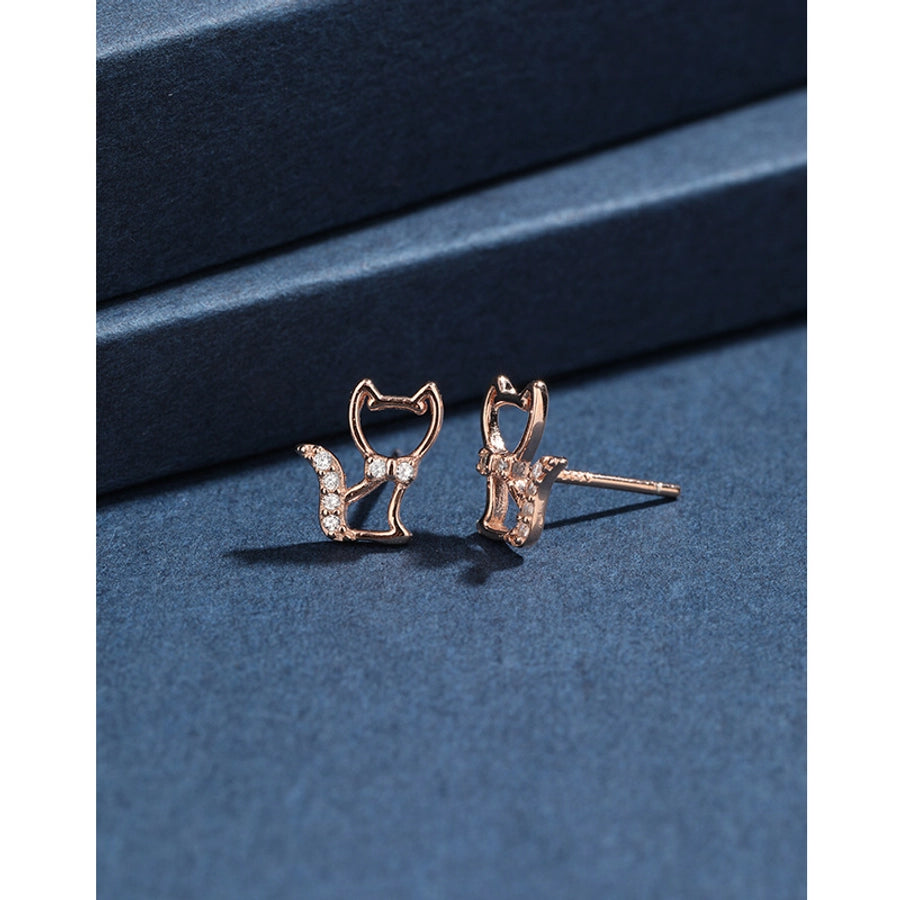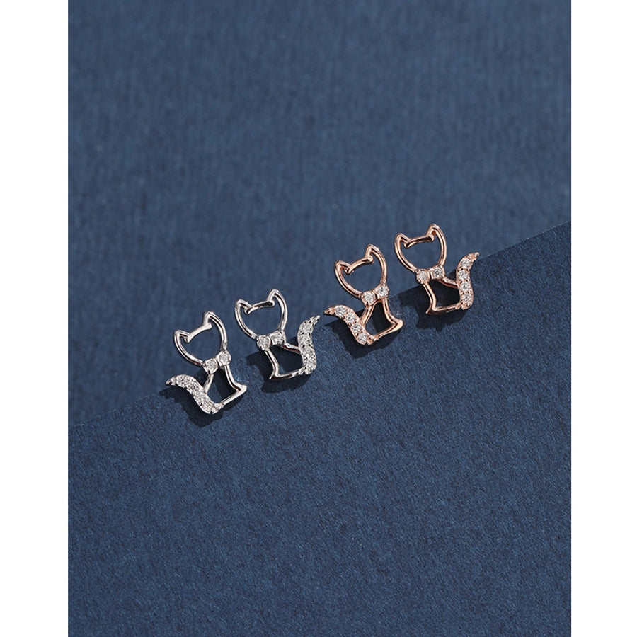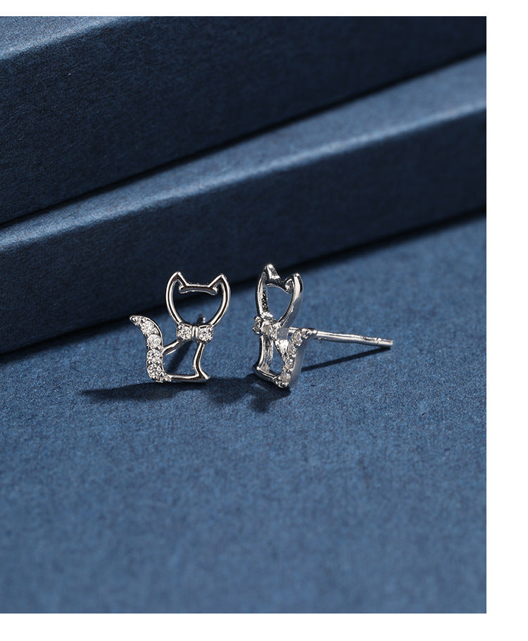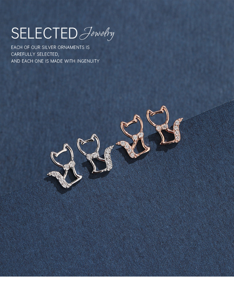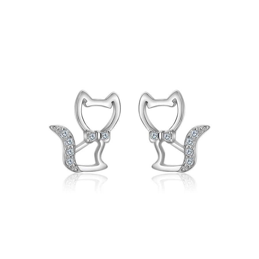 1 Pair 925 Sterling Silver Zircon 925 Sterling Silver Earrings Cat Ear Studs