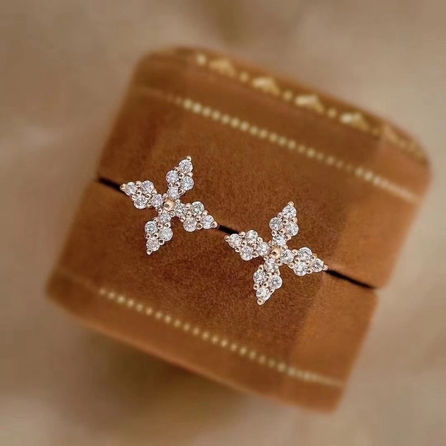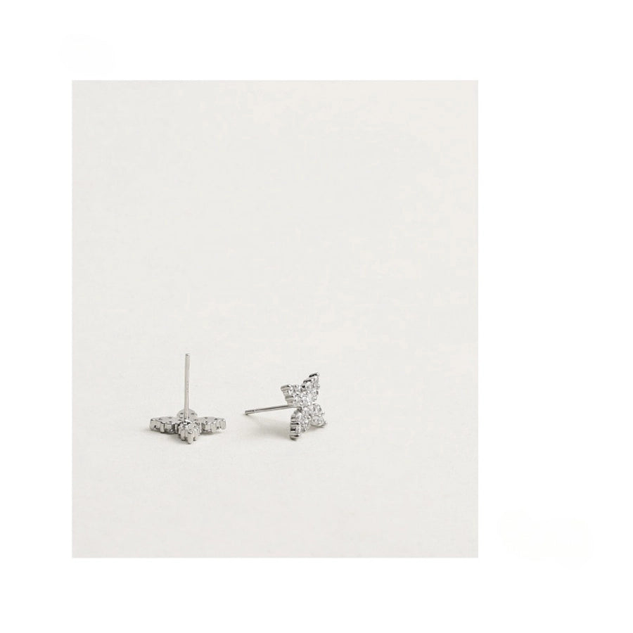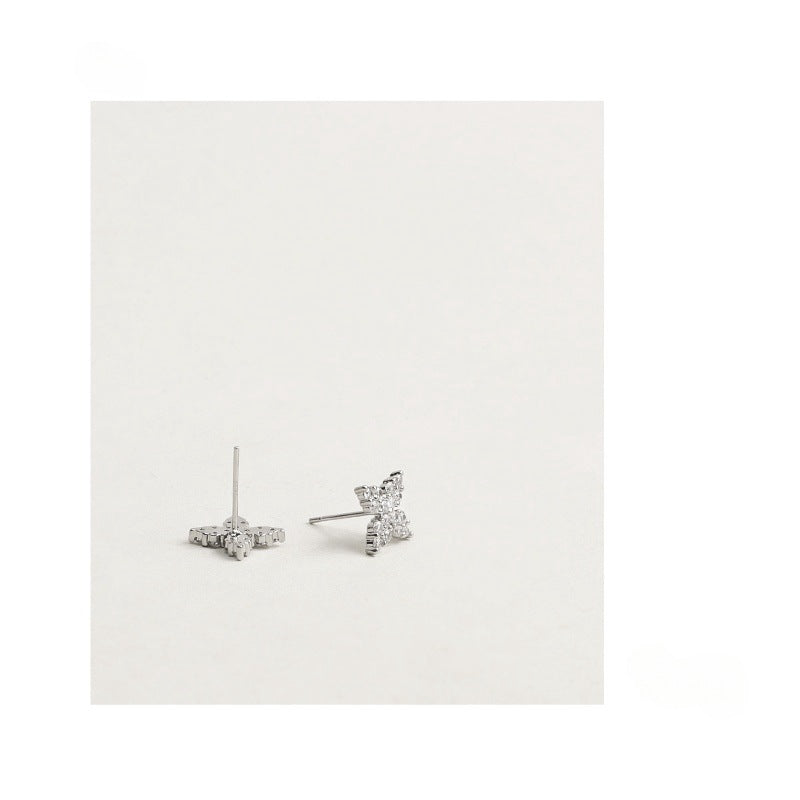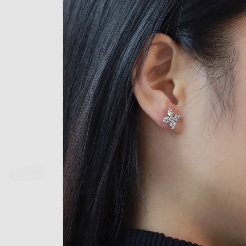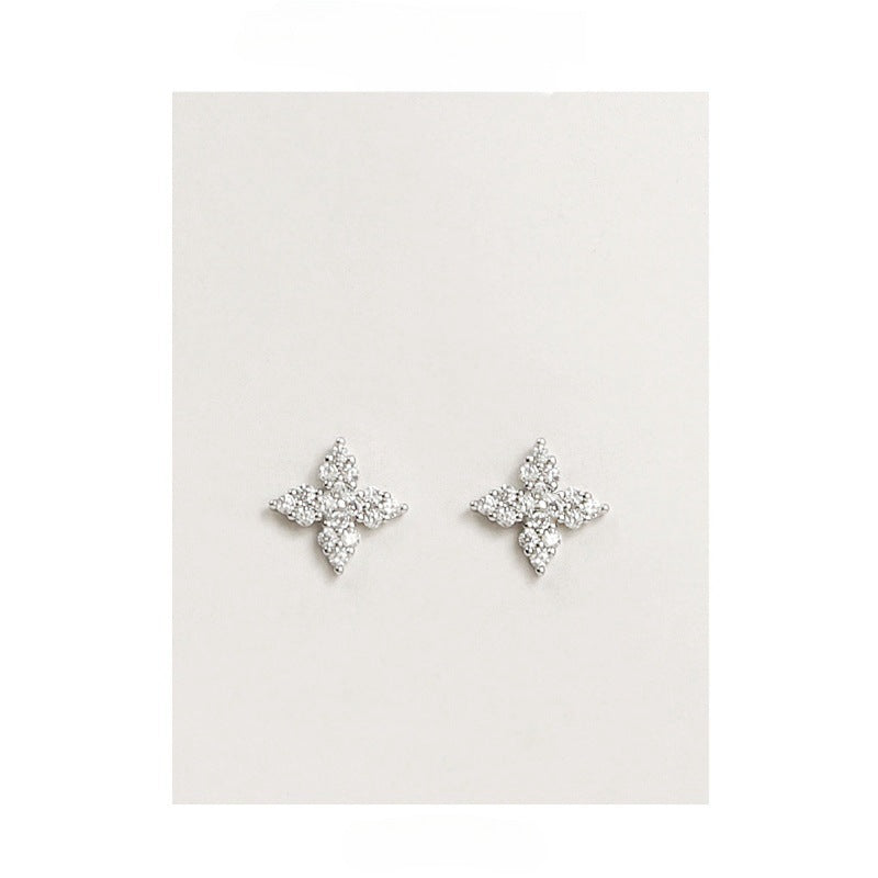 1 Pair 925 Sterling Silver Zircon 925 Sterling Silver Earrings Four Leaf Clover Ear Studs