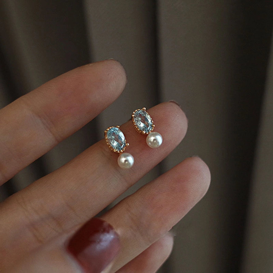 1 Pair 925 Sterling Silver Zircon 925 Sterling Silver Earrings Geometric Ear Studs