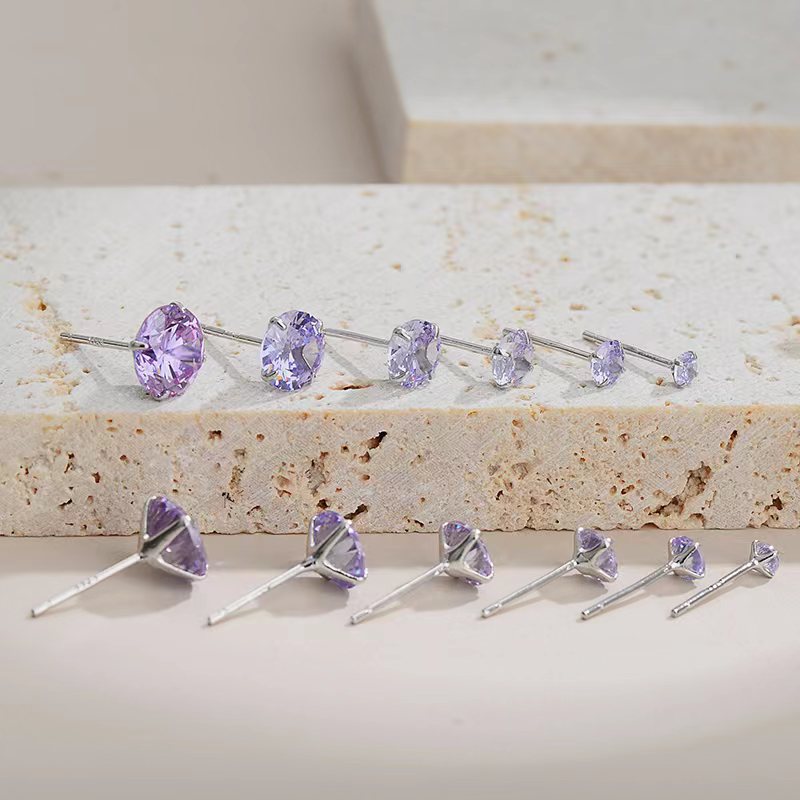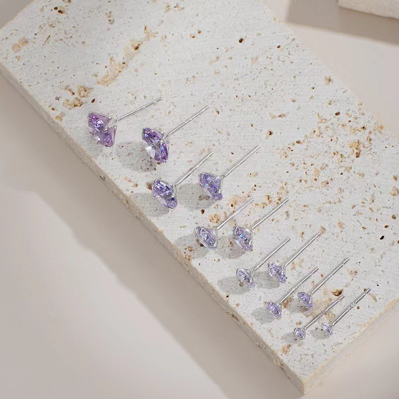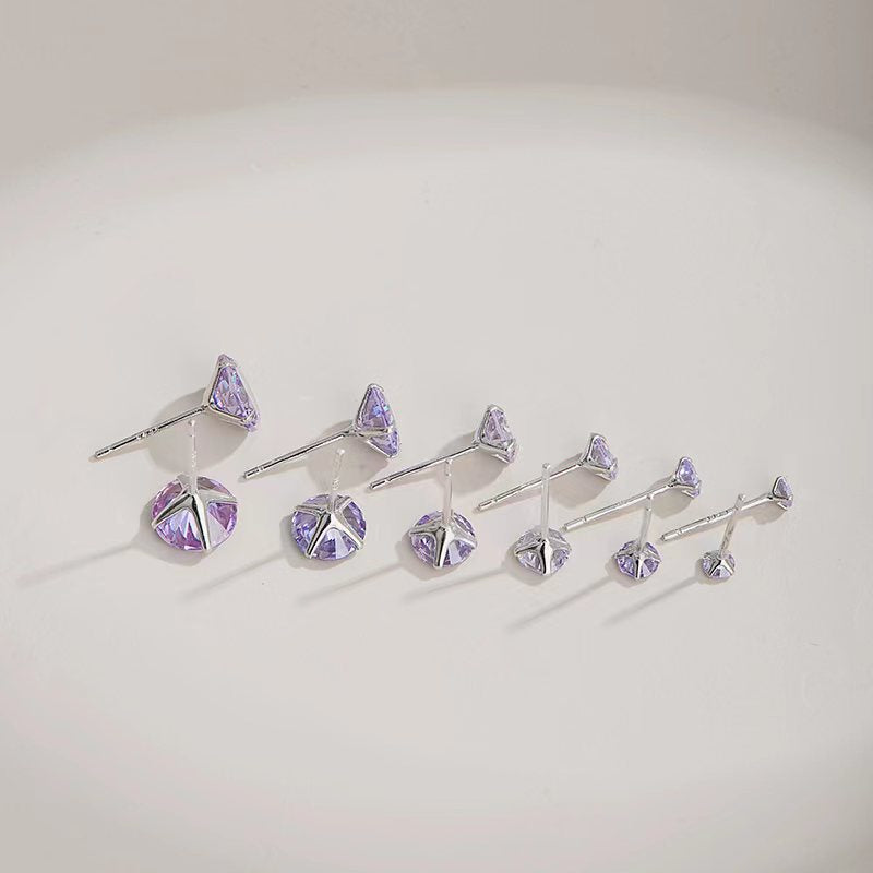 1 Pair 925 Sterling Silver Zircon 925 Sterling Silver Earrings Geometric Ear Studs
