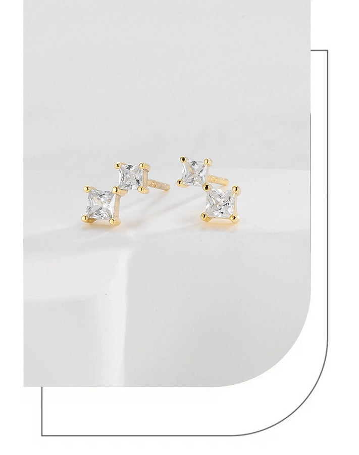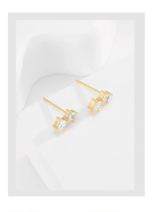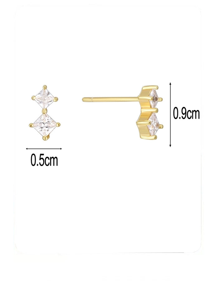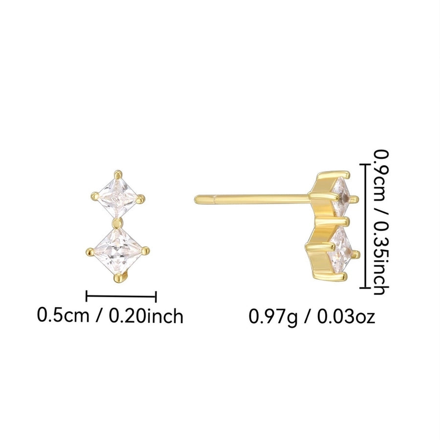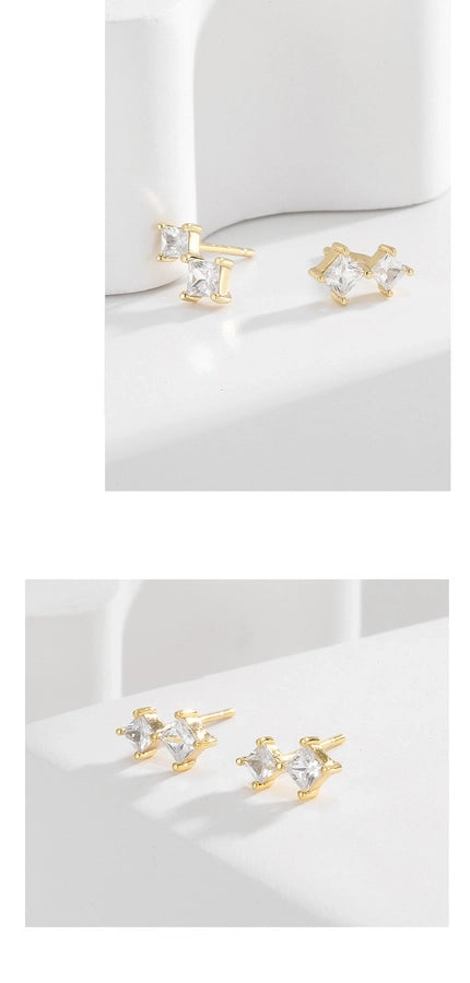 1 Pair 925 Sterling Silver Zircon 925 Sterling Silver Earrings Geometric Ear Studs