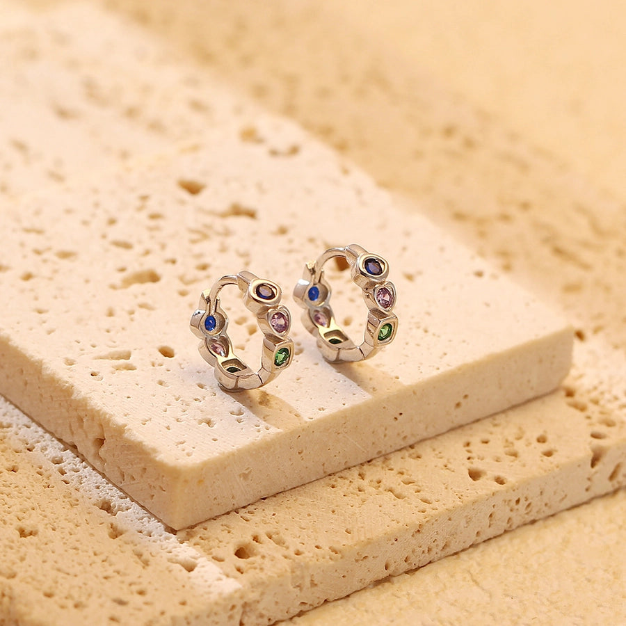 1 Pair 925 Sterling Silver Zircon 925 Sterling Silver Earrings Geometric Earrings