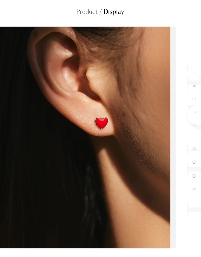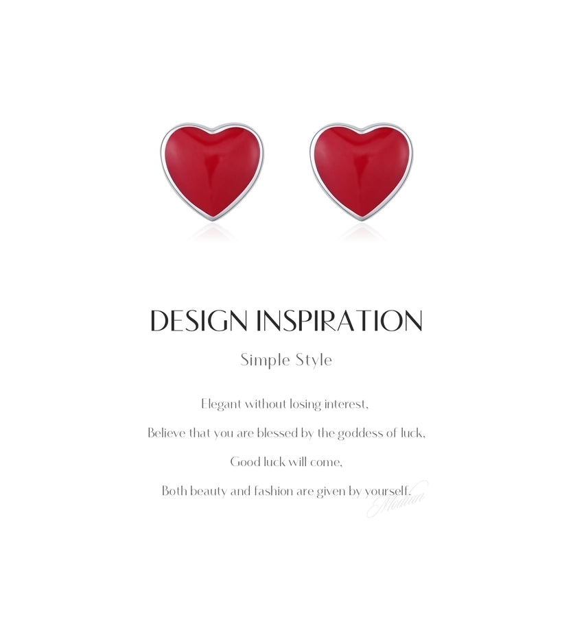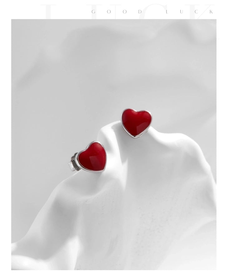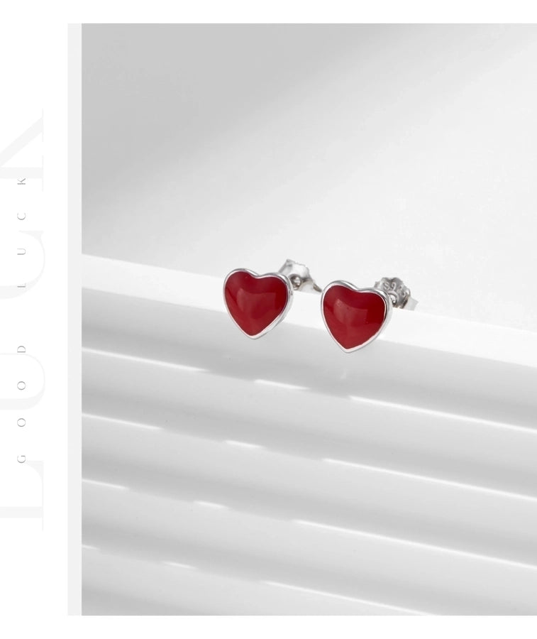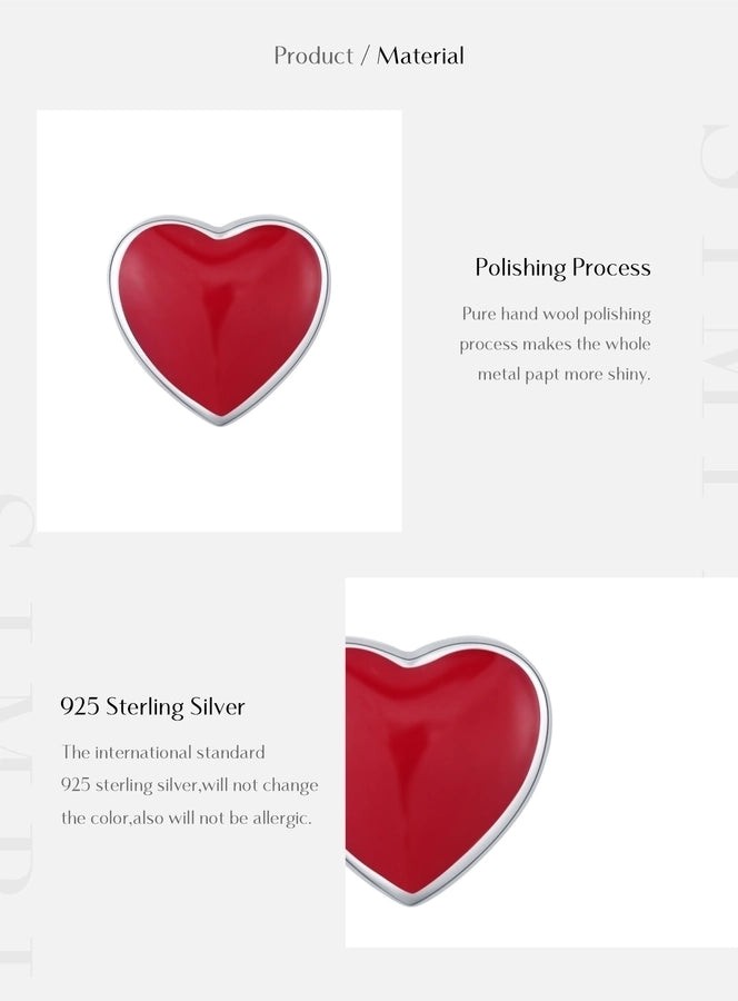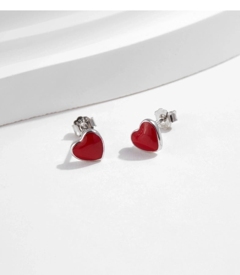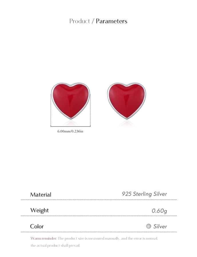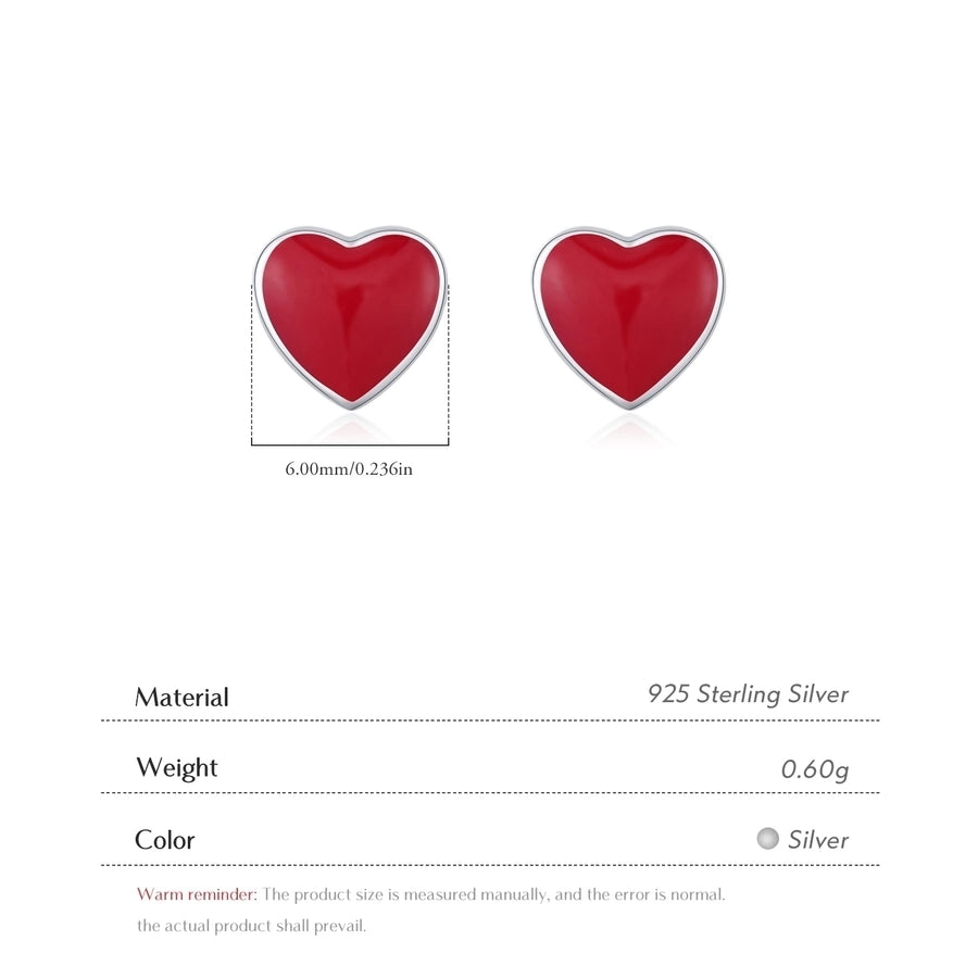 1 Pair Rhodium Plated 925 Sterling Silver 925 Sterling Silver Earrings Heart Shape Ear Studs