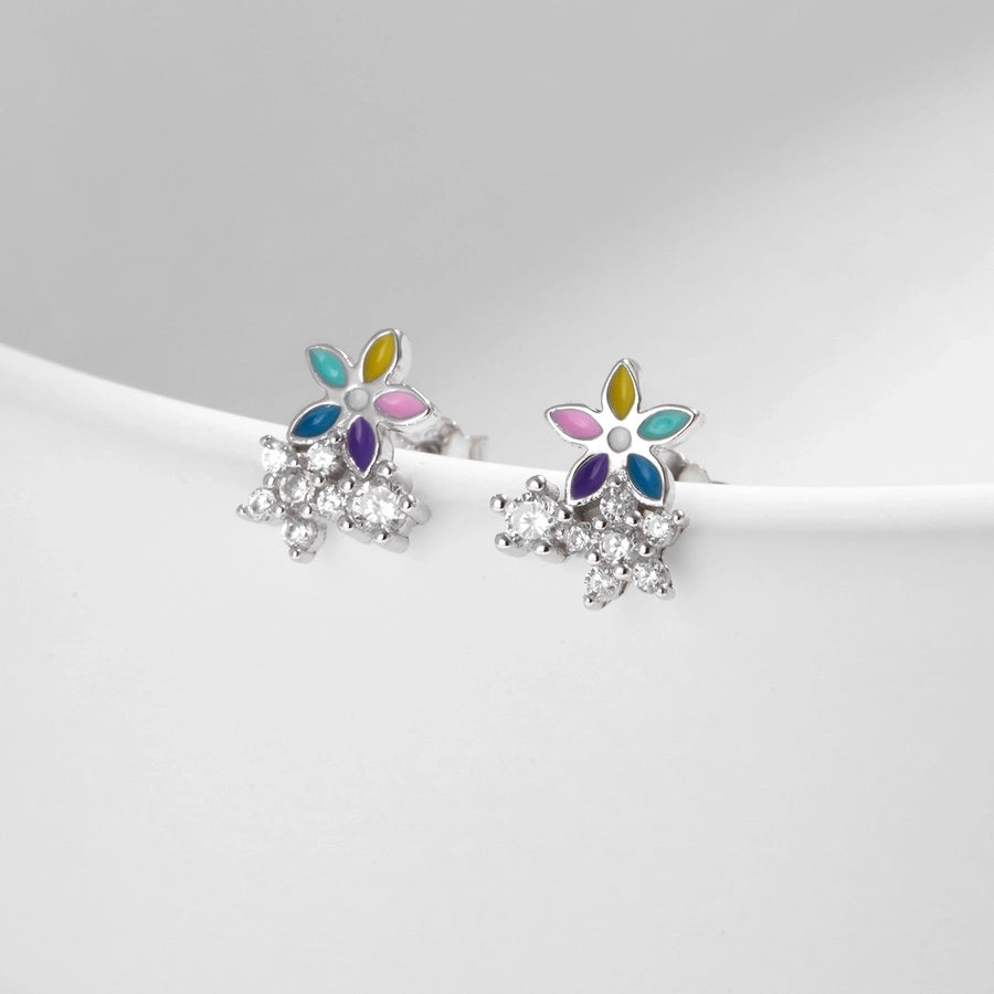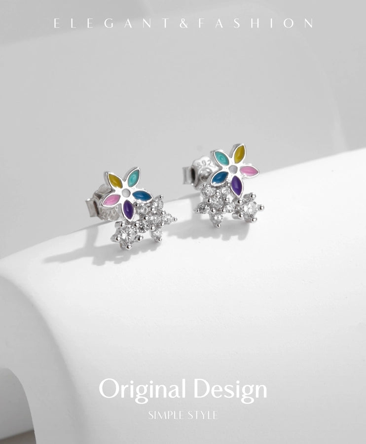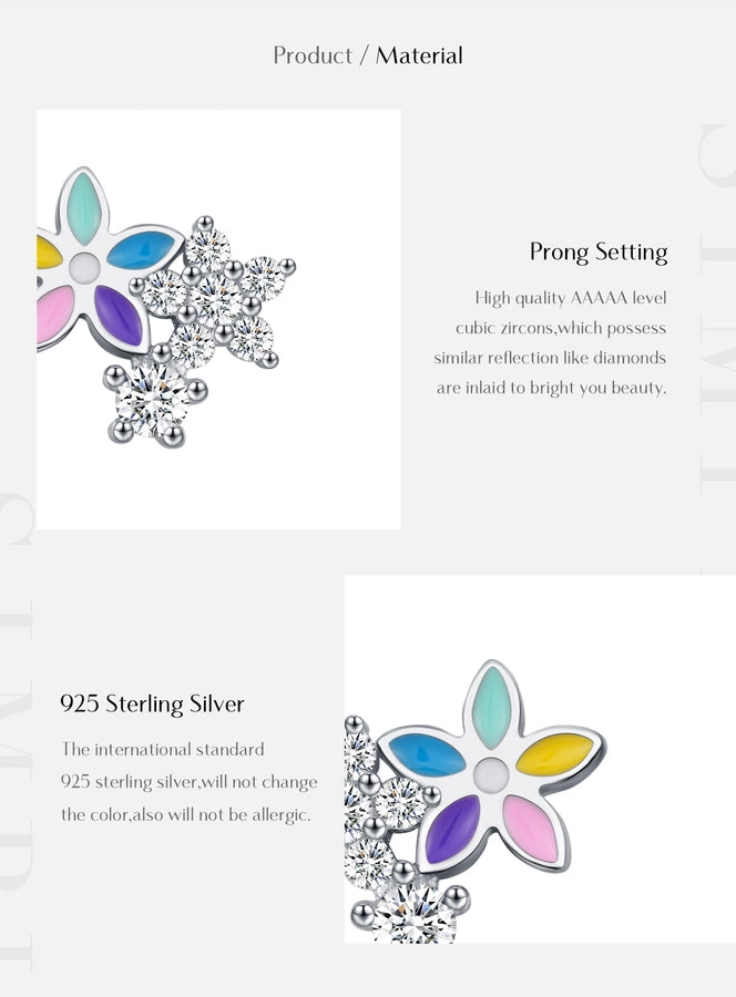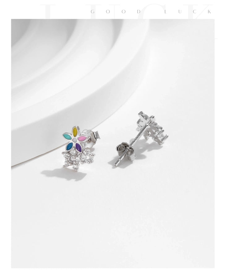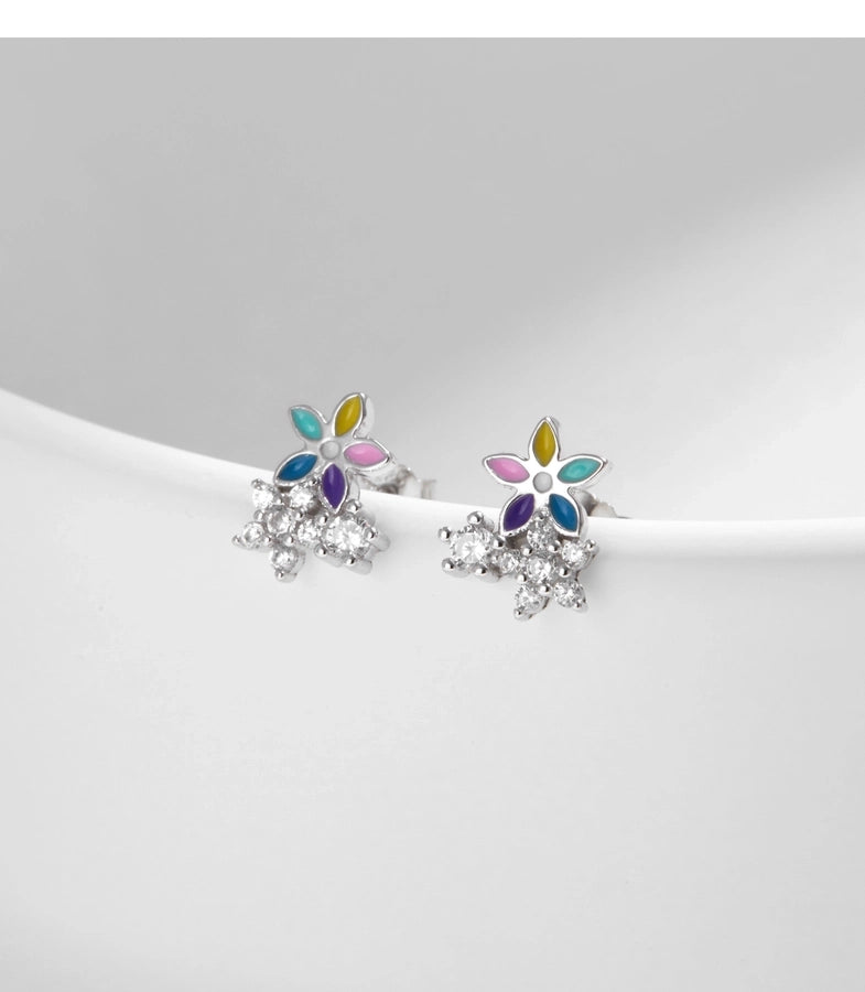 1 Pair Rhodium Plated 925 Sterling Silver Zircon 925 Sterling Silver Earrings Flower Ear Studs