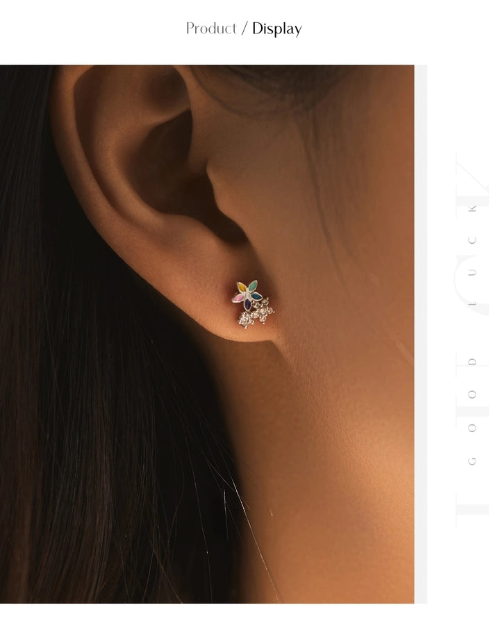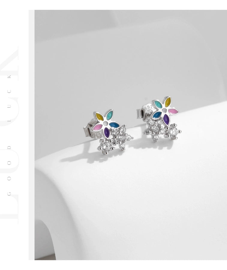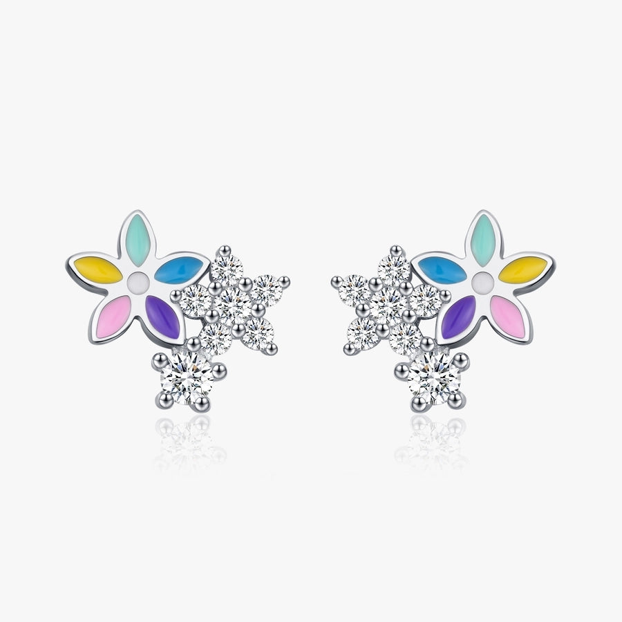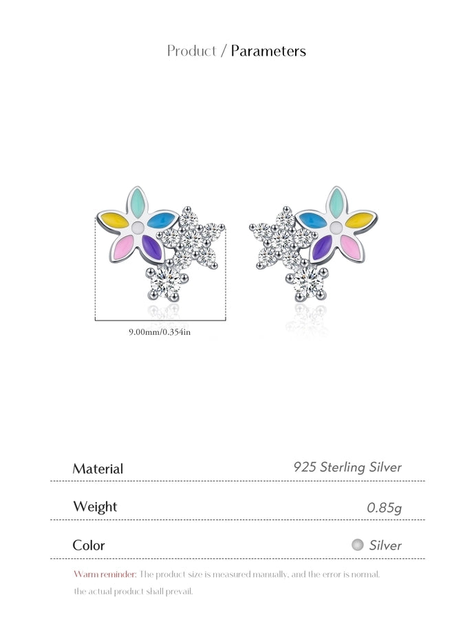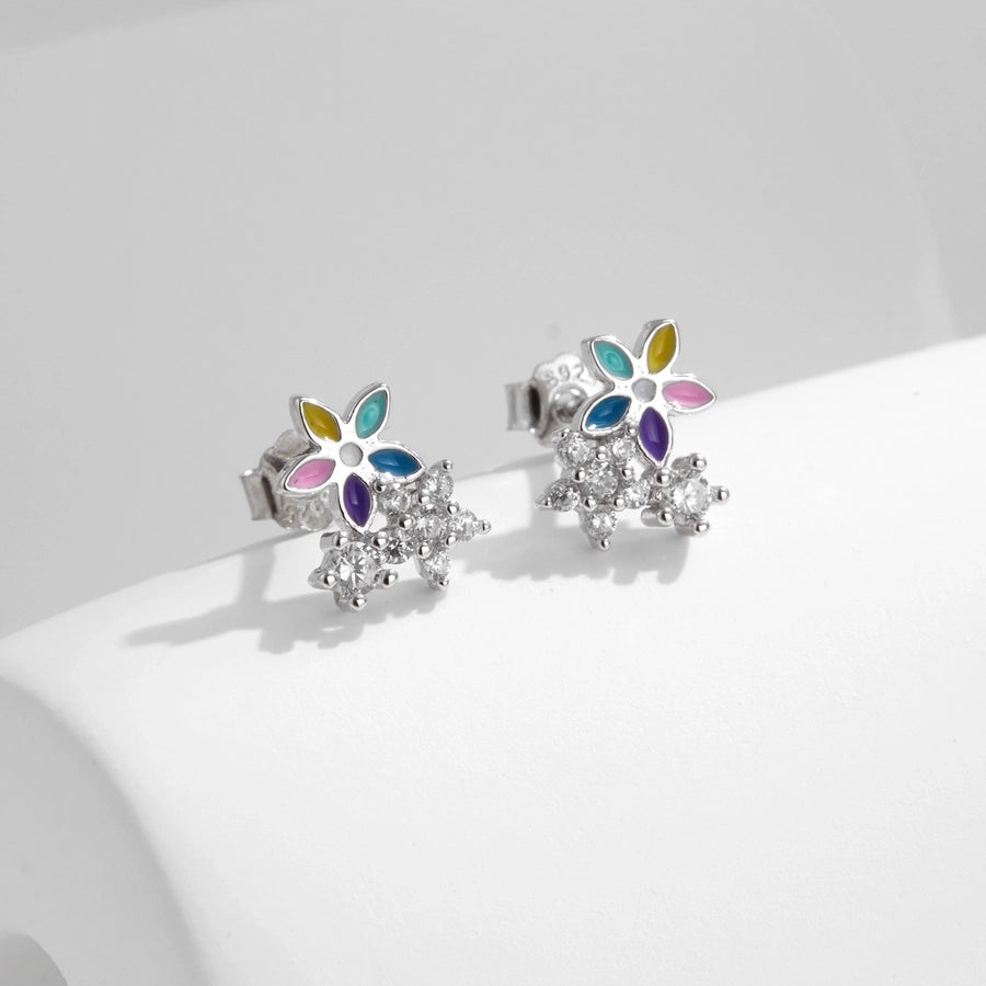 1 Pair Rhodium Plated 925 Sterling Silver Zircon 925 Sterling Silver Earrings Flower Ear Studs