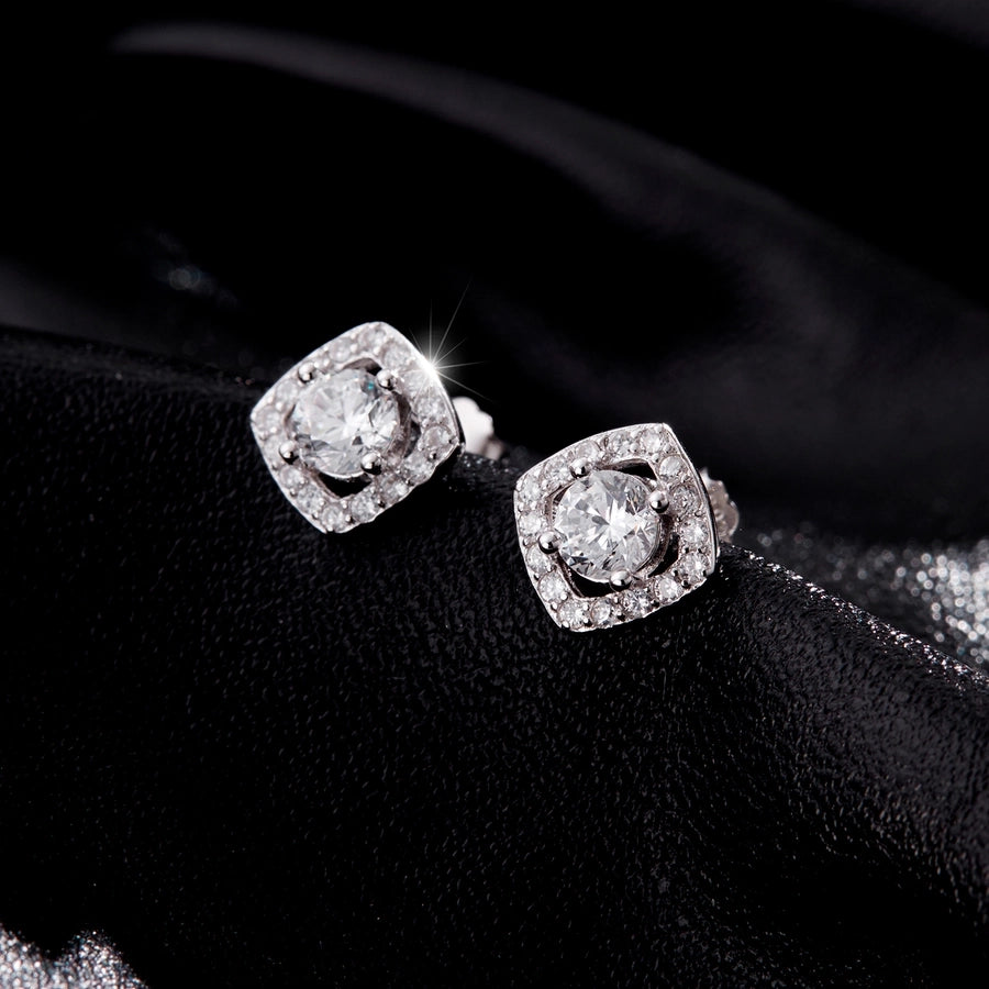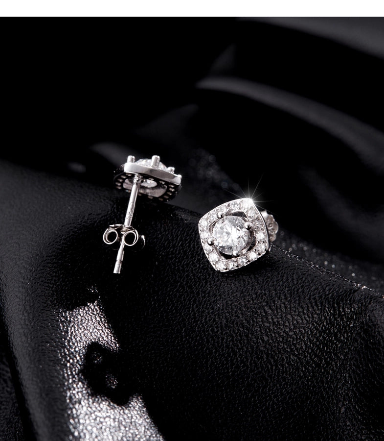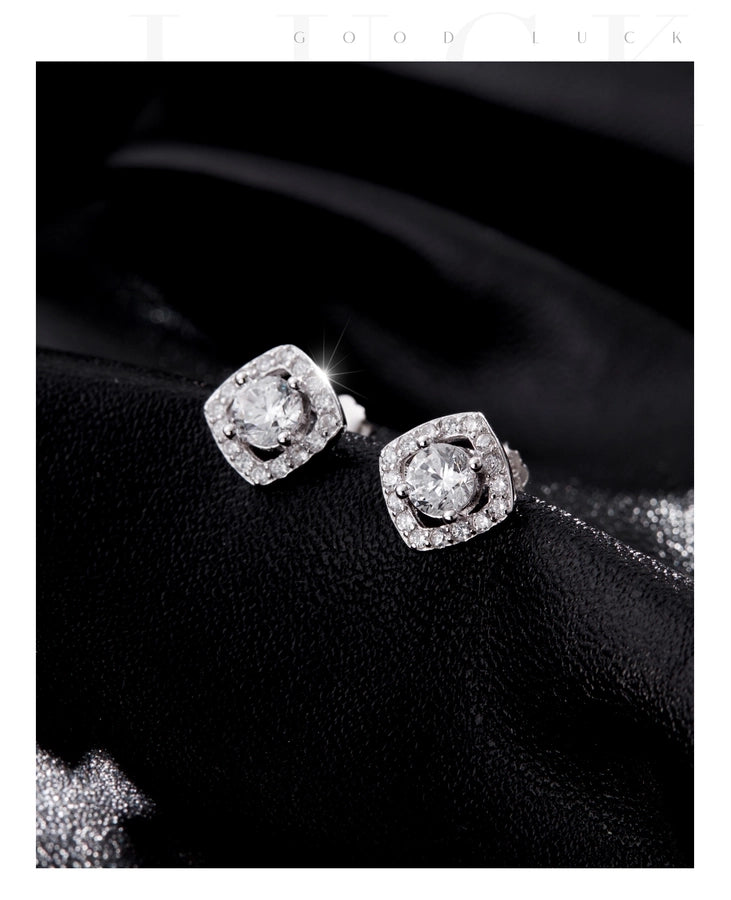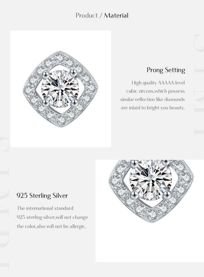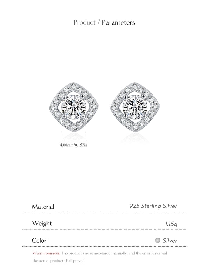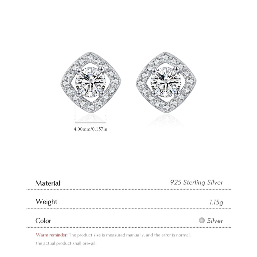1 Pair Rhodium Plated 925 Sterling Silver Zircon 925 Sterling Silver Earrings Geometric Cube Sugar Ear Studs