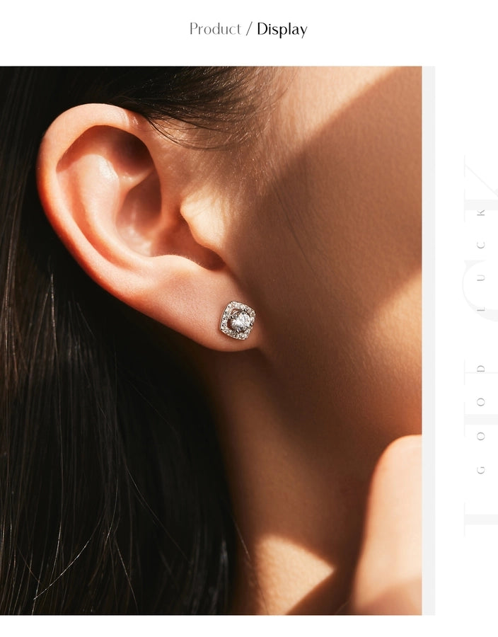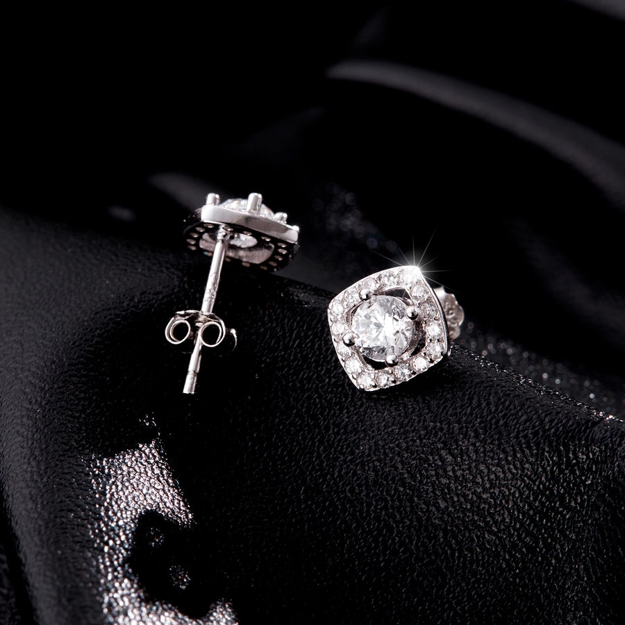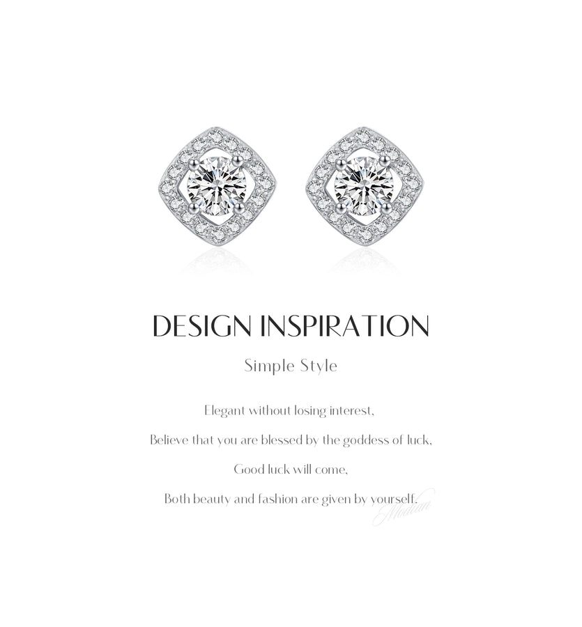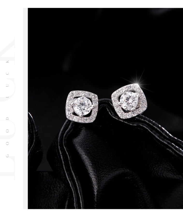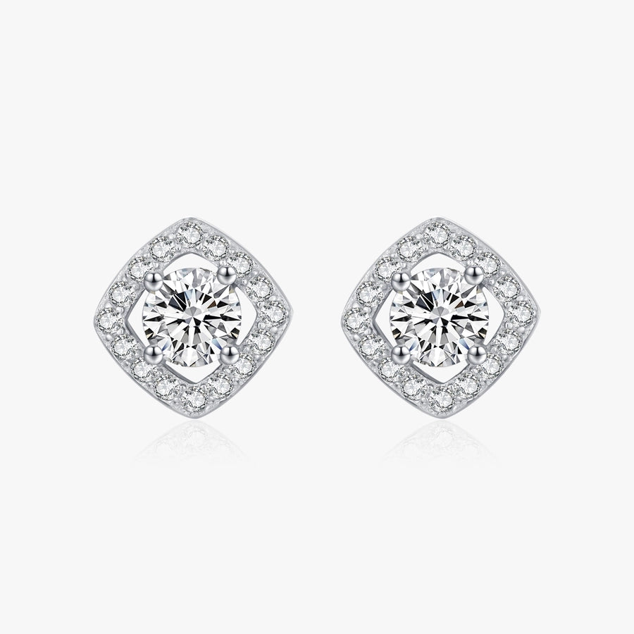 1 Pair Rhodium Plated 925 Sterling Silver Zircon 925 Sterling Silver Earrings Geometric Cube Sugar Ear Studs