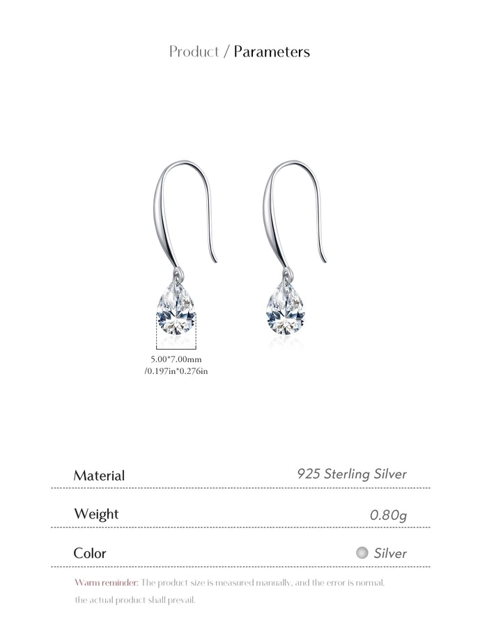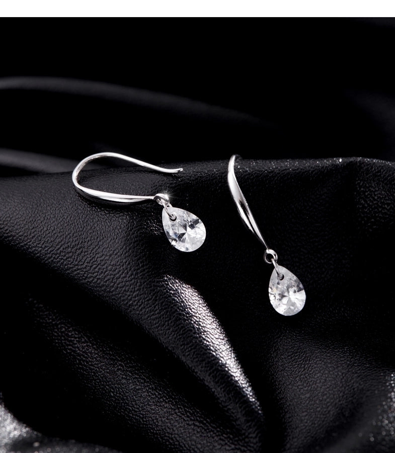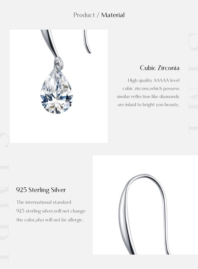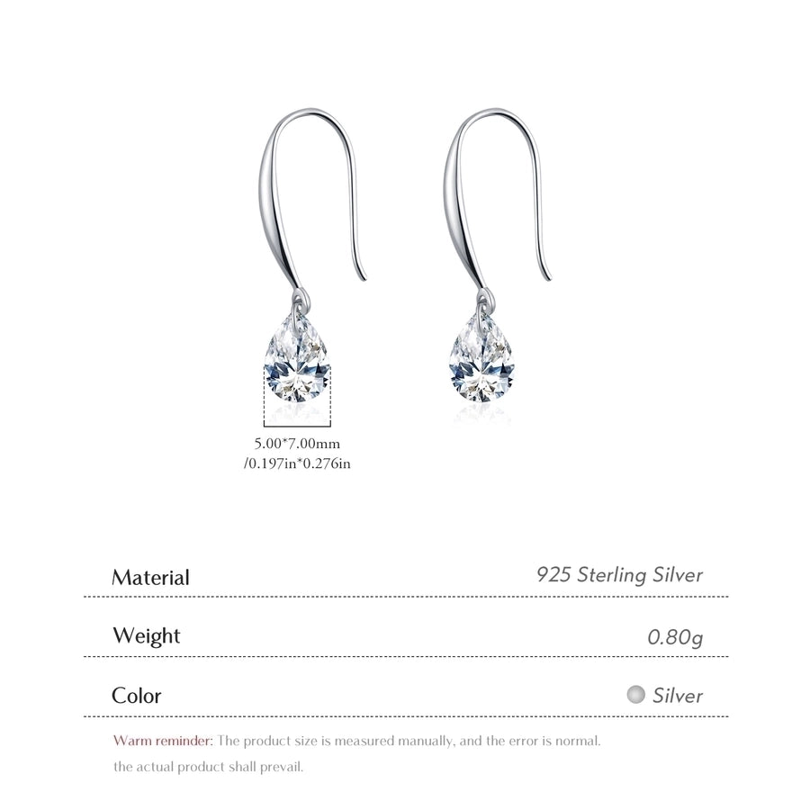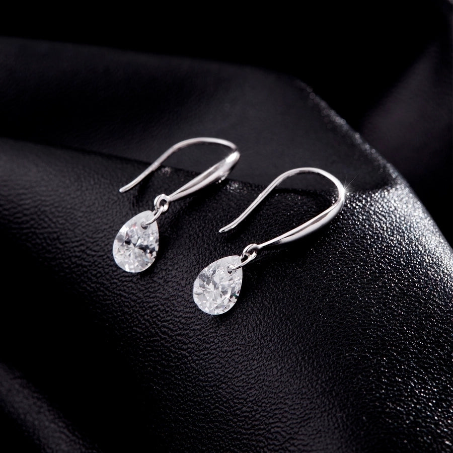 1 Pair Rhodium Plated 925 Sterling Silver Zircon 925 Sterling Silver Earrings Water Droplets Drop Earrings