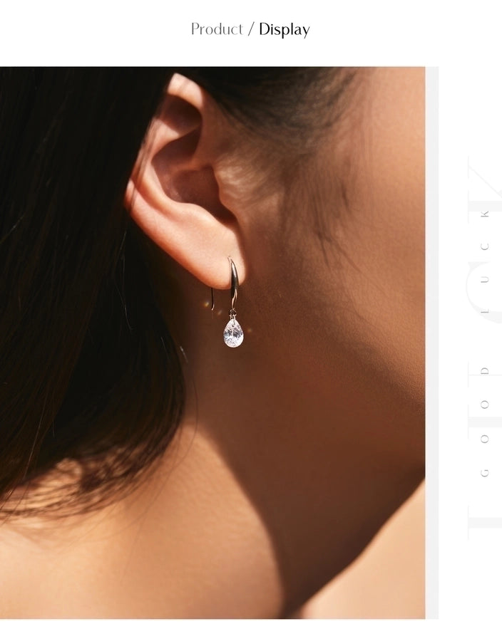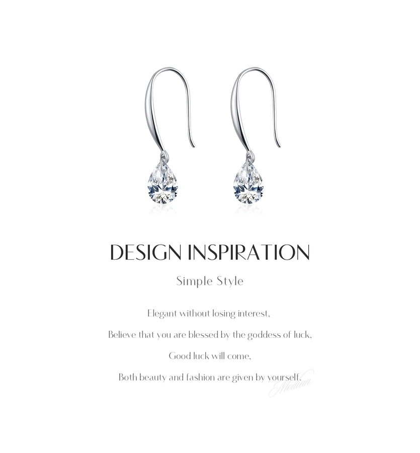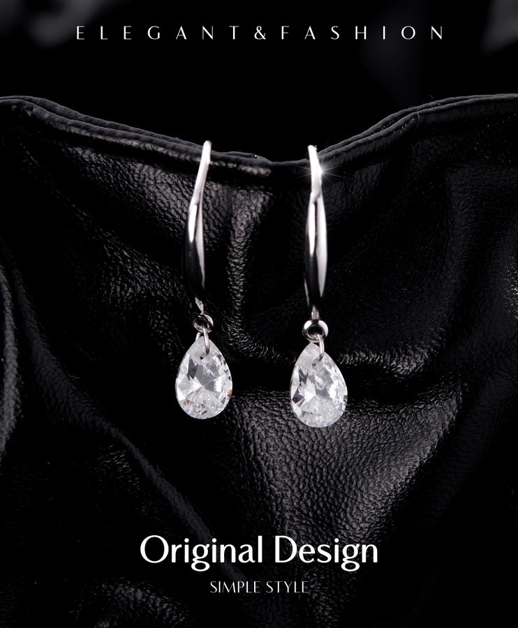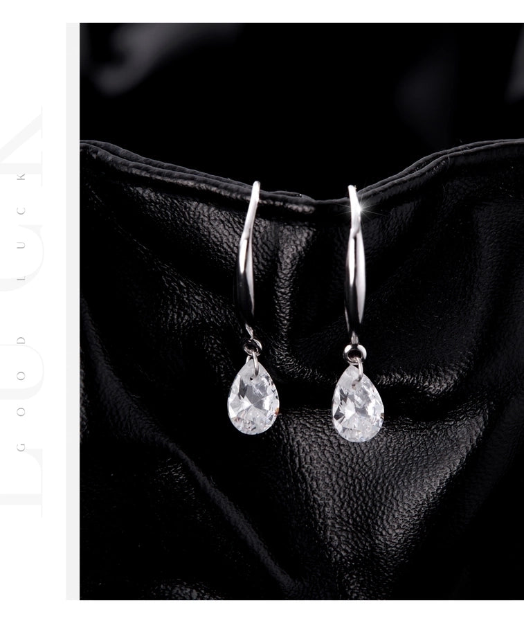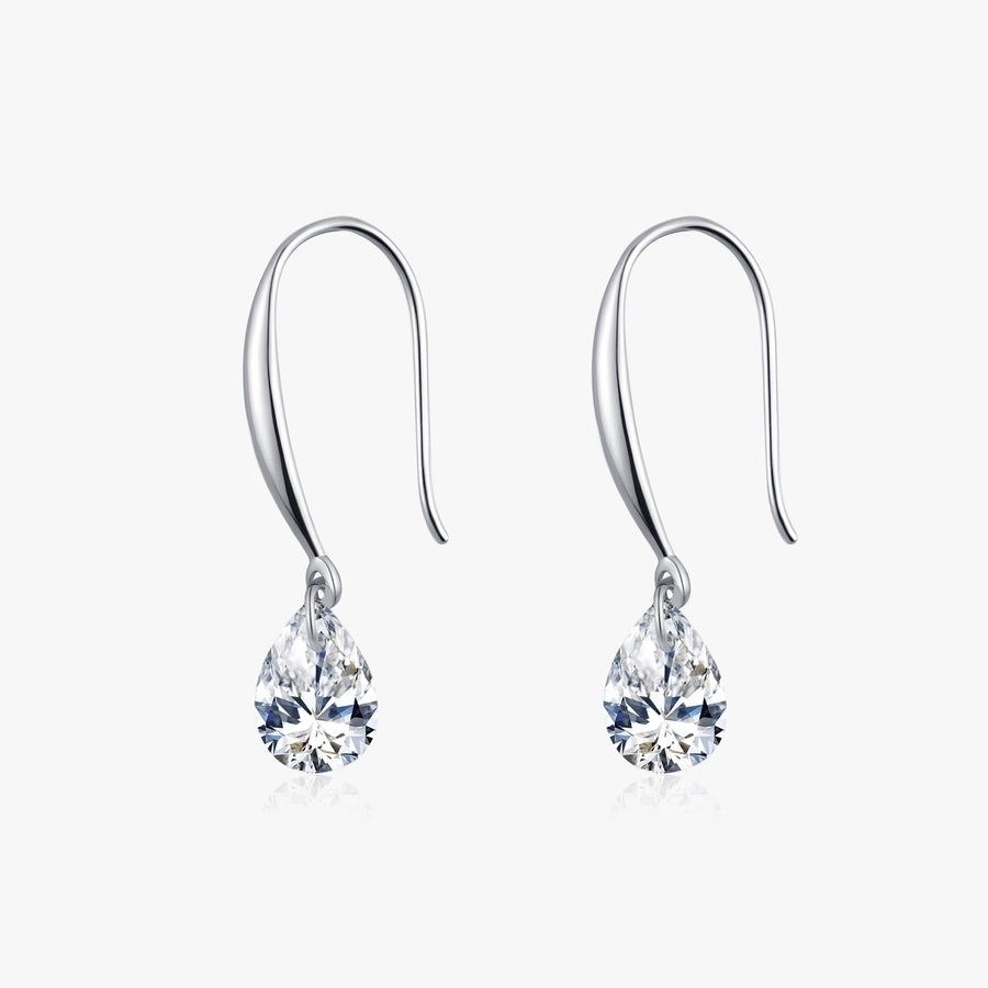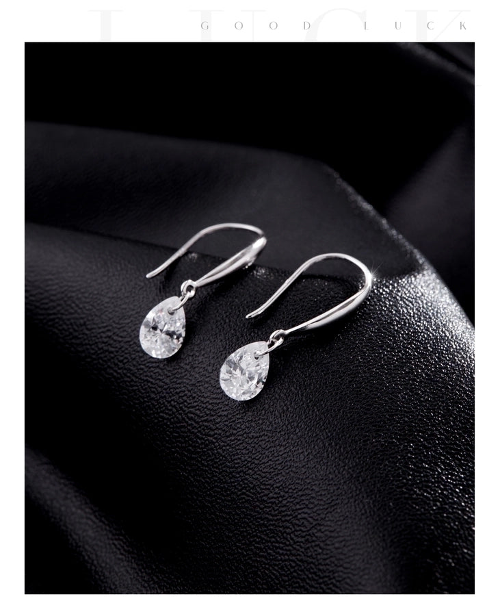 1 Pair Rhodium Plated 925 Sterling Silver Zircon 925 Sterling Silver Earrings Water Droplets Drop Earrings
