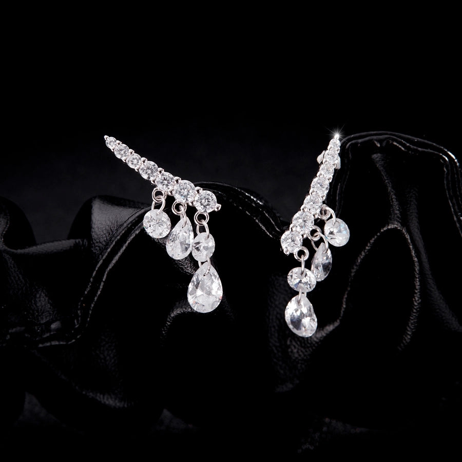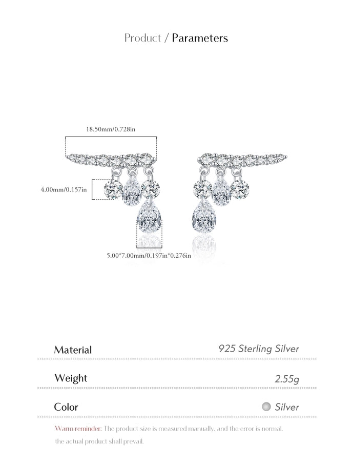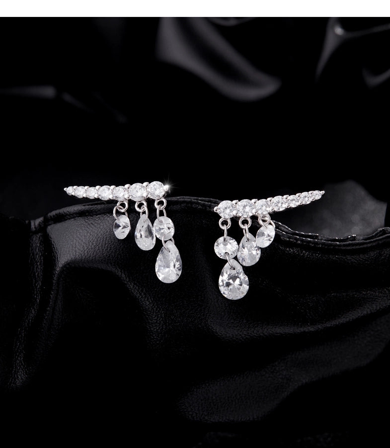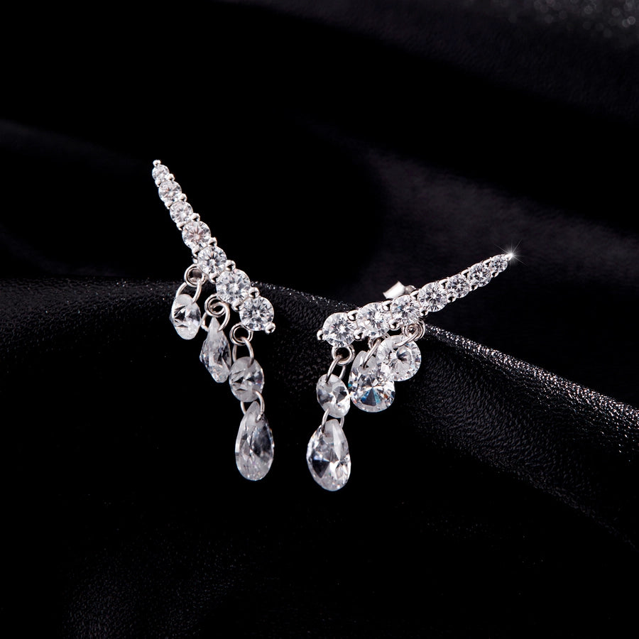 1 Pair Rhodium Plated 925 Sterling Silver Zircon 925 Sterling Silver Earrings Water Droplets Ear Studs