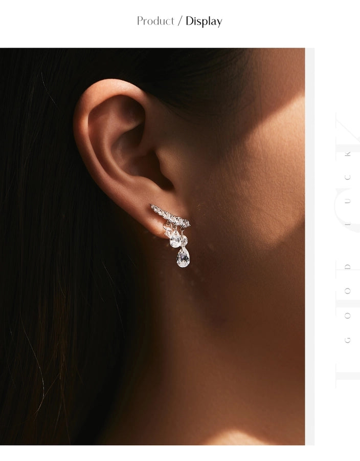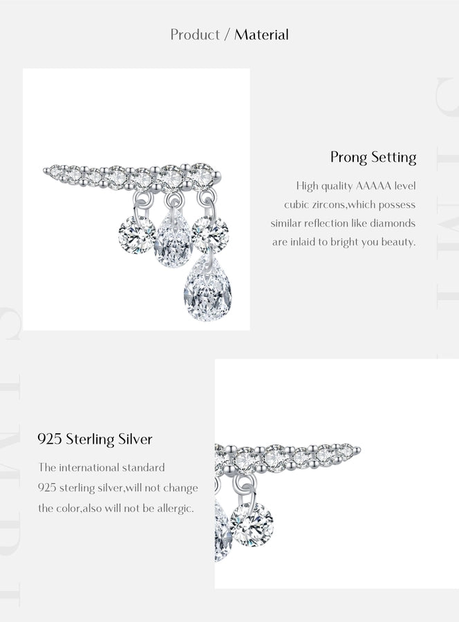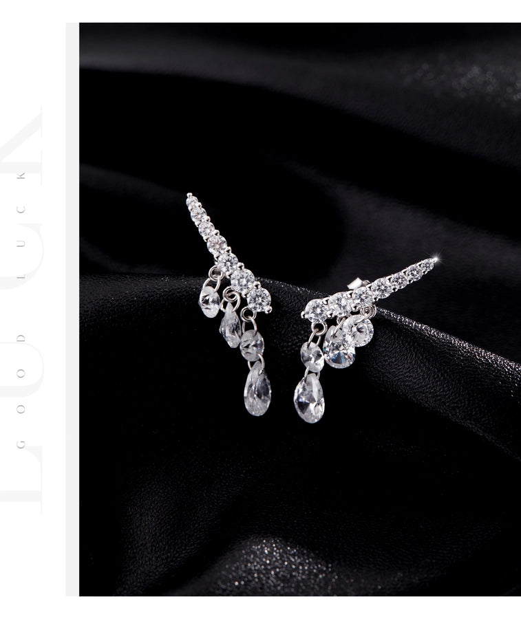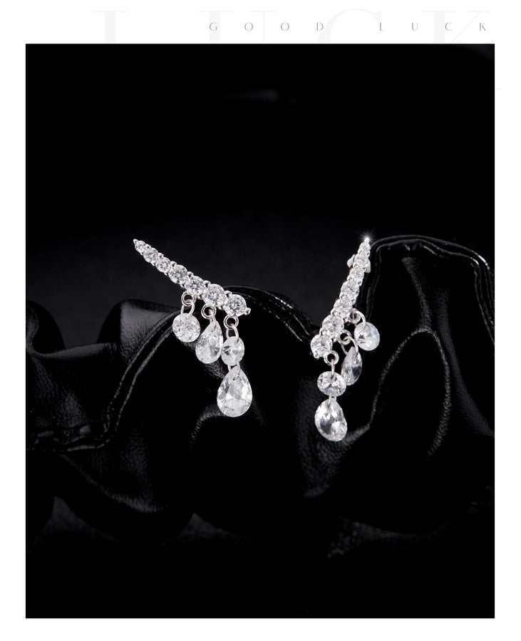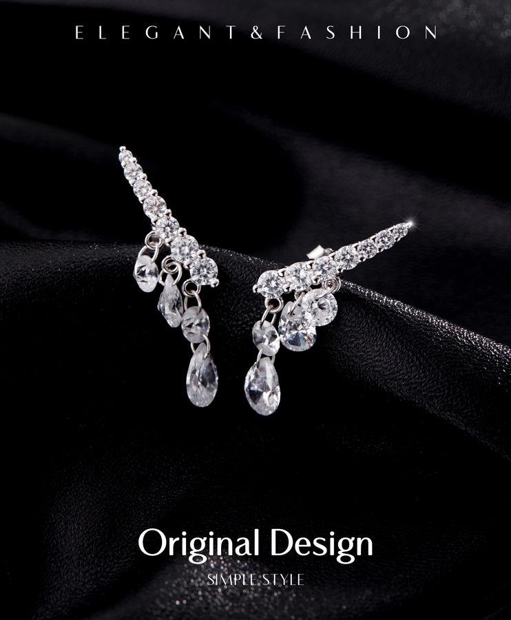 1 Pair Rhodium Plated 925 Sterling Silver Zircon 925 Sterling Silver Earrings Water Droplets Ear Studs